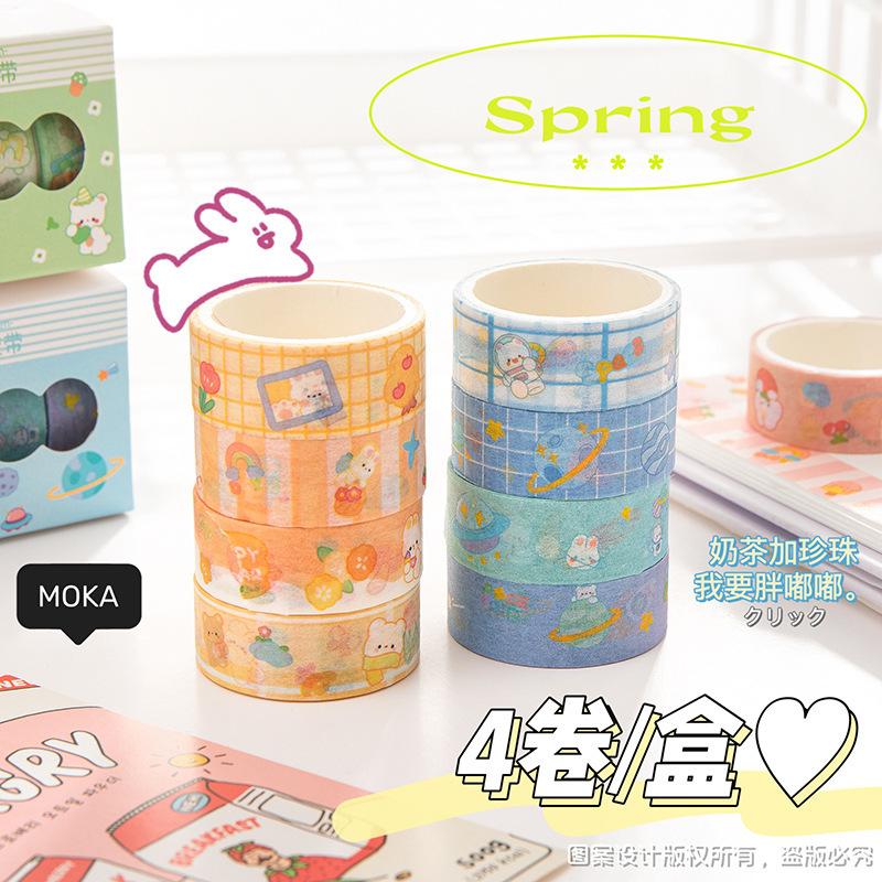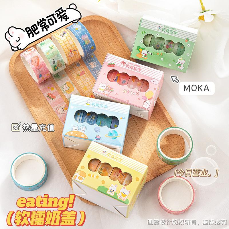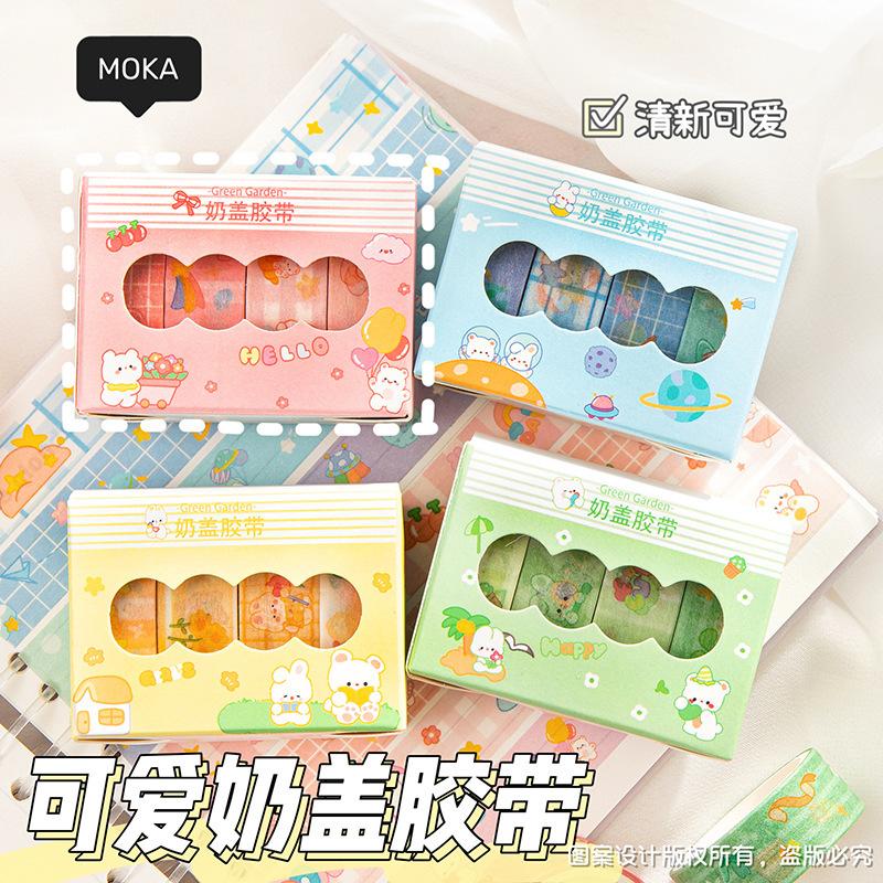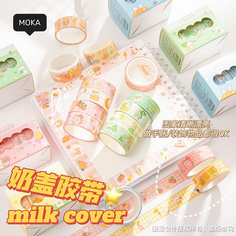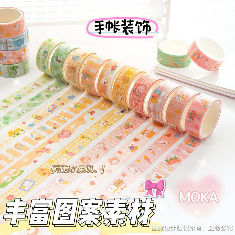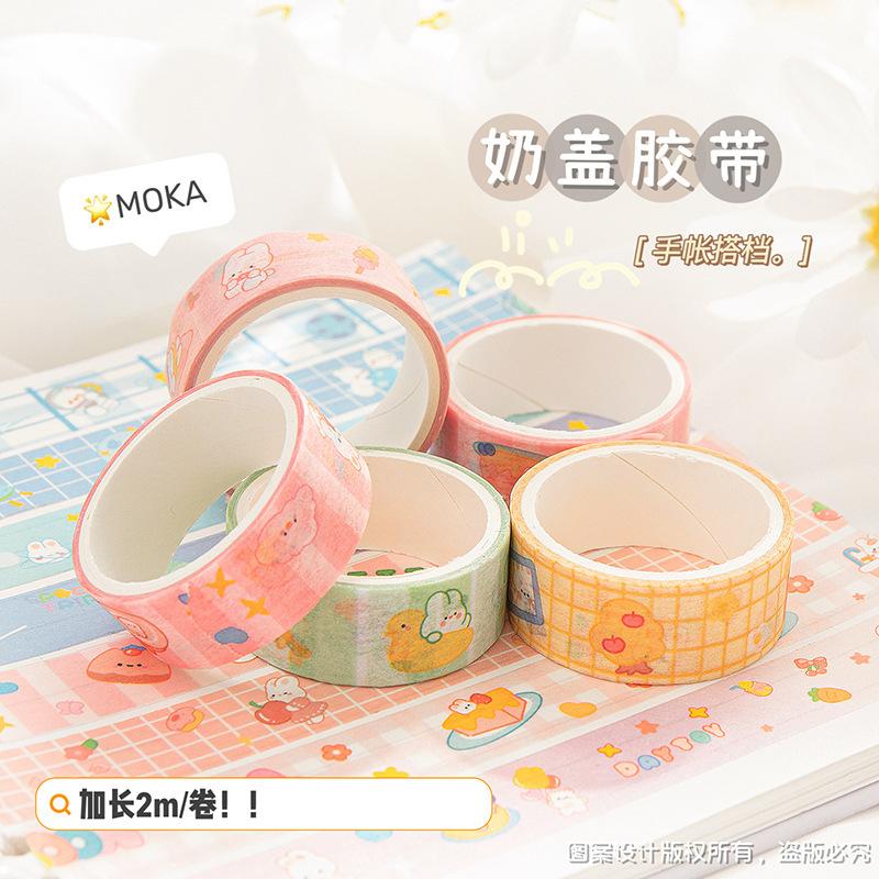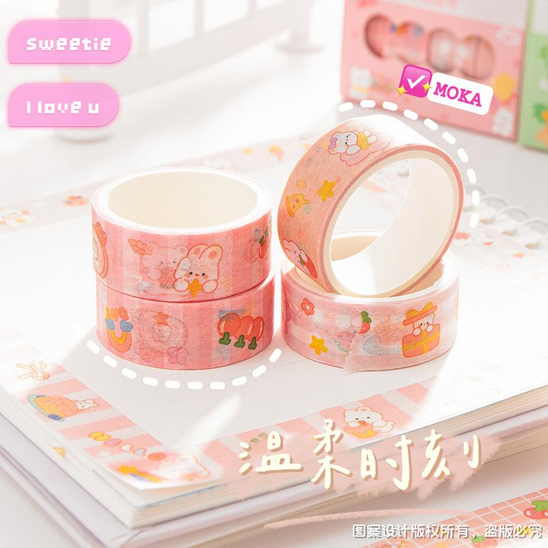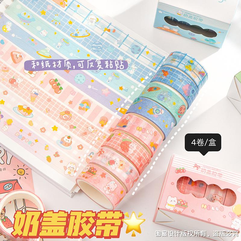 Pegatinas de taza de agua, dibujos animados, linda cubierta de leche de 4 colores y cinta de papel, material de cuenta de mano de estudiante, cinta de cuenta de mano de corazón de niña al por mayor