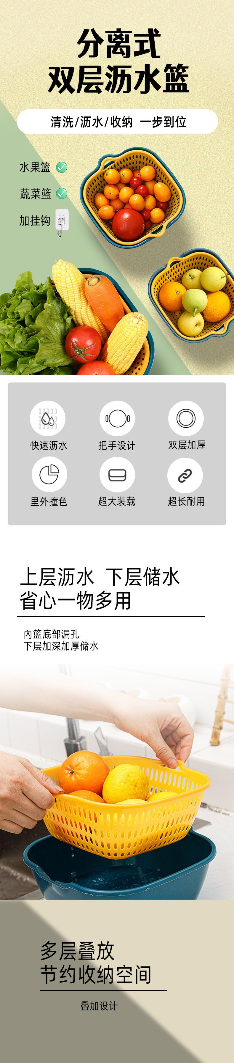 Escurridor de platos cesta para lavar platos grueso doble capa palangana para lavar platos grado alimenticio fruta y verdura cocina multifuncional sala de estar plato de frutas venta directa de fábrica