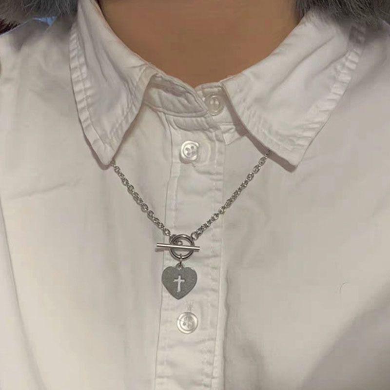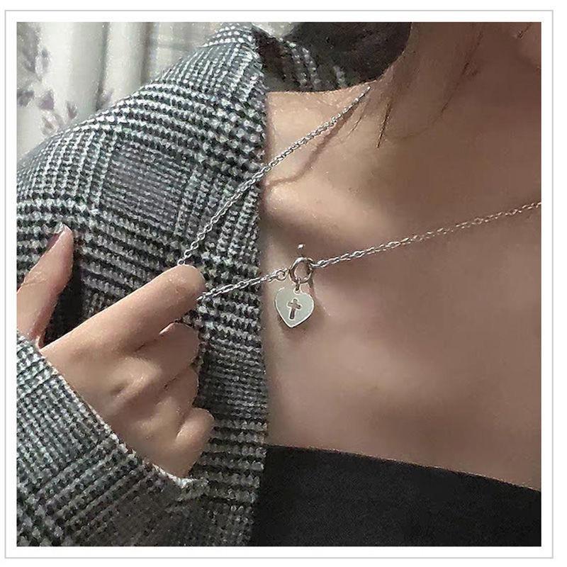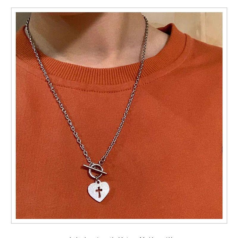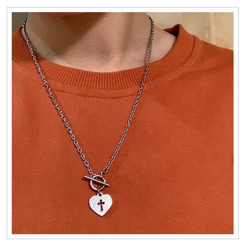 Collar sencillo retro de nicho con cruz de amor para hombre, con hebilla hueca, estilo frío, personalidad callejera, para pareja y mujer.