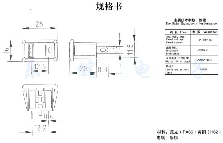 Toma de corriente estándar nacional de dos orificios tipo tarjeta AC-09, toma de corriente de salida a presión de dos orificios de 16 x 26 mm.