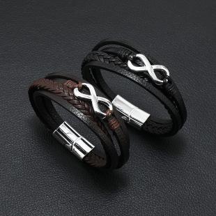 | Pulsera popular europea y americana para hombres, pulsera de cordón de cuero con forma de 8 infinitas, combinable con todo, hebilla magnética, accesorios de cuero trenzado simple multicapa. |