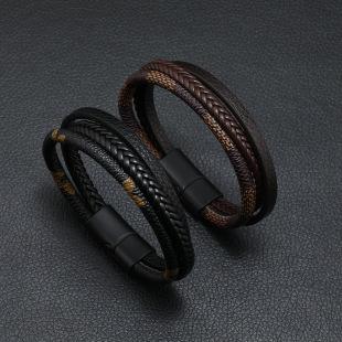 | Pulsera de cuero unisex de múltiples capas con hebilla magnética tejida a mano, estilo retro original de comercio electrónico transfronterizo |