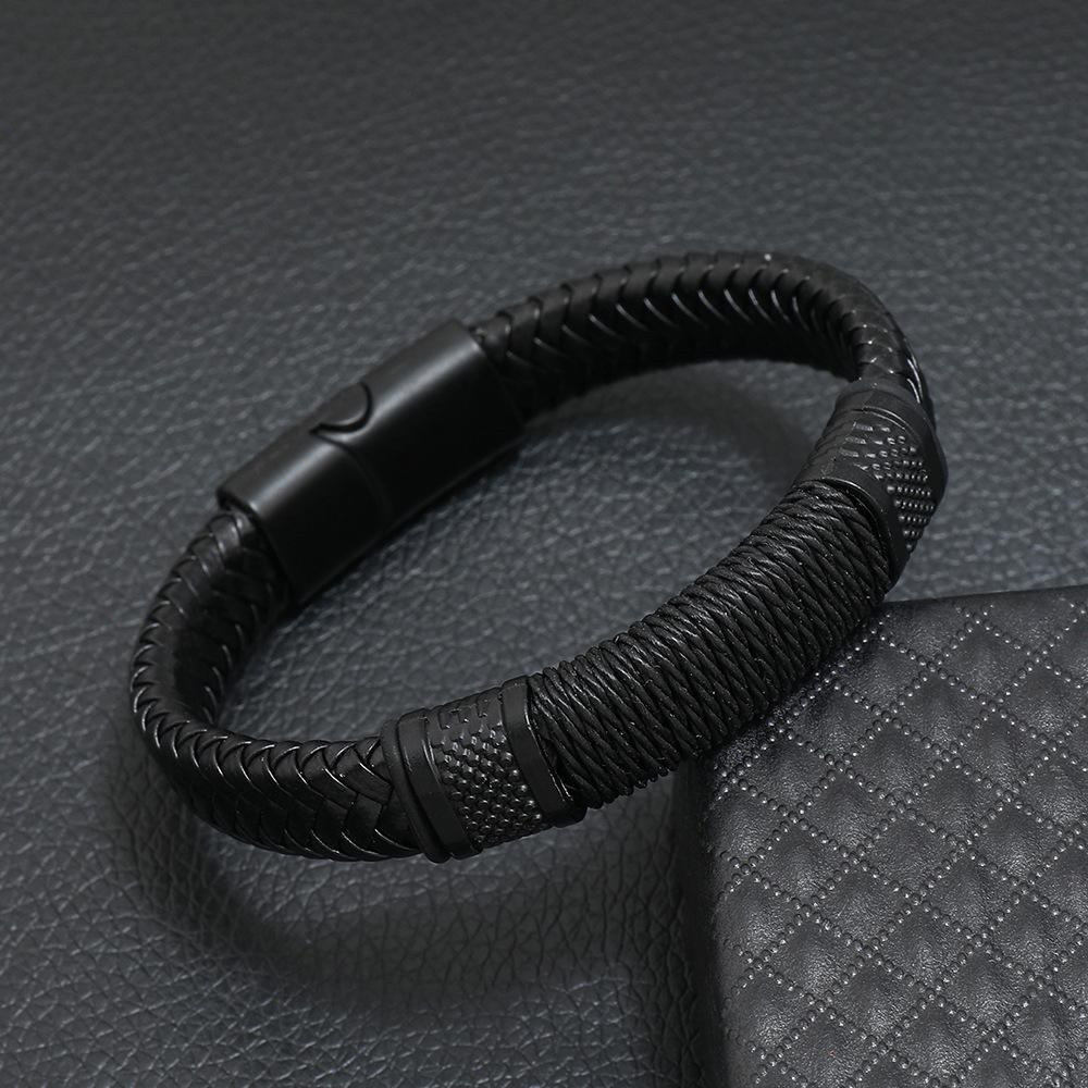 | Nuevas pulseras de joyería europeas y americanas de gran venta, pulsera de hebilla magnética de aleación de cuerda de cuero para hombres, estilo punk transfronterizo de una sola pieza, dropshipping |