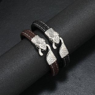 | Pulsera exótica transfronteriza de aleación nueva con cabeza de serpiente, tendencia de personalidad, pulsera de cuero de hip-hop para hombres, venta al por mayor |