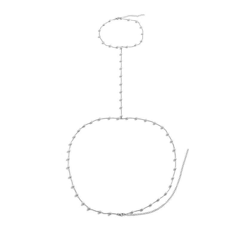 Joyería Transfronteriza Europea y Americana Cadena de Cintura de Perlas Falsas de Verano Versátil Simple Cadena Corporal de Playa Cadena para el Pecho de Mujer Diseño Geométrico