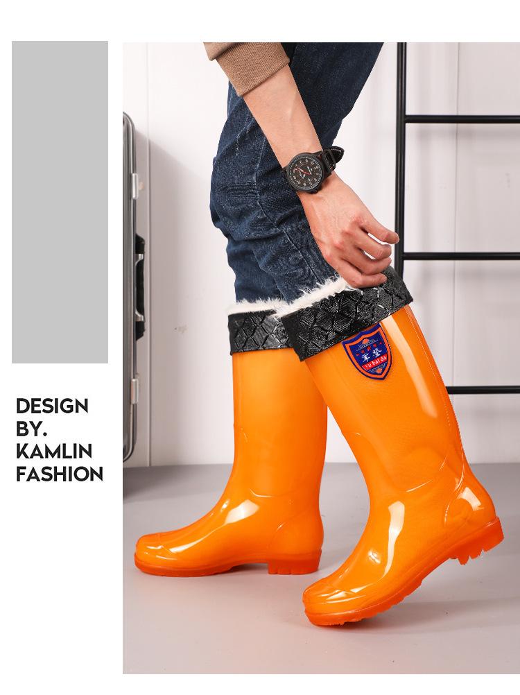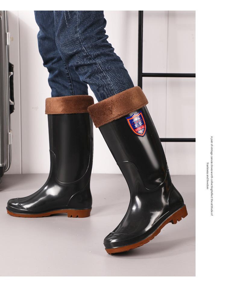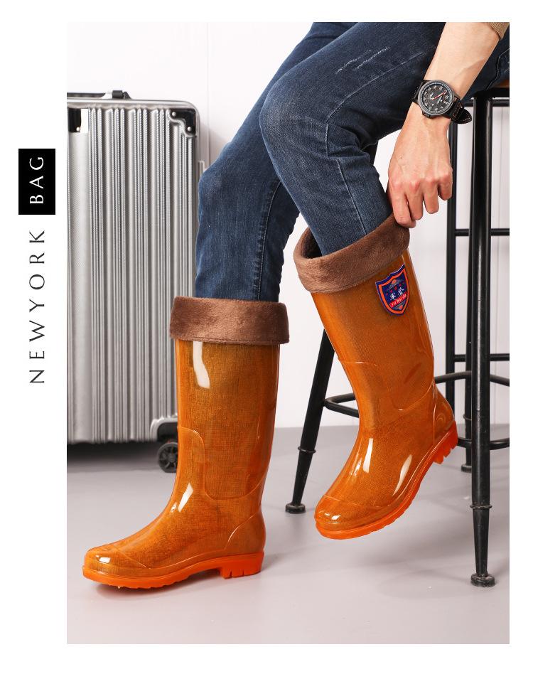 Botas de agua altas impermeables antideslizantes para hombre, forradas de vellón cálido, resistentes al desgaste, botas de lluvia para construcción, protección laboral, lavado de autos