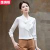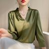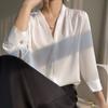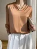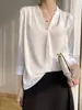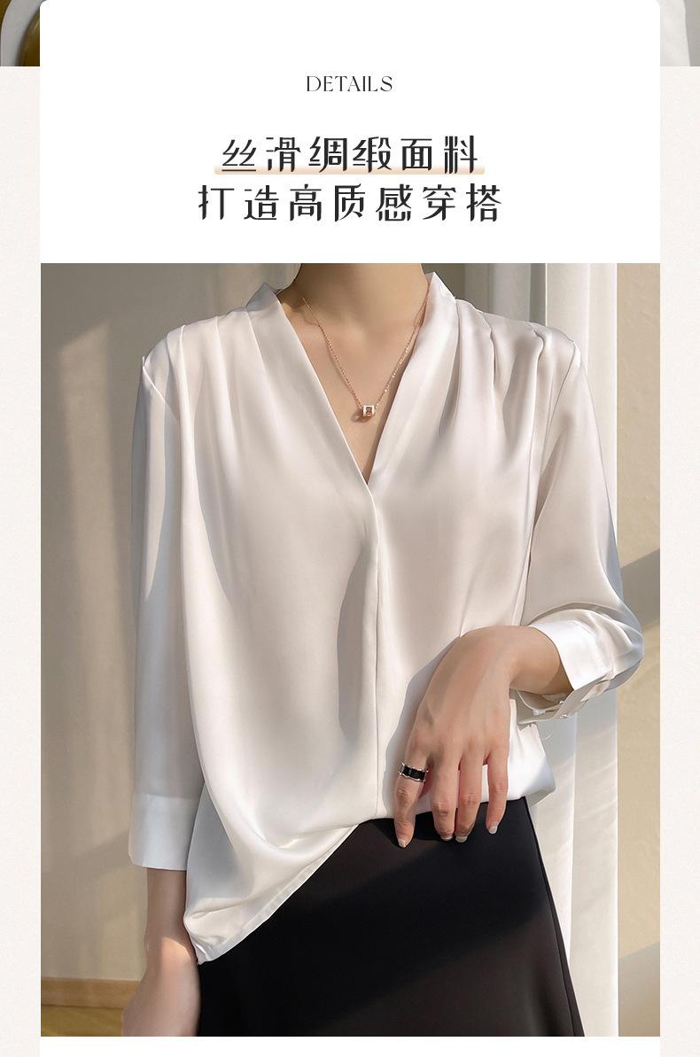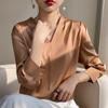 Camisa de Satén de Seda Simulada para Mujer con Cuello en V Primavera y Verano 2025 Nuevo Diseño Plisado Camisa Nicho Mangas Tres Cuartos