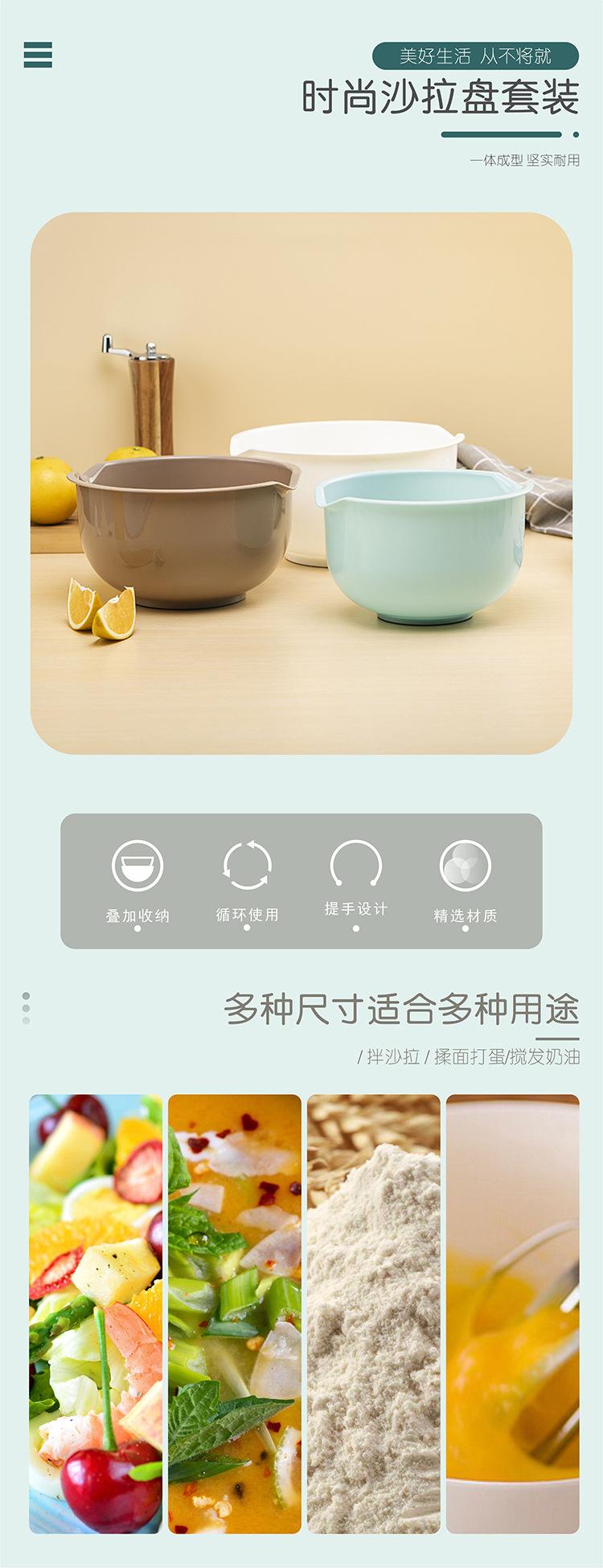 Fábrica en stock venta al por mayor ensaladera de 3 piezas cocina multifuncional tazón de mezcla de plástico hogar cesto para lavar frutas