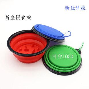 Cuenco portátil de silicona para perros, suministros para mascotas, comedero de agua para perros, cuenco de comida lenta con tapa, cuenco plegable para mascotas