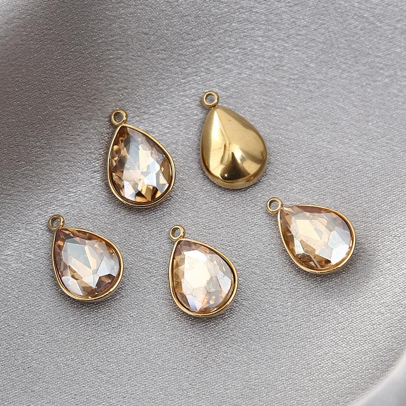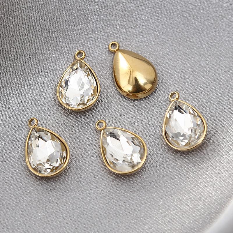 Colgante de acero inoxidable dorado con forma de gota de agua para cumpleaños, venta transfronteriza, accesorios de joyería DIY con forma de gota de agua.