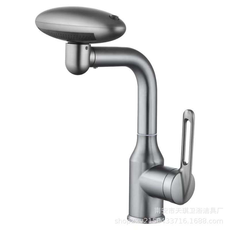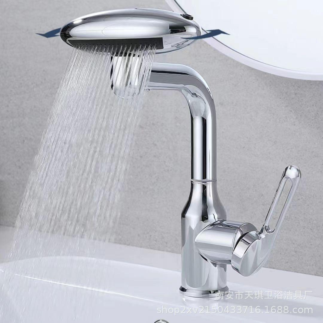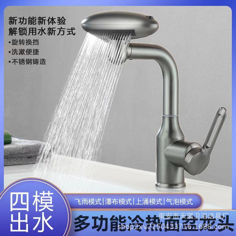 Grifo de Lavabo de Acero Inoxidable para Lavabo de Baño, Ajustable de Cuatro Velocidades Frío y Caliente, Grifo Giratorio con Diseño Chino Nuevo
