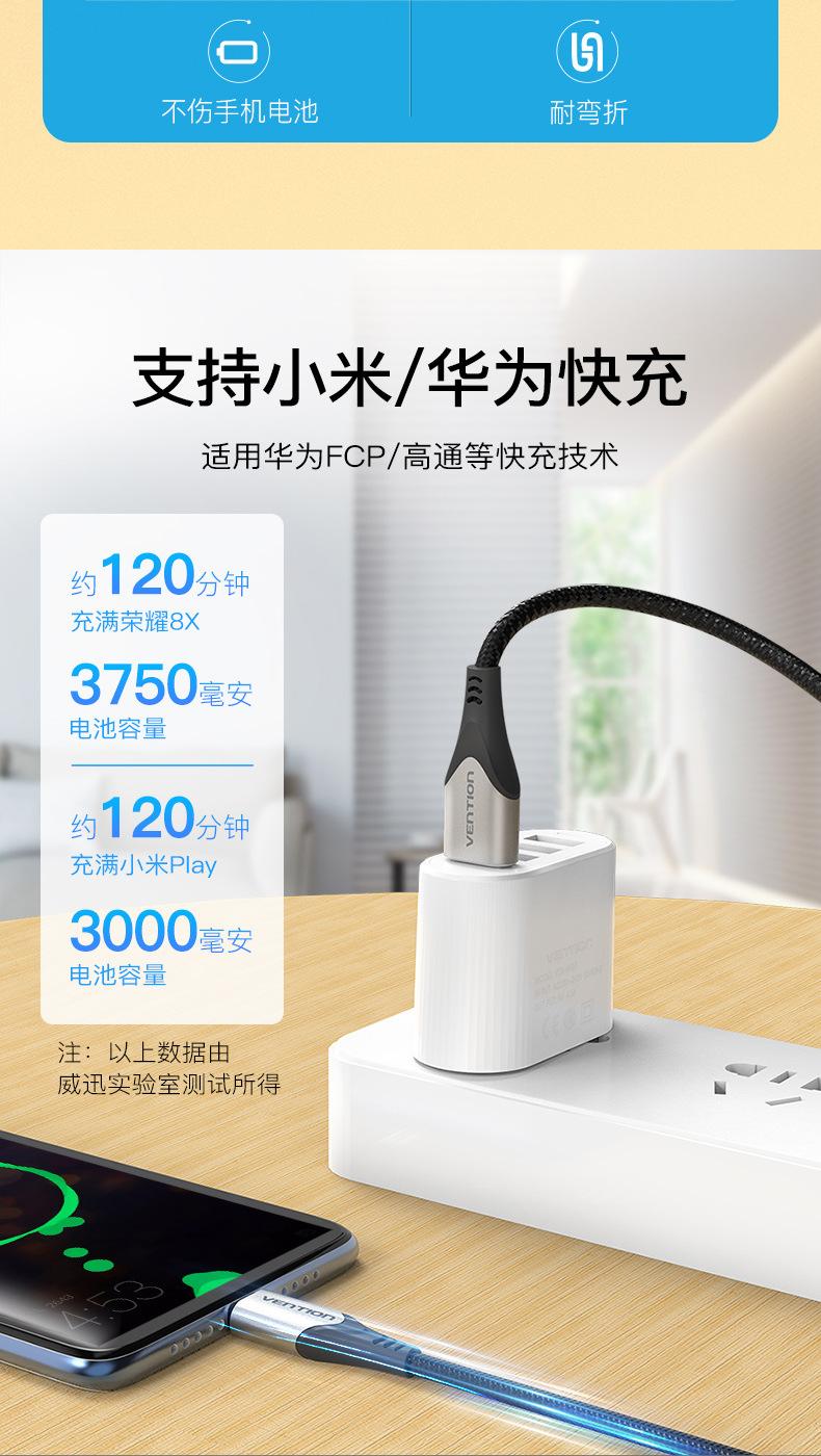 Cable de datos Android Weixun carga rápida micro usb cable para power bank cable corto para cargador para Huawei Xiaomi