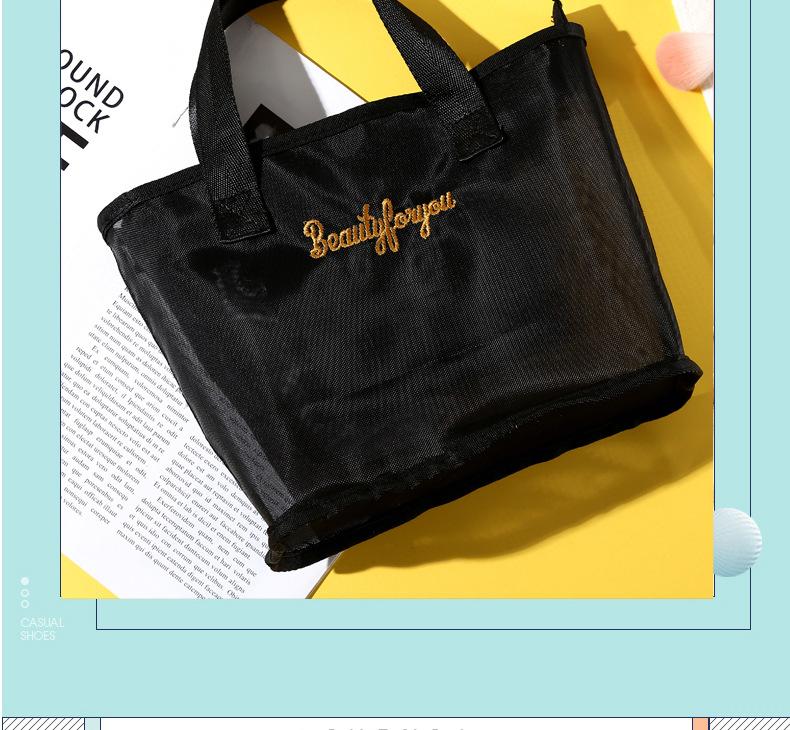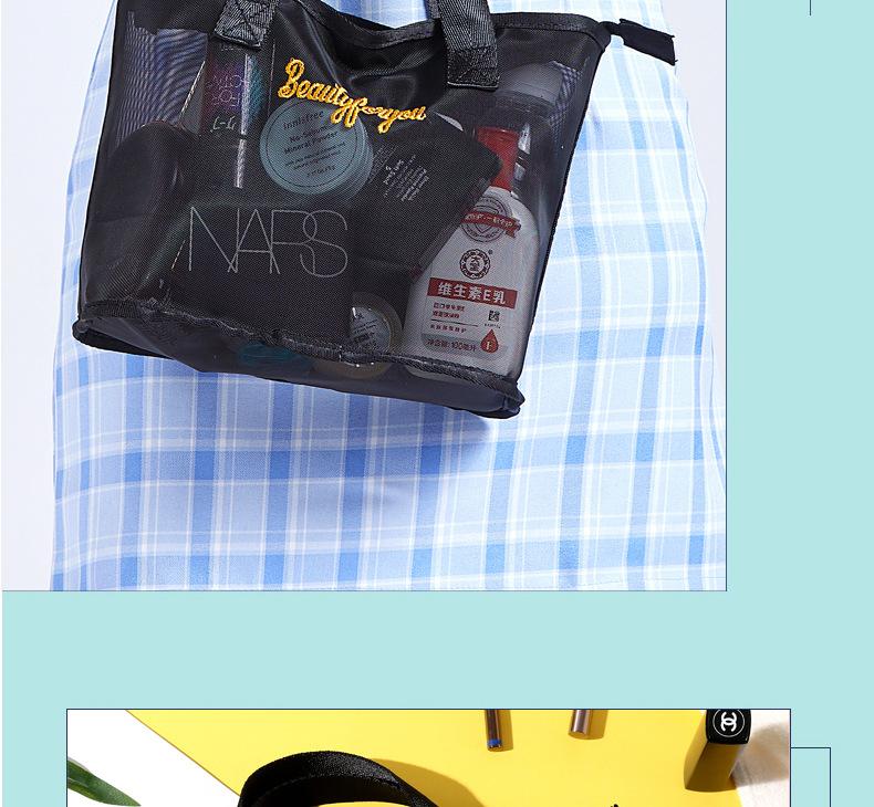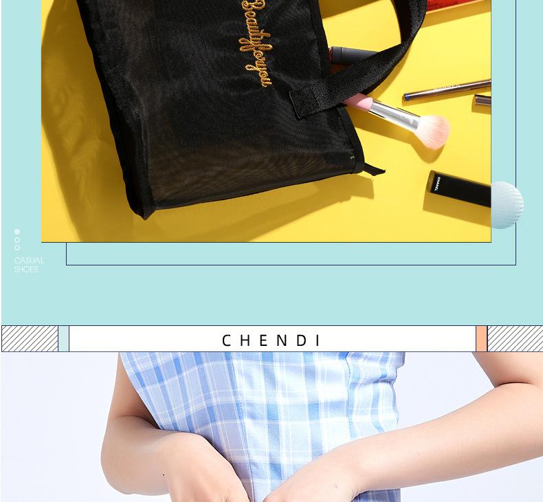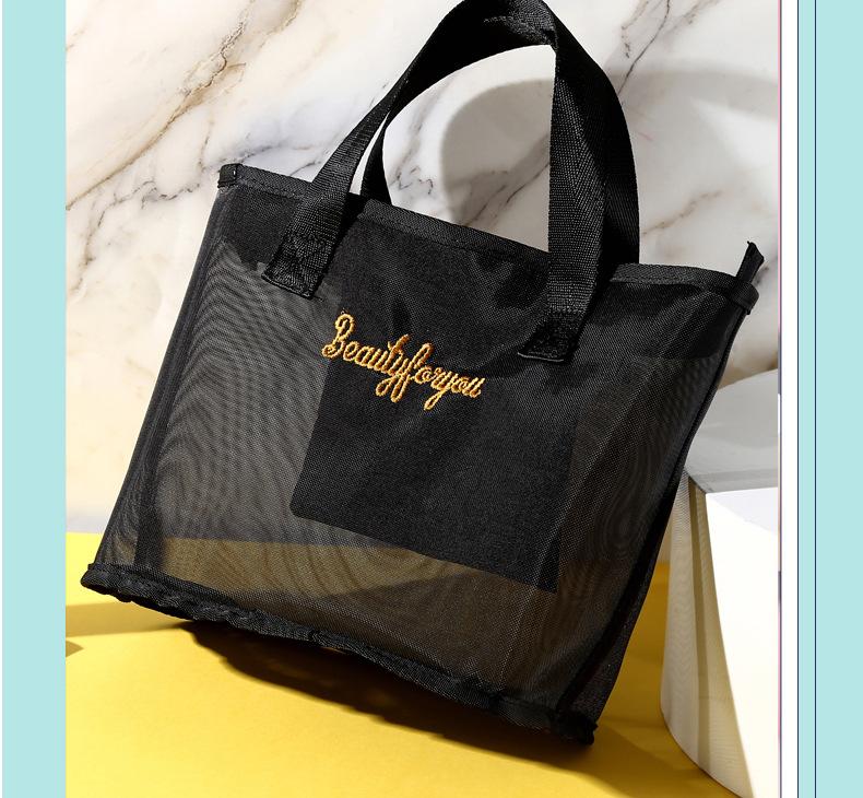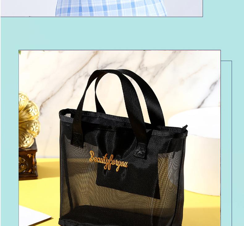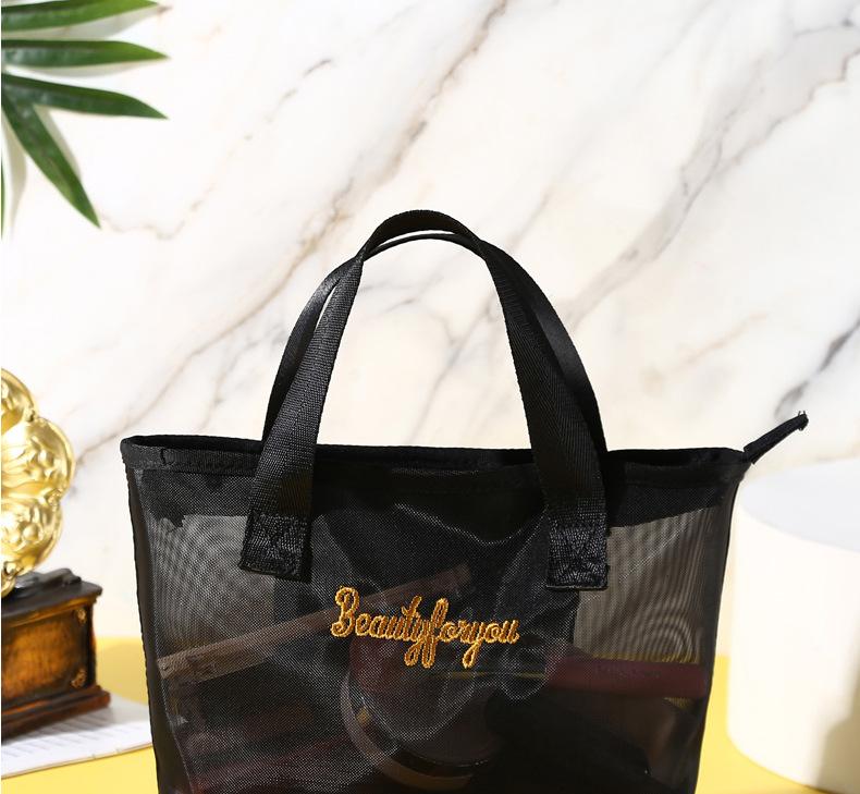 Esta bolsa de aseo/cosmética de malla de mano ha sido mejorada basándose en el modelo antiguo. El nuevo modelo (modelo 2021) tiene las palabras "beauty for you" mejoradas de la serigrafía original al bordado a máquina (bordado). El costo ha sido mejorado, pero el precio permanece sin cambios.