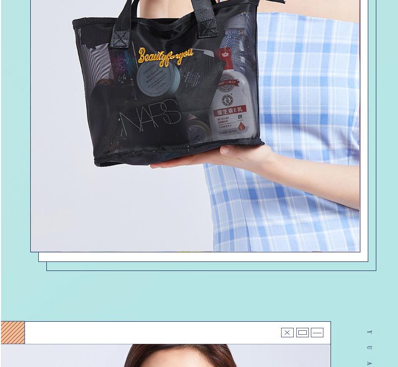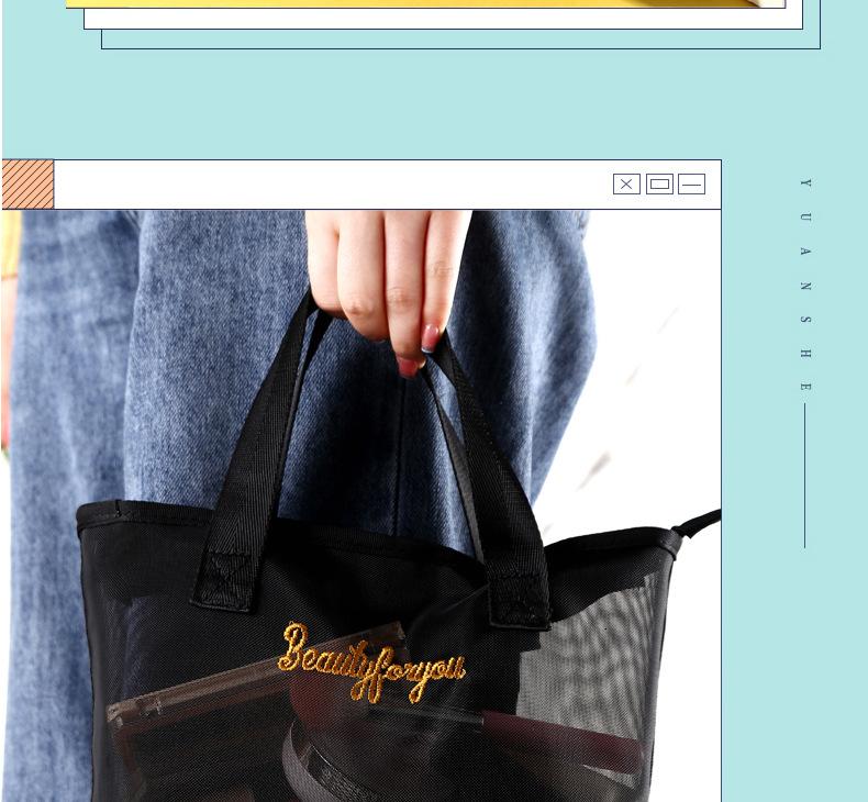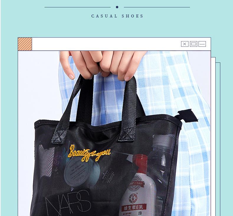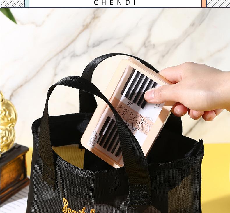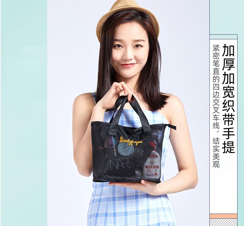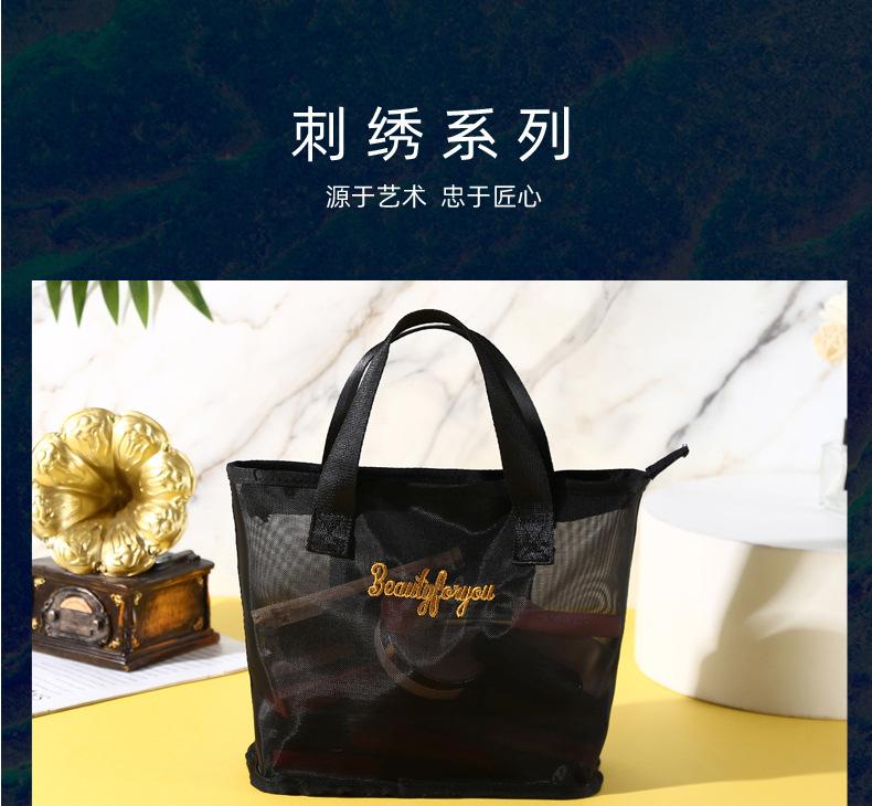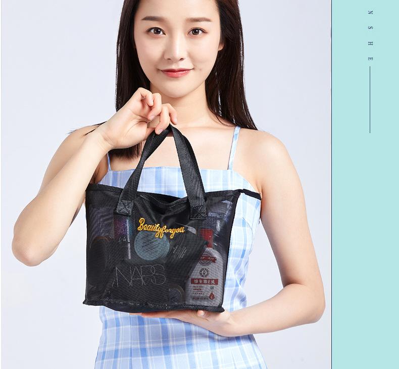 Esta bolsa de aseo/cosmética de malla de mano ha sido mejorada basándose en el modelo antiguo. El nuevo modelo (modelo 2021) tiene las palabras "beauty for you" mejoradas de la serigrafía original al bordado a máquina (bordado). El costo ha sido mejorado, pero el precio permanece sin cambios.