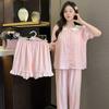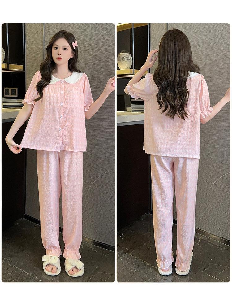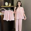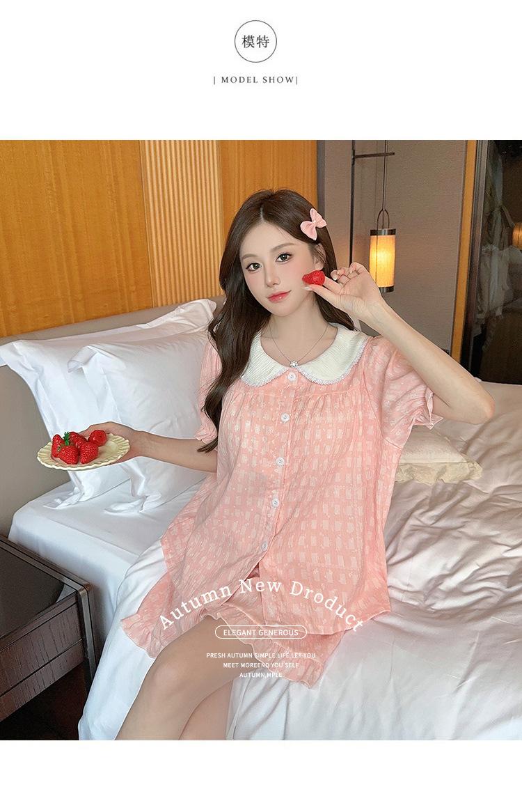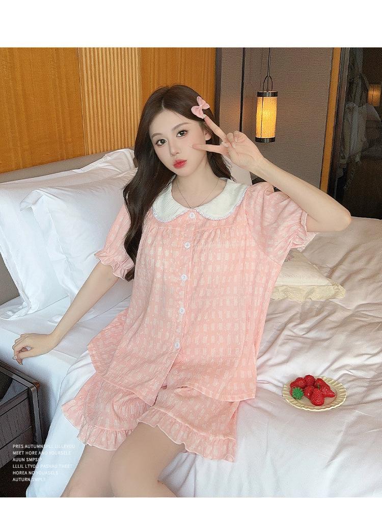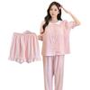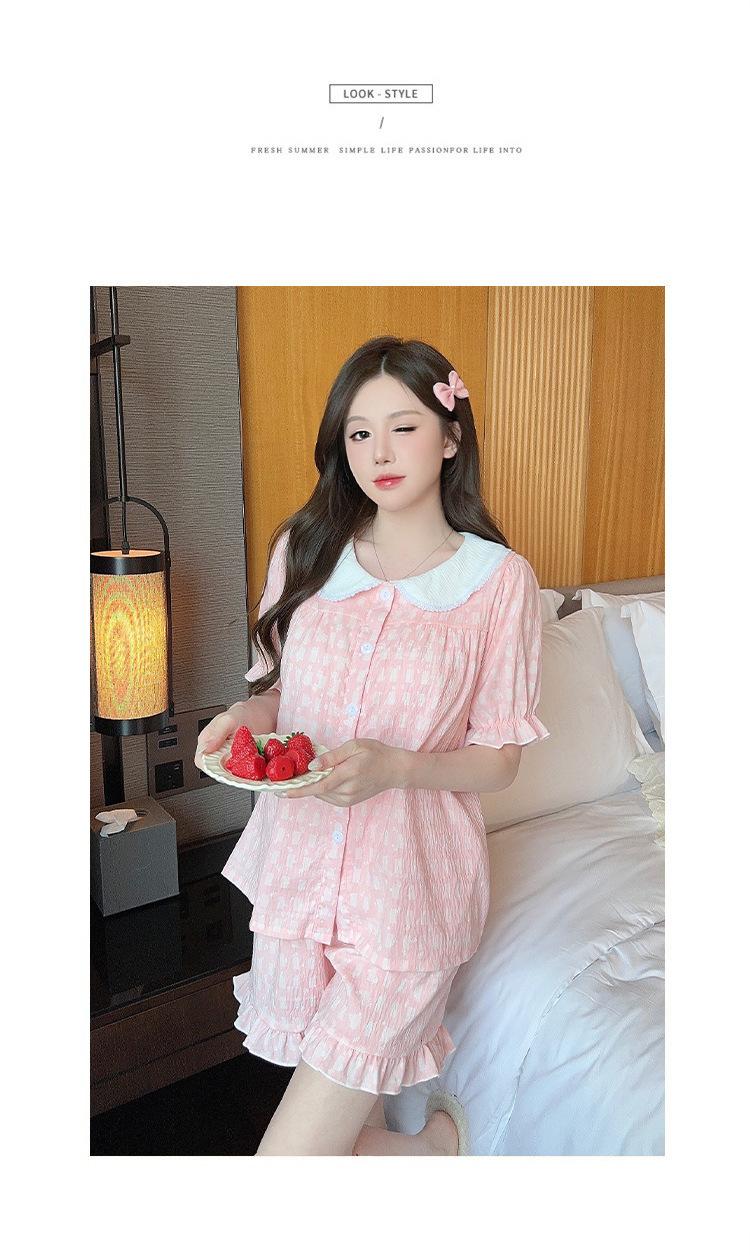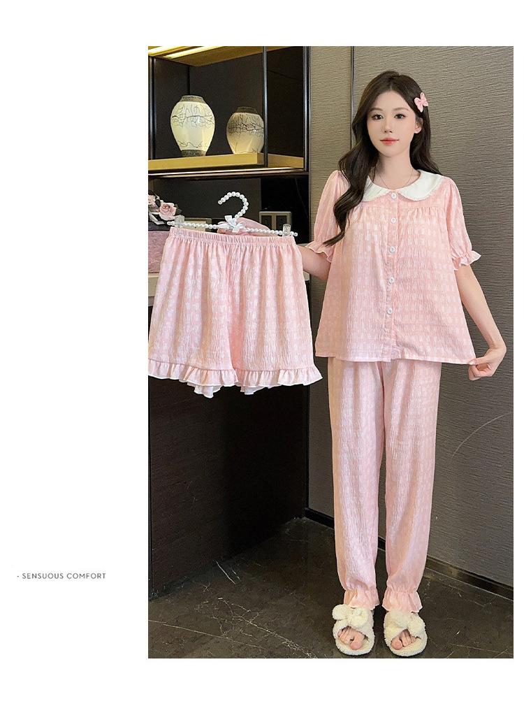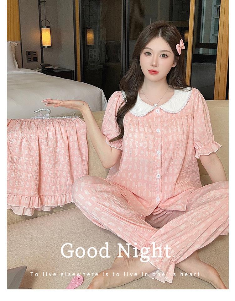 Compra Pijama de verano de tres piezas para mujer, bonito cárdigan de algodón con solapa y nubes dulces, pantalones de manga corta, ropa fina para el hogar. al por mayor en Joom.pro
