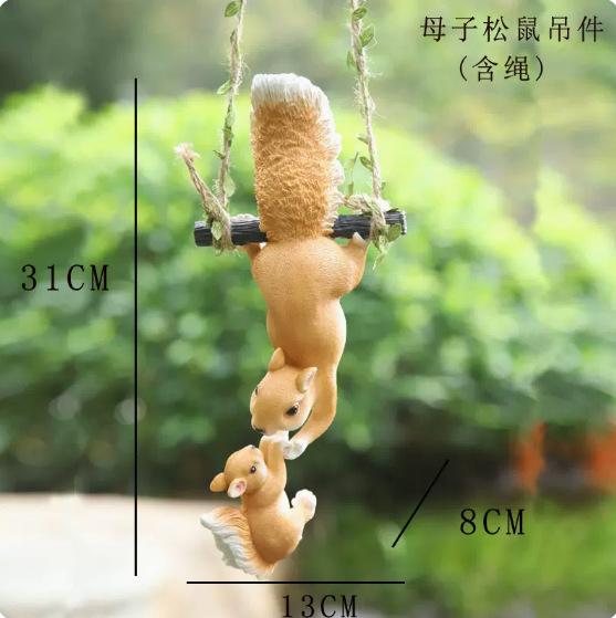 Squirrels climbing in trees, Squirrel mother and child sling pendant, Monkey hanging upside down
