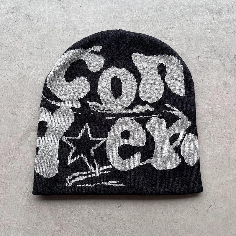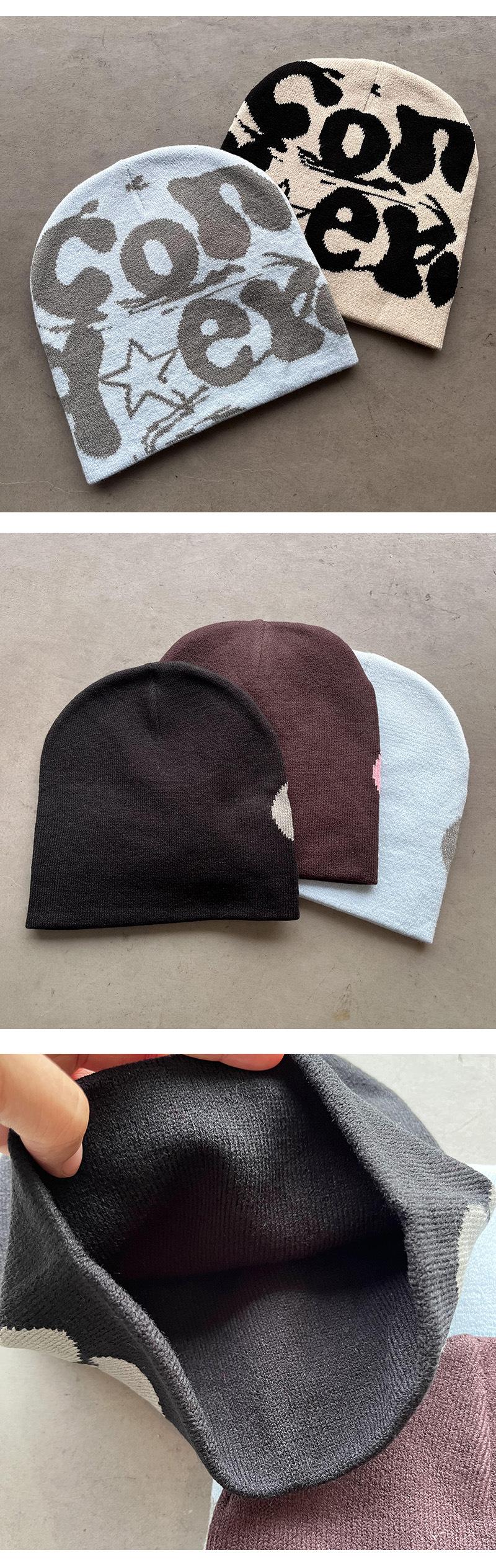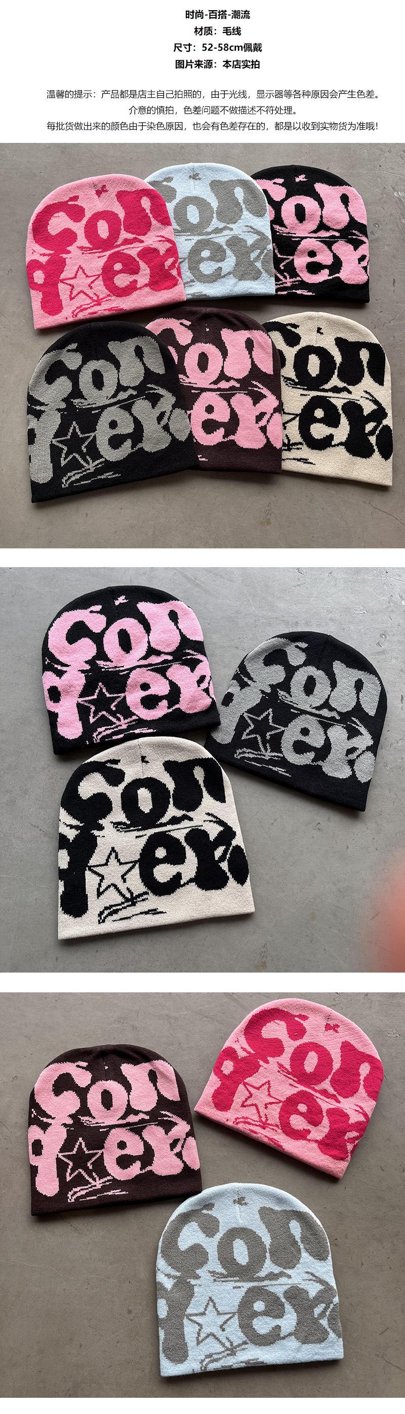 Sombrero de lana de moda estilo coreano para combinar con todo, otoño e invierno, sombrero de punto cálido para hombre y mujer, popular europeo y americano, sombrero jacquard con letras, transfronterizo
