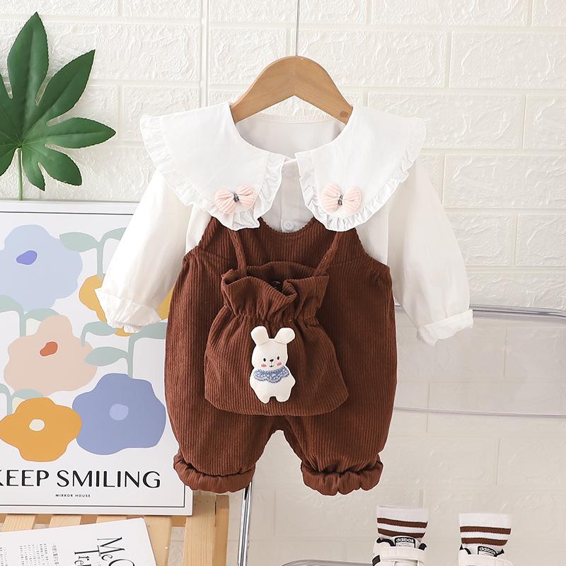 Compra Ropa para niños otoño 2024 solapa de conejo con tirantes para niñas traje infantil de manga larga de otoño al por mayor al por mayor en Joom.pro