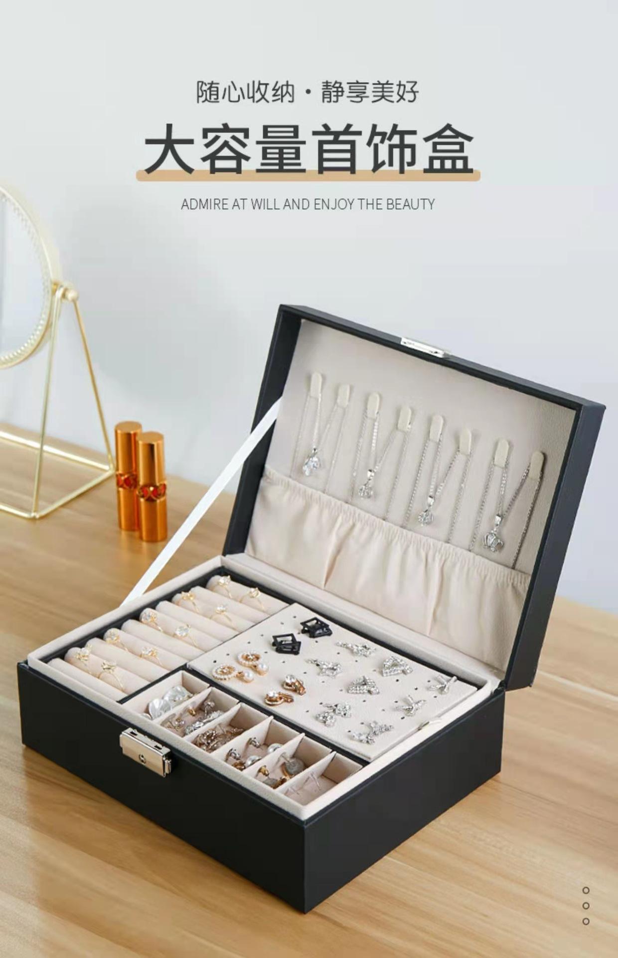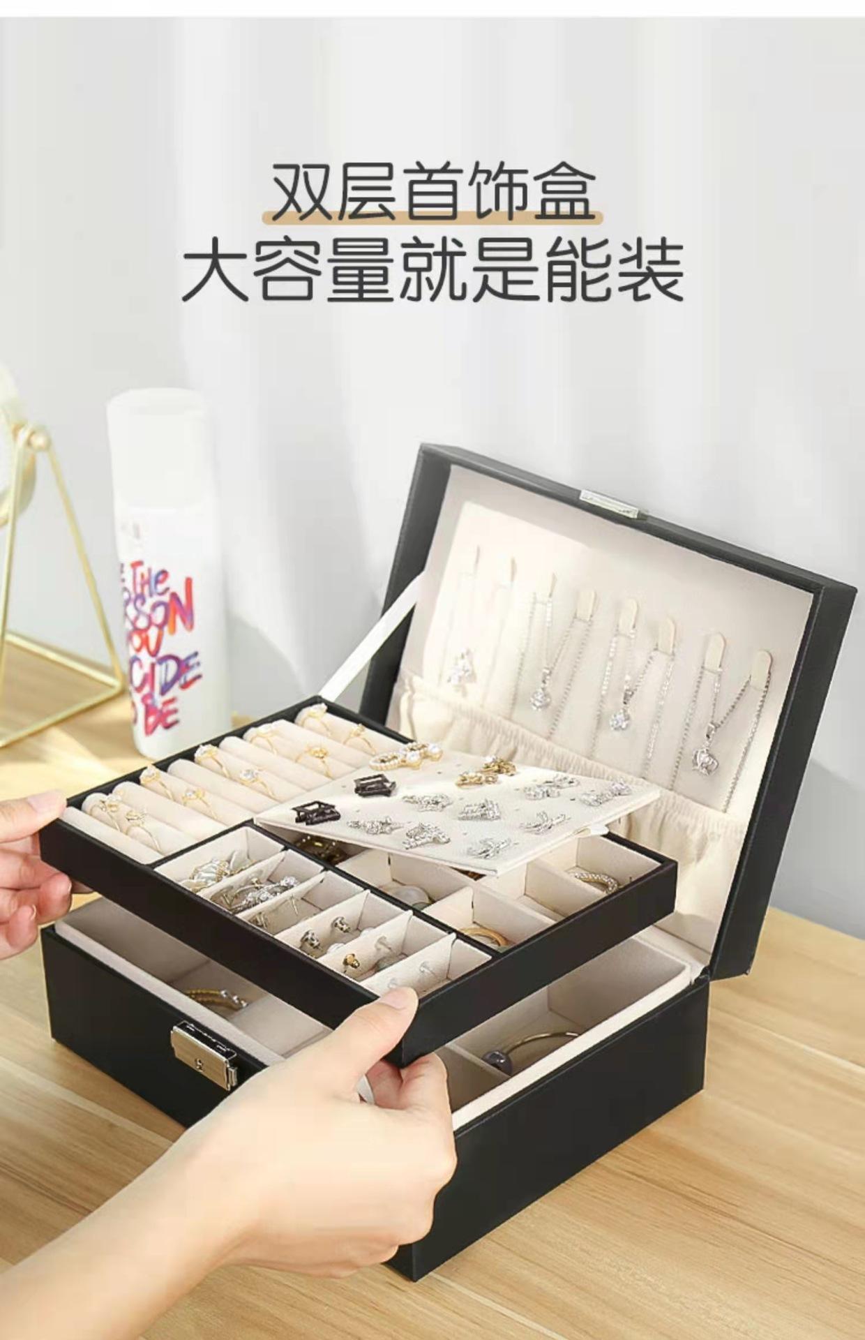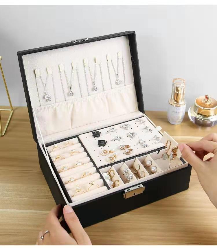Caja de almacenamiento de joyas de alta calidad, caja de joyería multicapa de gran capacidad, caja para anillos, pendientes, collares, embalaje de joyas, caja de regalo al por mayor