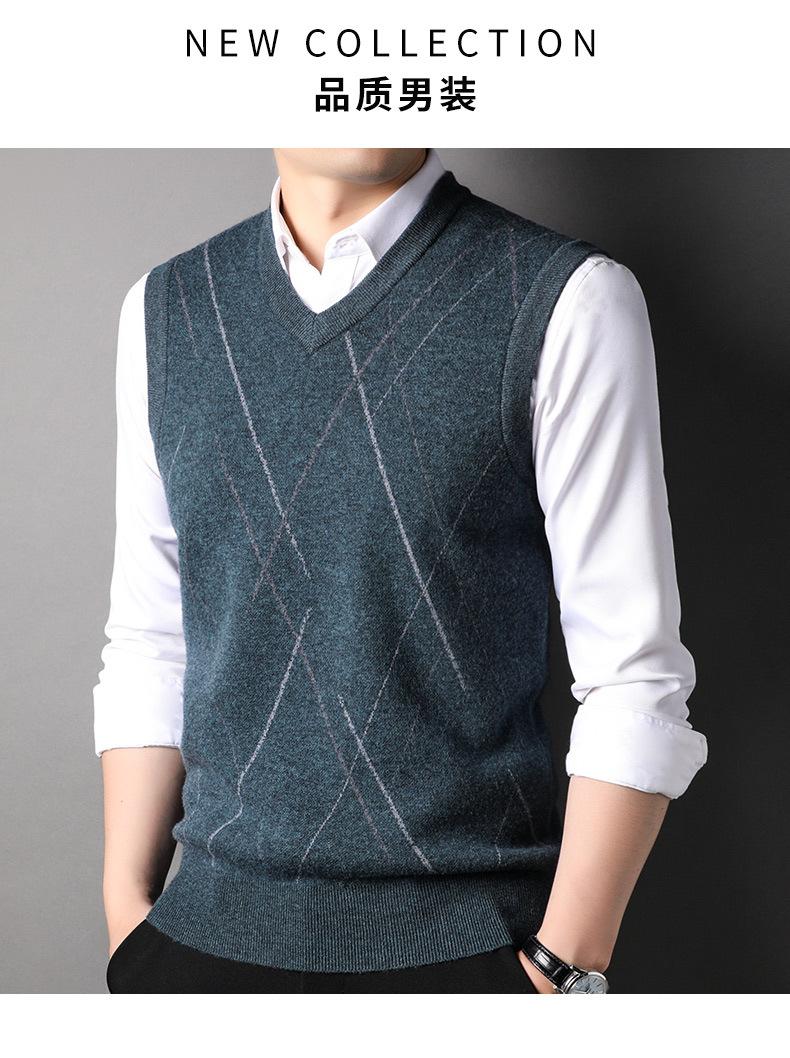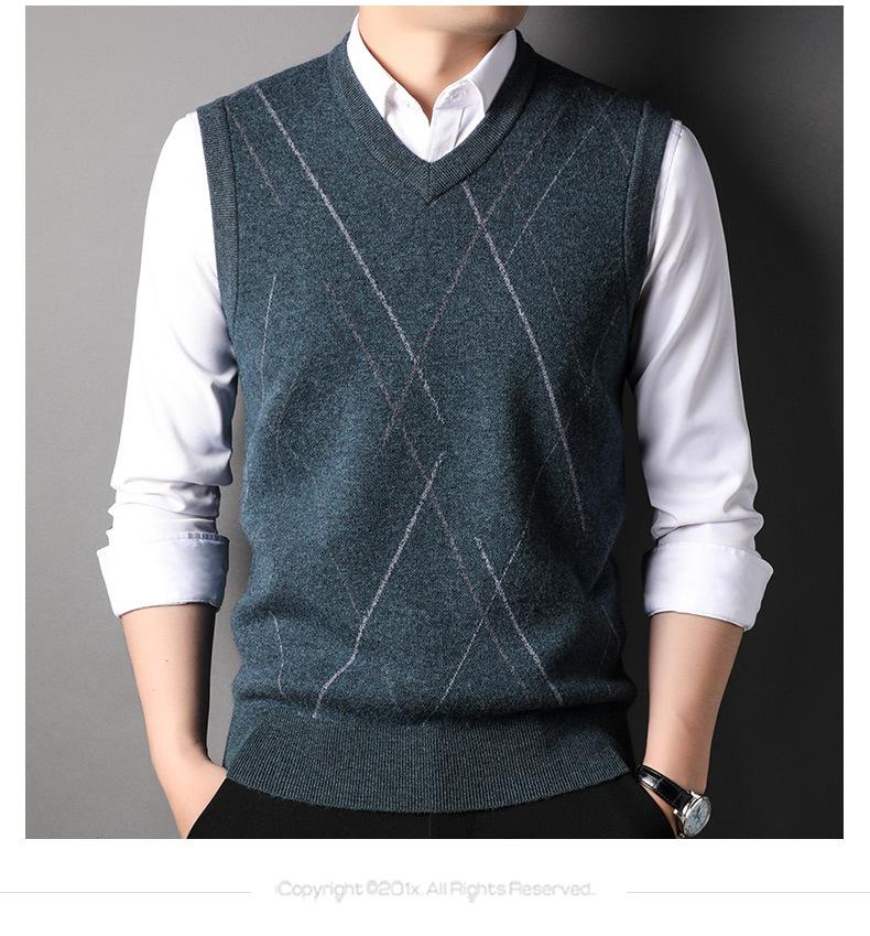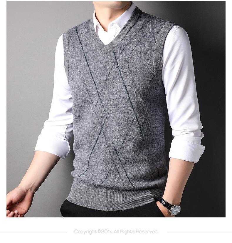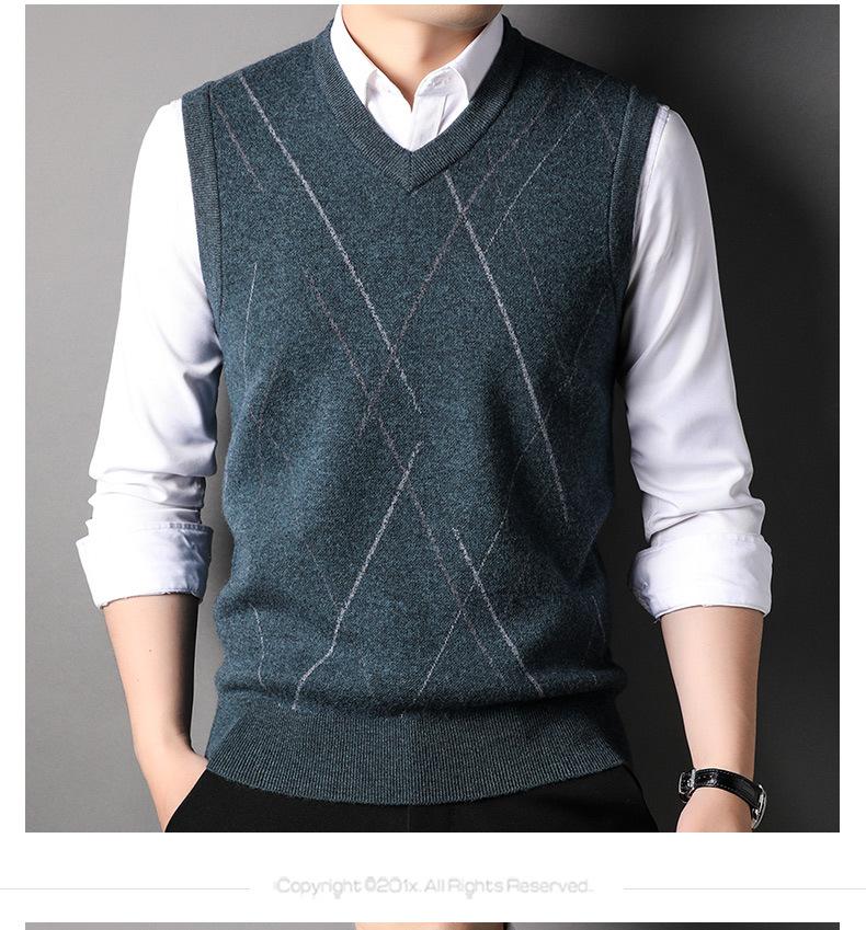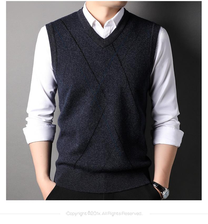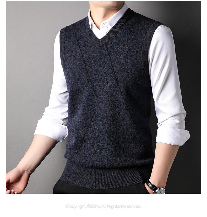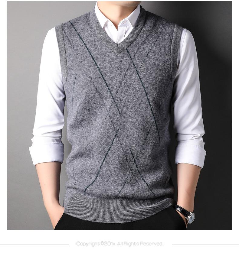 Chaleco de Punto de Otoño Cuello en V Chaleco para Hombre Hombro Sin Mangas Suéter Joven para Hombre Base Interior