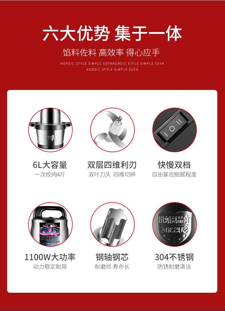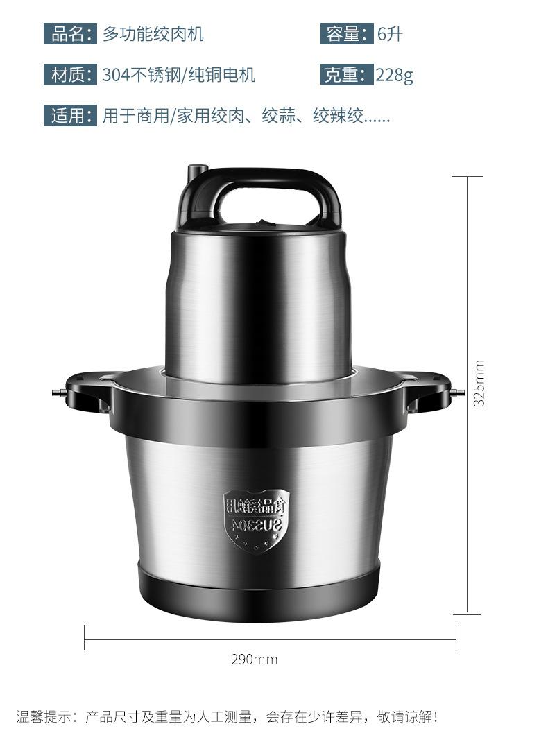 Picadora de carne doméstica eléctrica de acero inoxidable picadora de relleno picadora de carne pequeña dispensador de material para ajo en pasta y chile gran capacidad