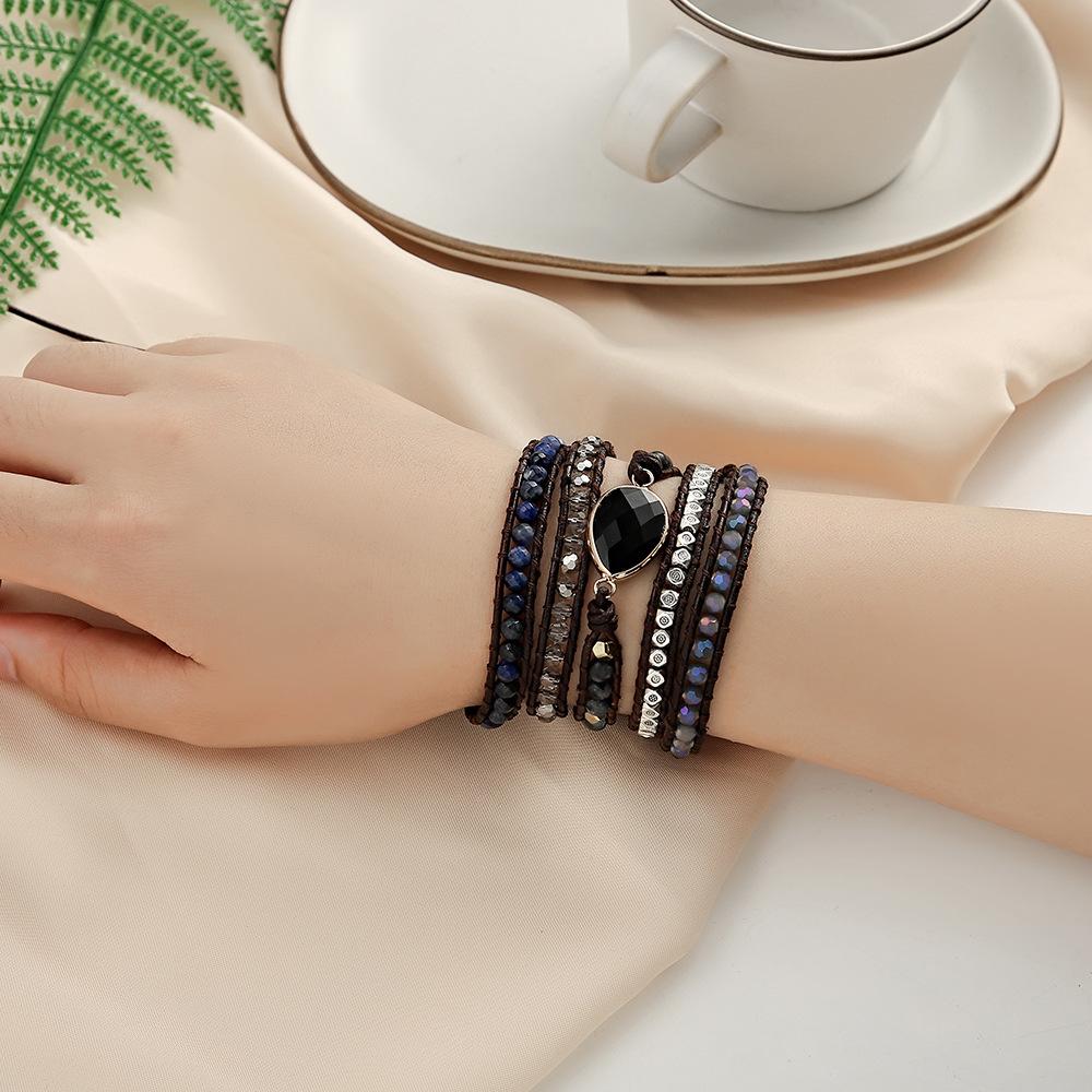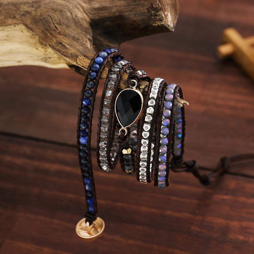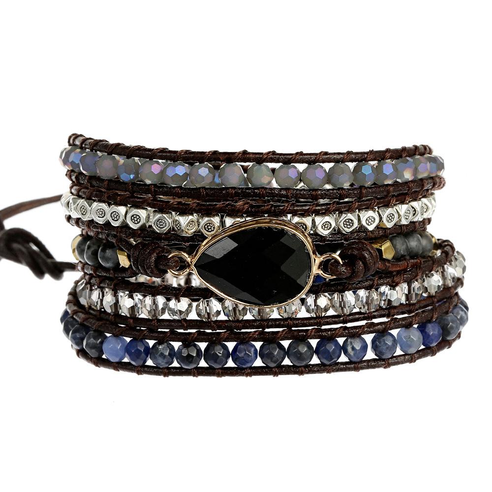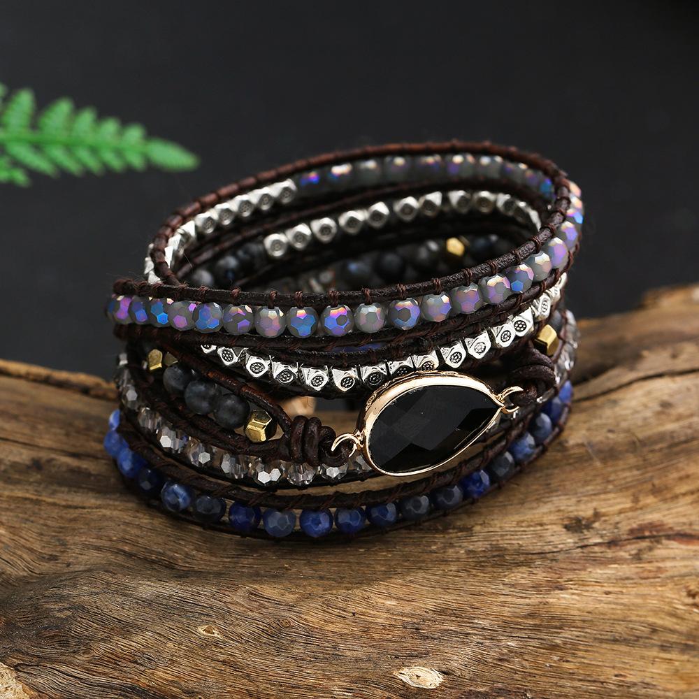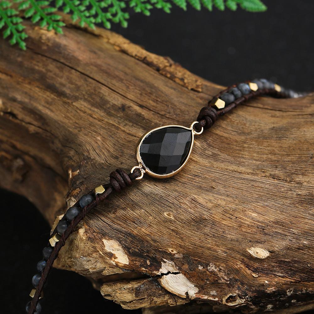 Pulsera Popular Transfronteriza de Ágata Negra con Gota de Agua Natural Tejida a Mano Pulsera Bohemia Creativa Multicapa
