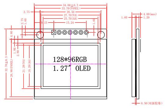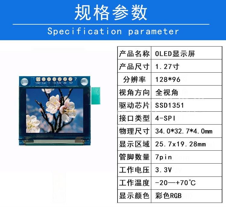 Módulo de pantalla OLED de 1.27 pulgadas Pantalla LCD 128*96 Pantalla HD para exteriores disponible en stock