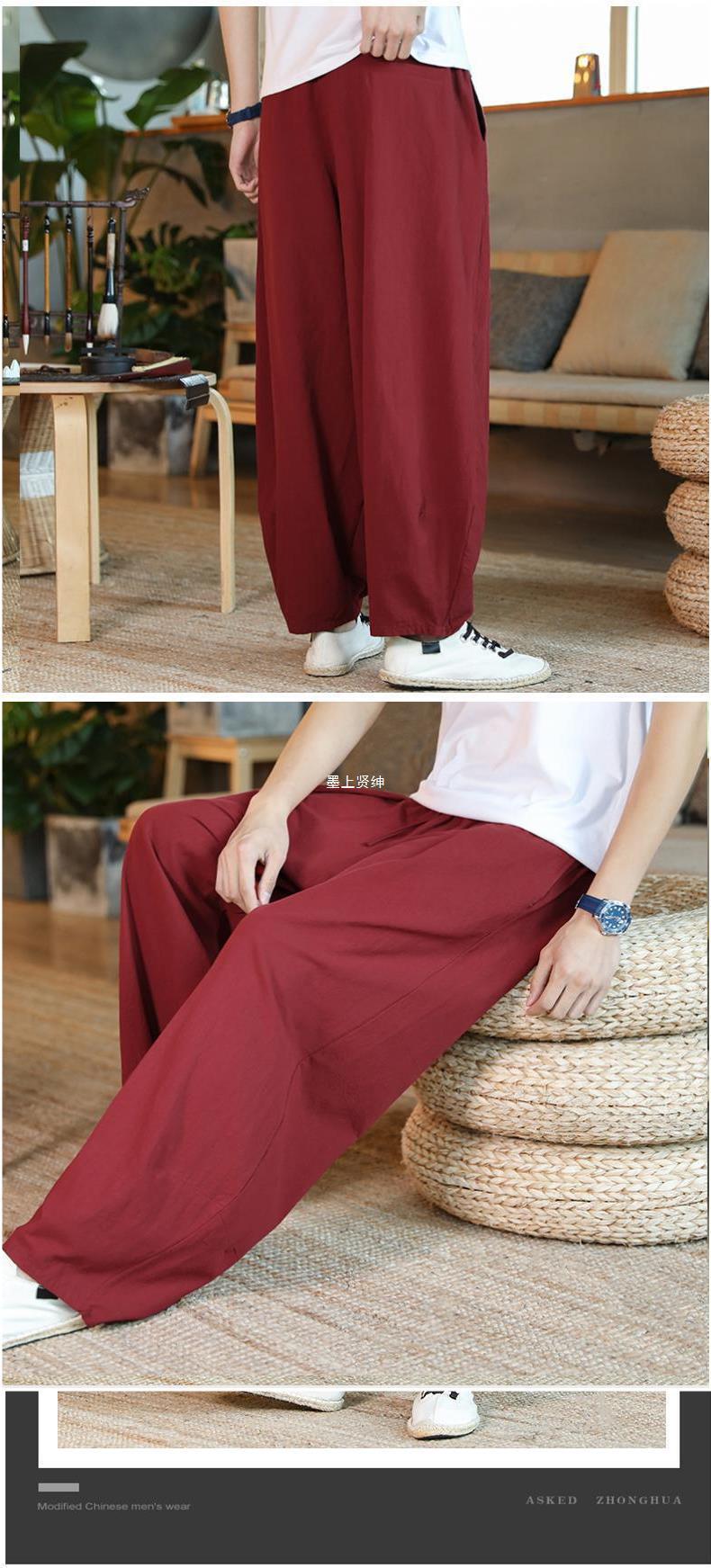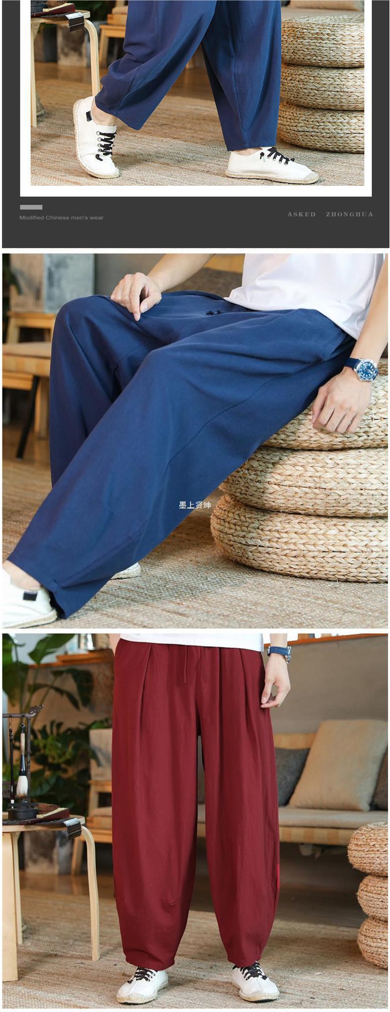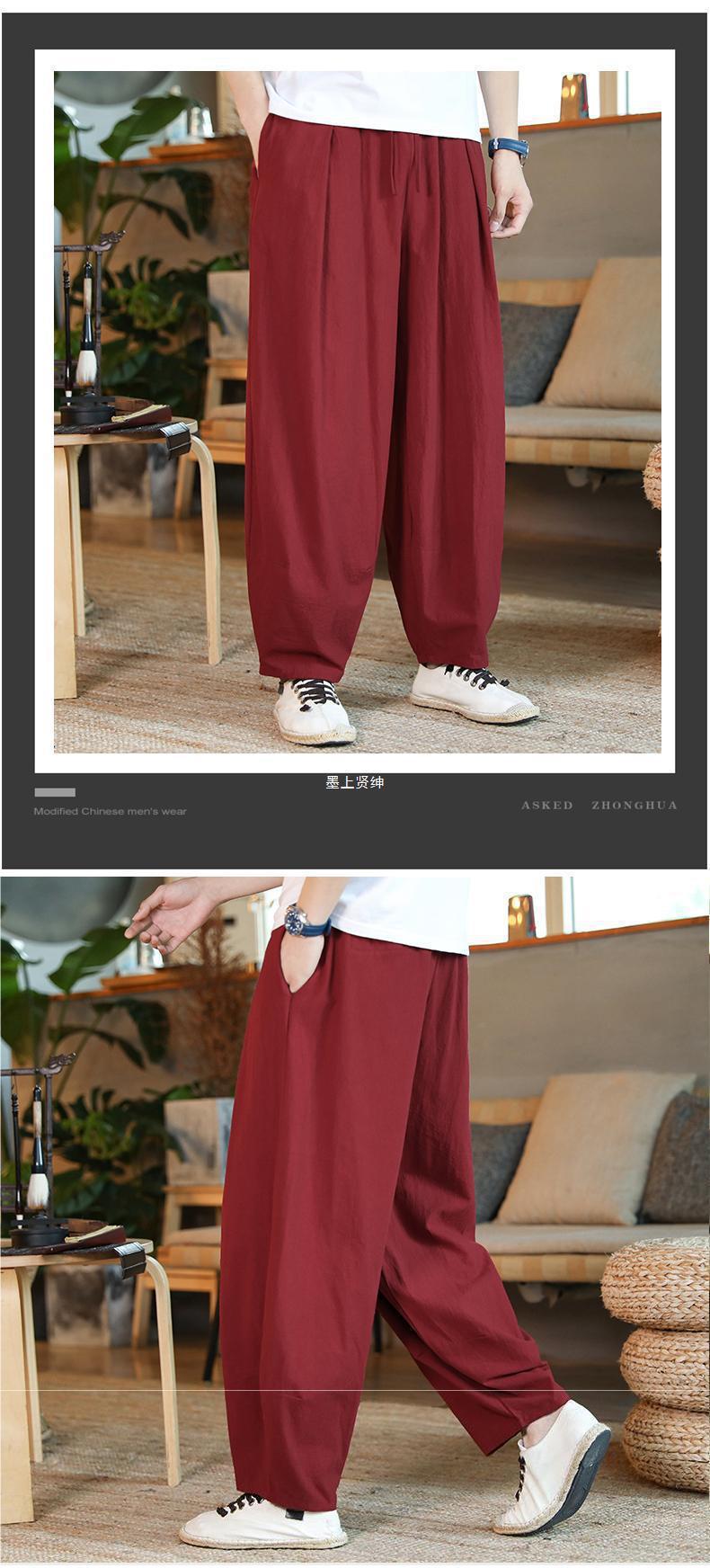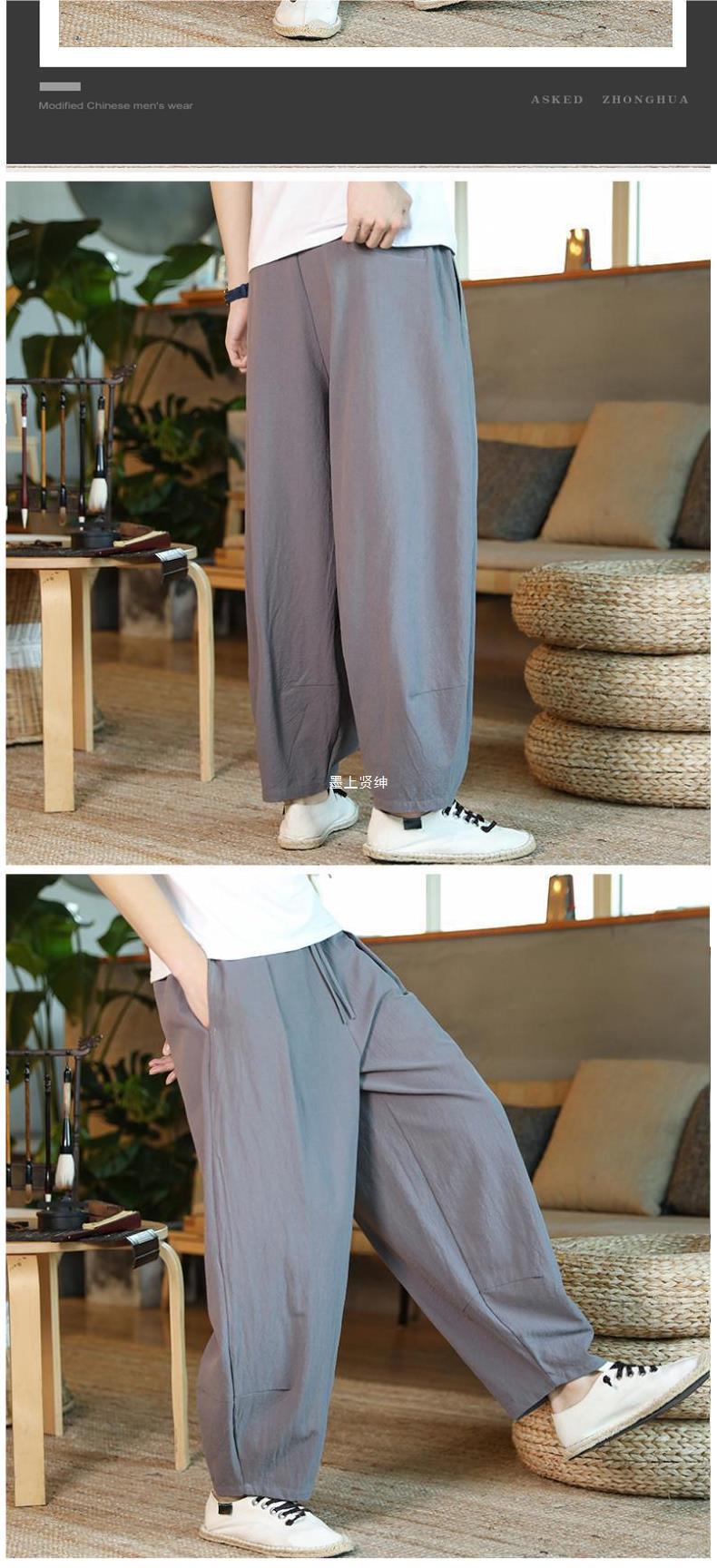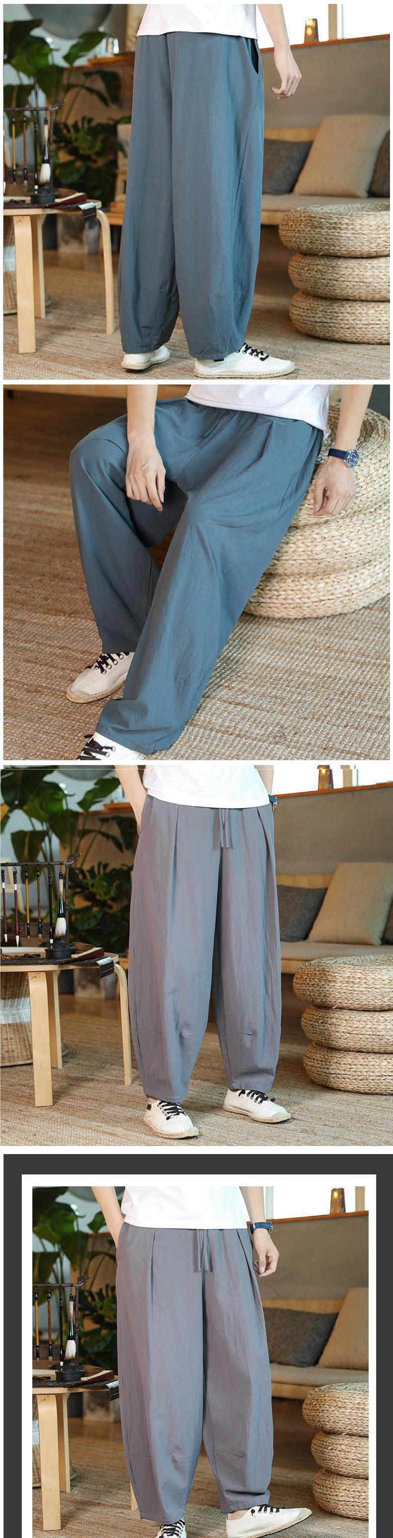 Pantalones de Algodón Lino para Hombre Estilo Chino Verano Delgados Vintage Bombachos Sueltos Pierna Ancha Pantalones Casuales de Lino para Hombre