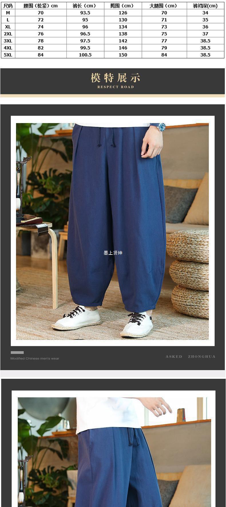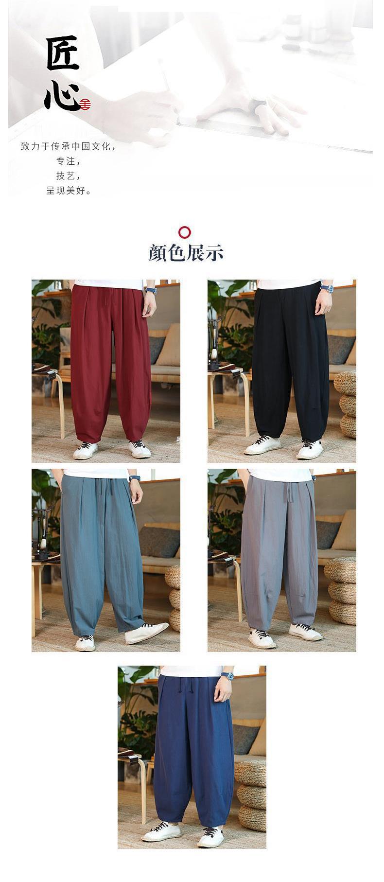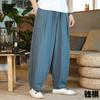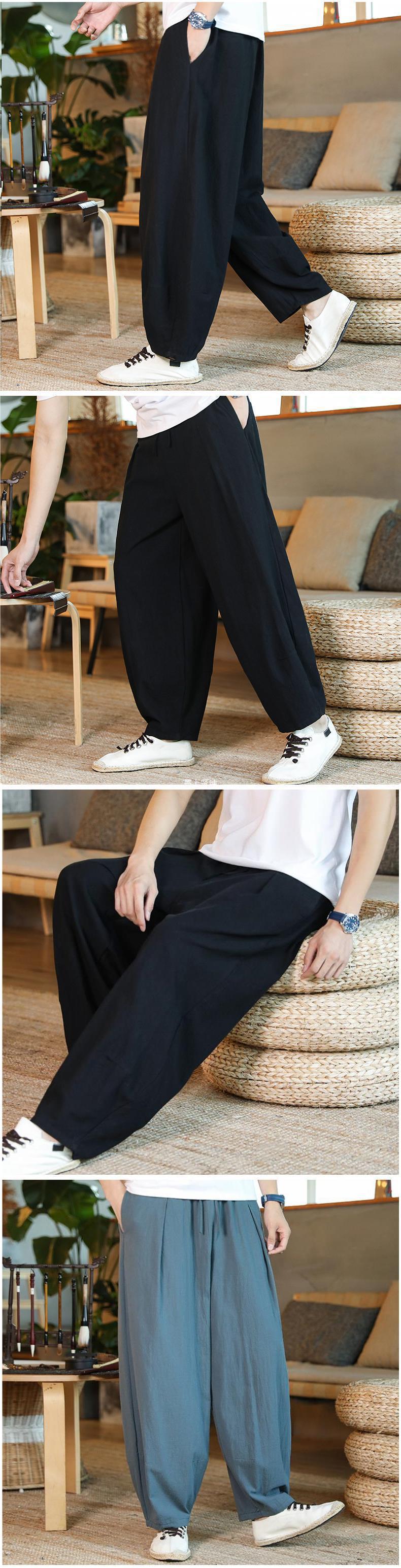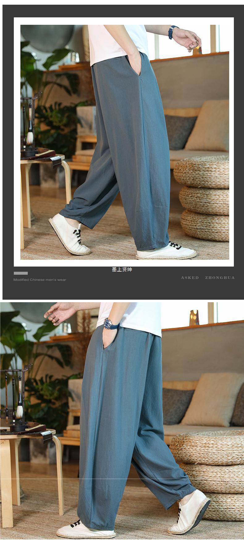 Pantalones de Algodón Lino para Hombre Estilo Chino Verano Delgados Vintage Bombachos Sueltos Pierna Ancha Pantalones Casuales de Lino para Hombre