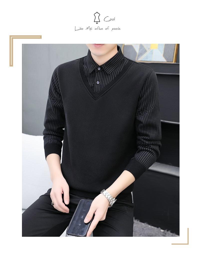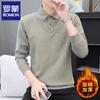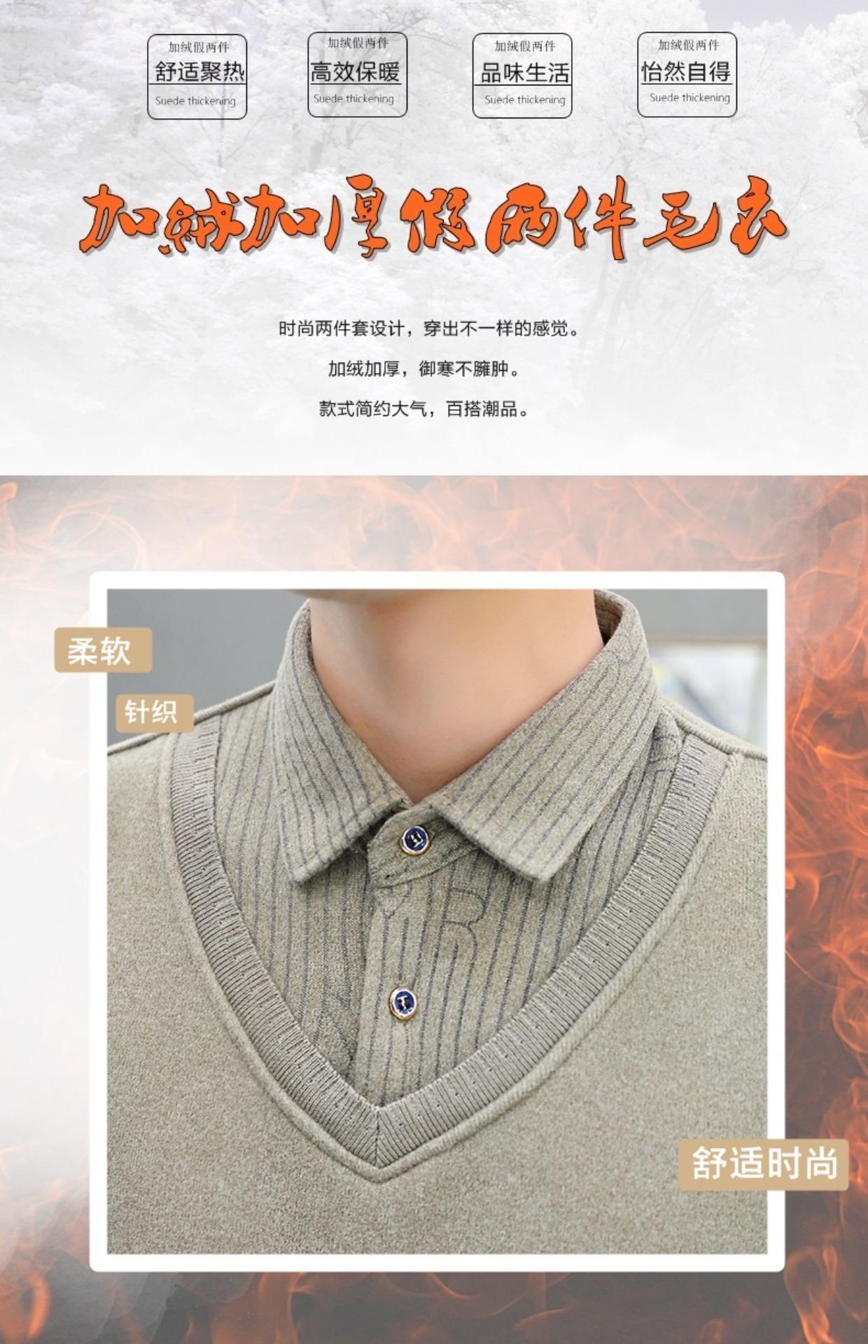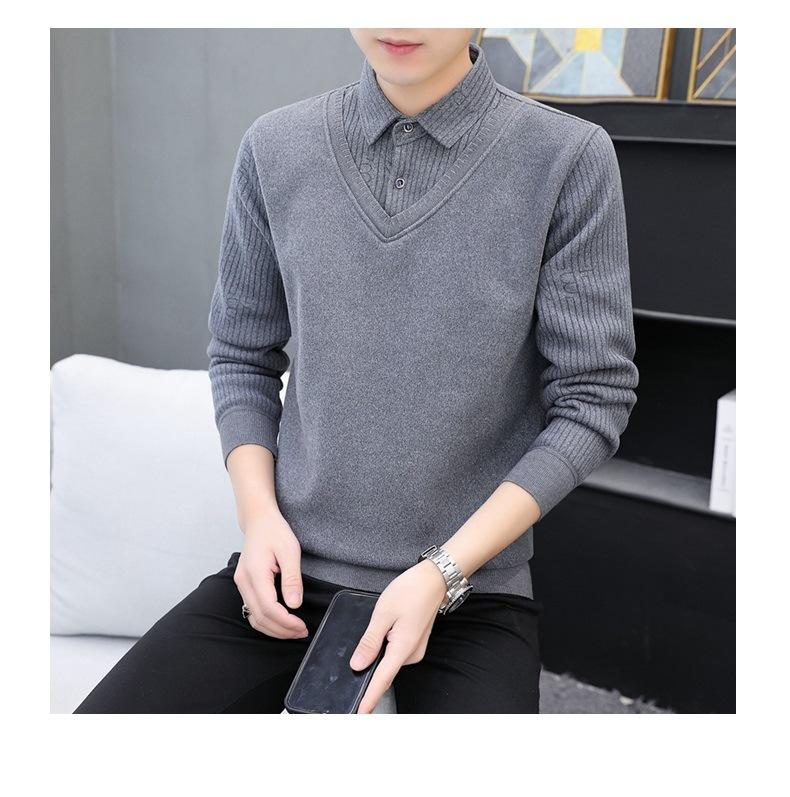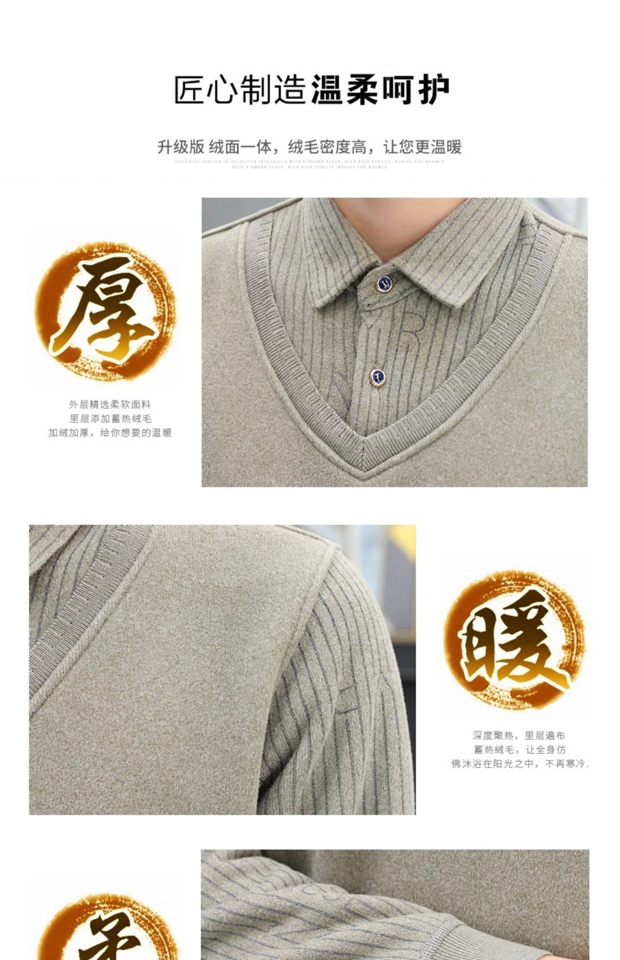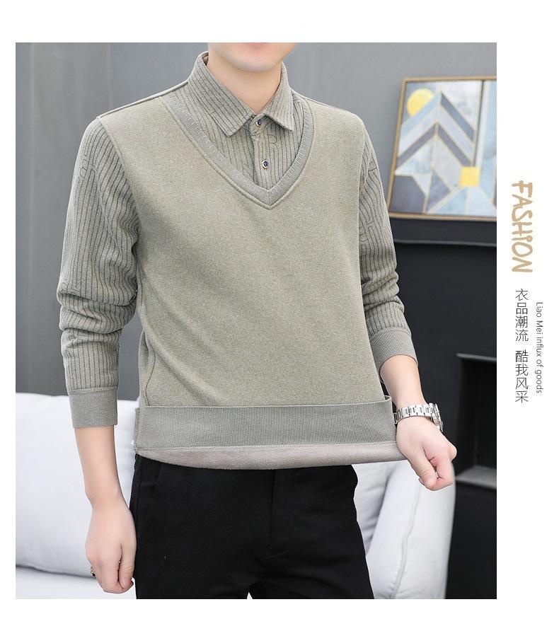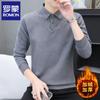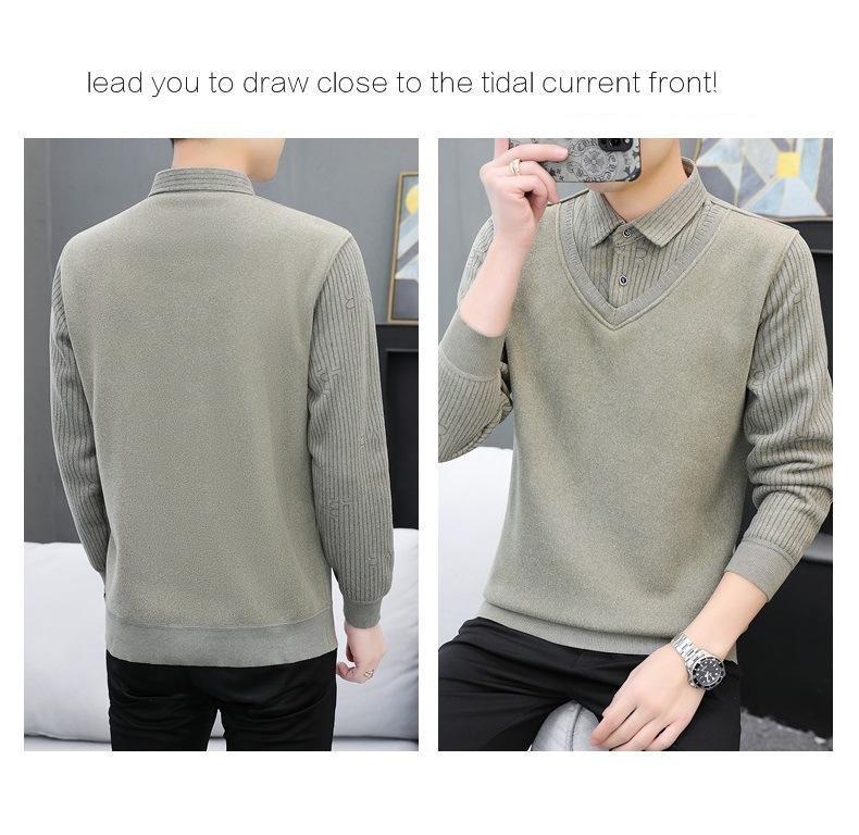 Suéter Grueso de Terciopelo Luo Meng para Hombre Camisa de Punto de Fondo Falsa de Dos Piezas 2025 Nueva Otoño e Invierno Cuello de Camisa para Heattech y Explosión