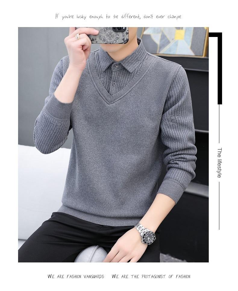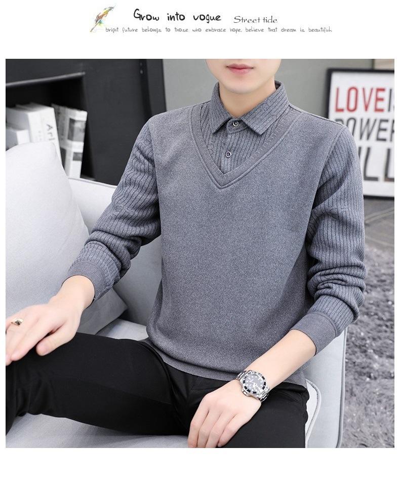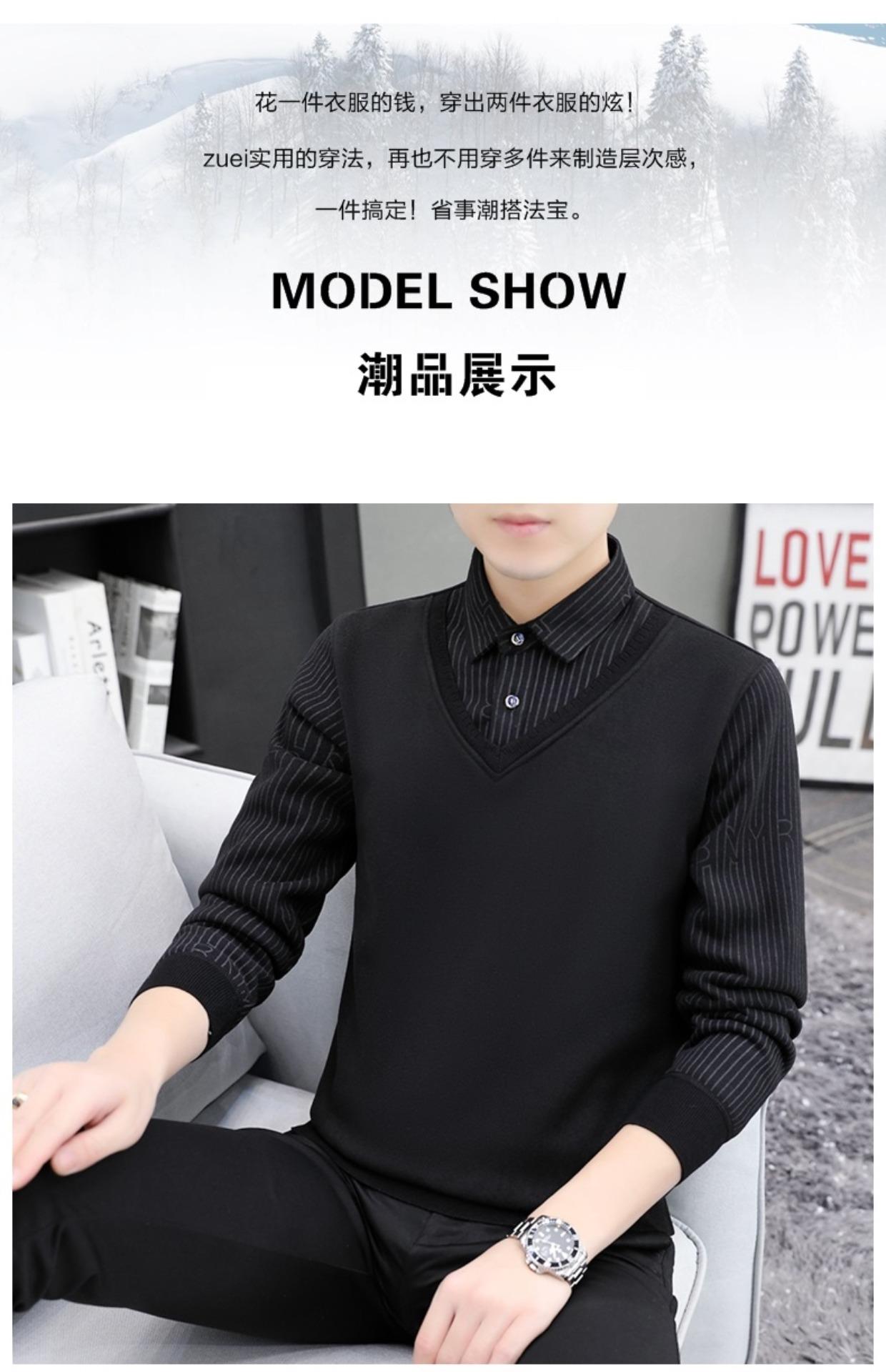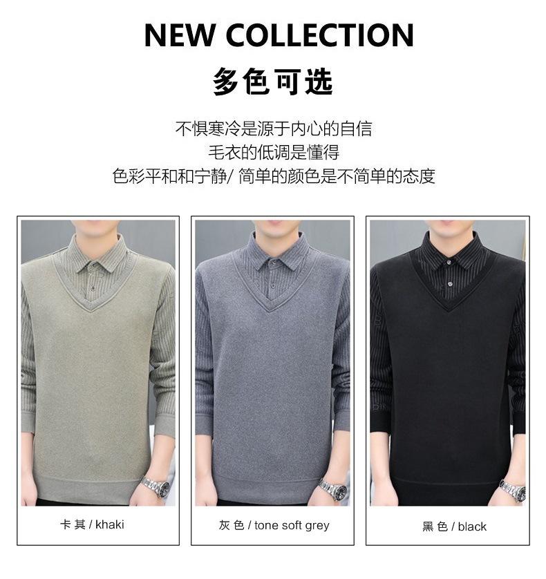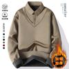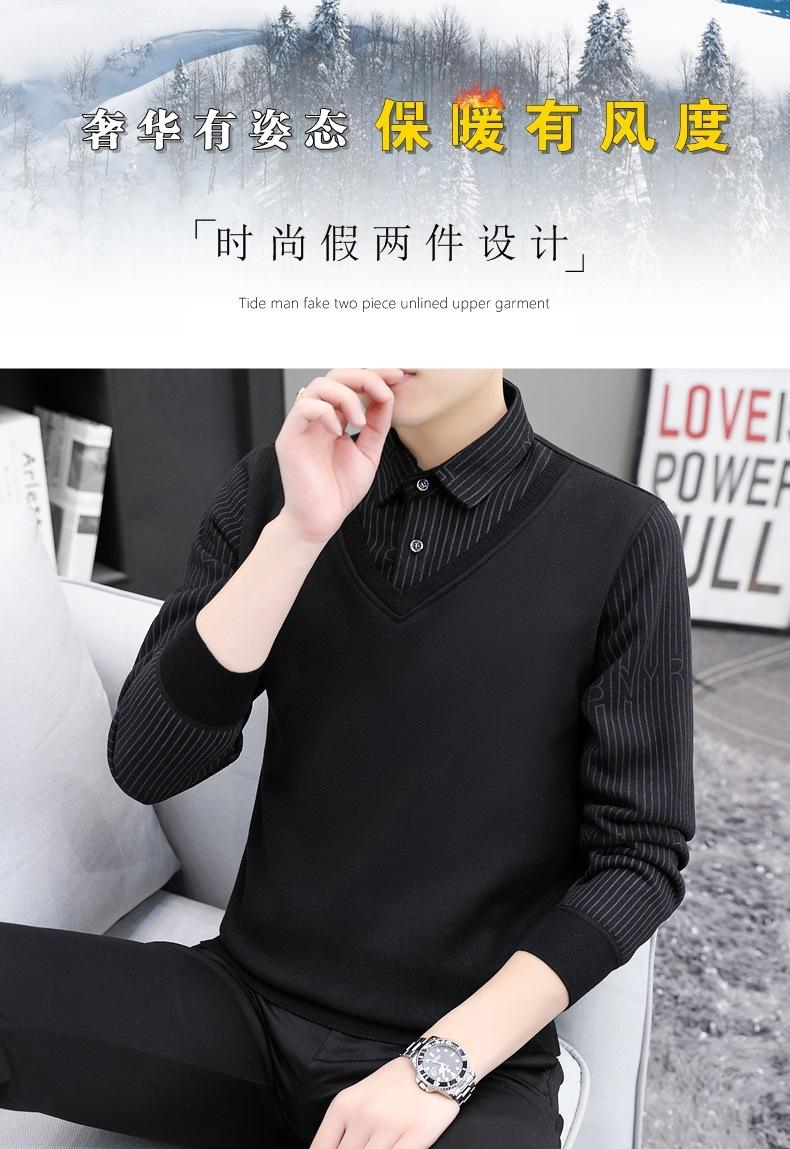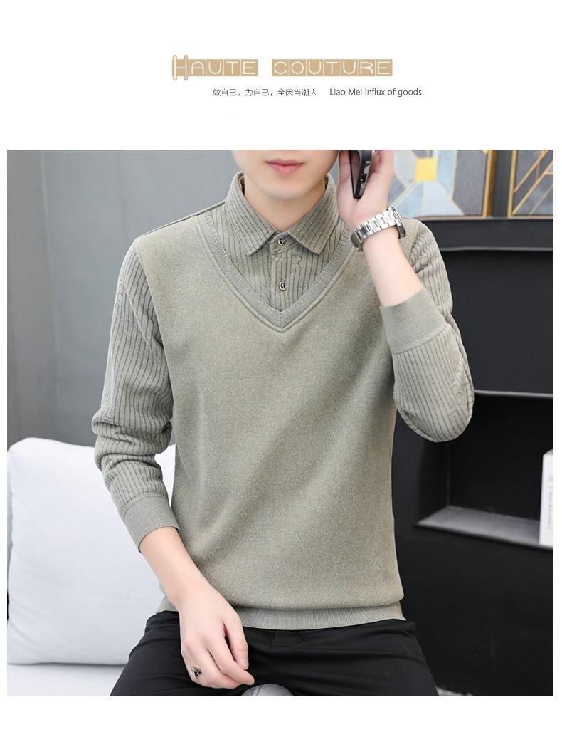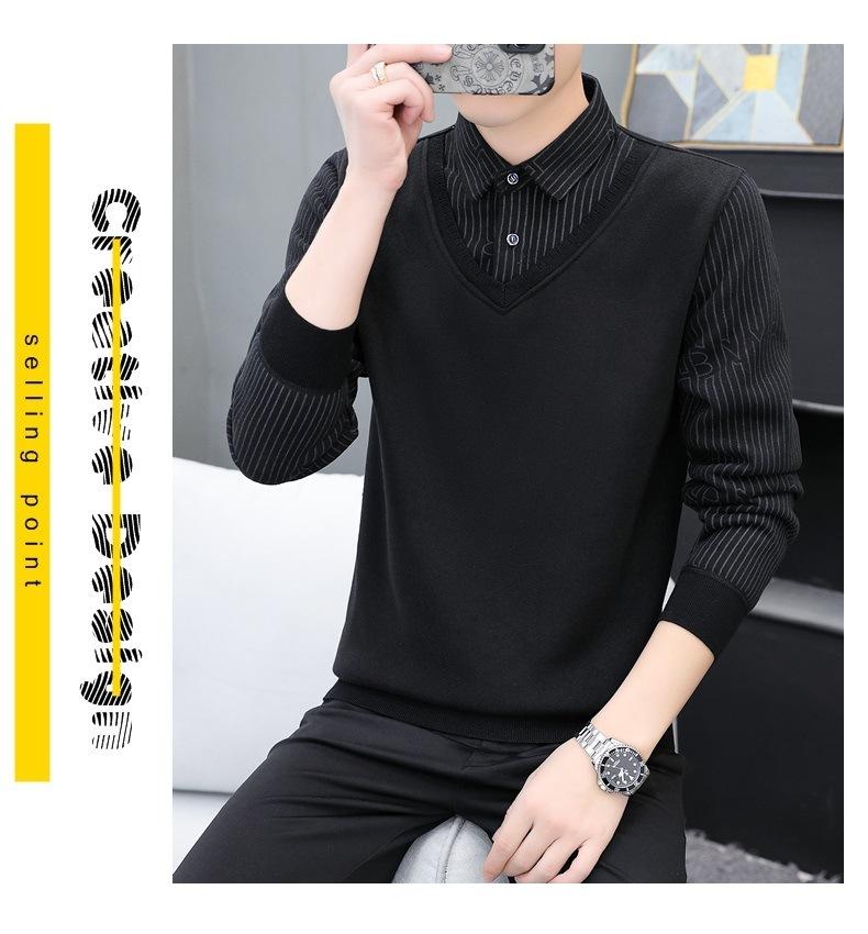 Suéter Grueso de Terciopelo Luo Meng para Hombre Camisa de Punto de Fondo Falsa de Dos Piezas 2025 Nueva Otoño e Invierno Cuello de Camisa para Heattech y Explosión