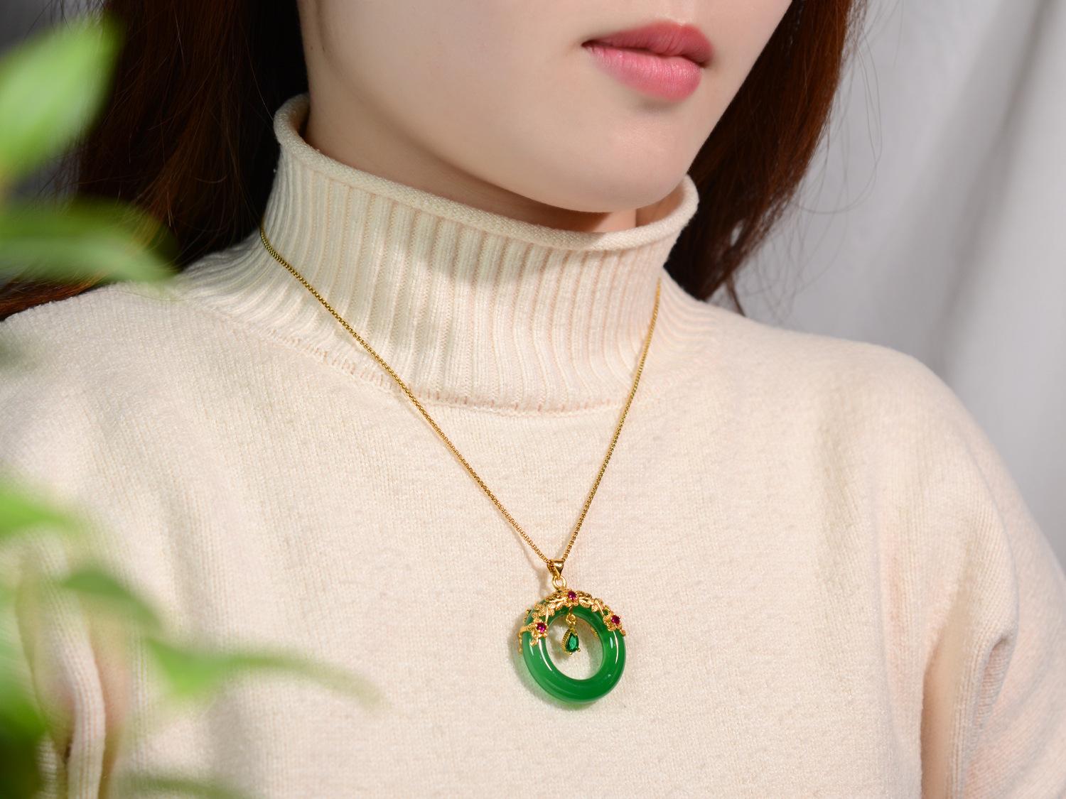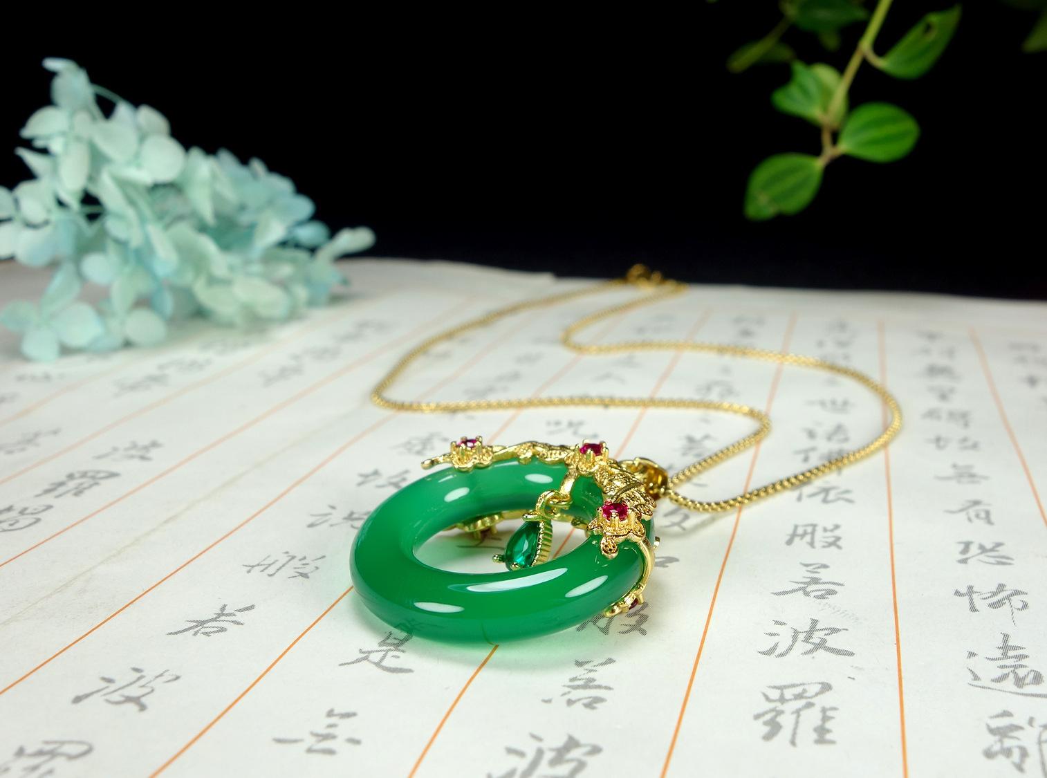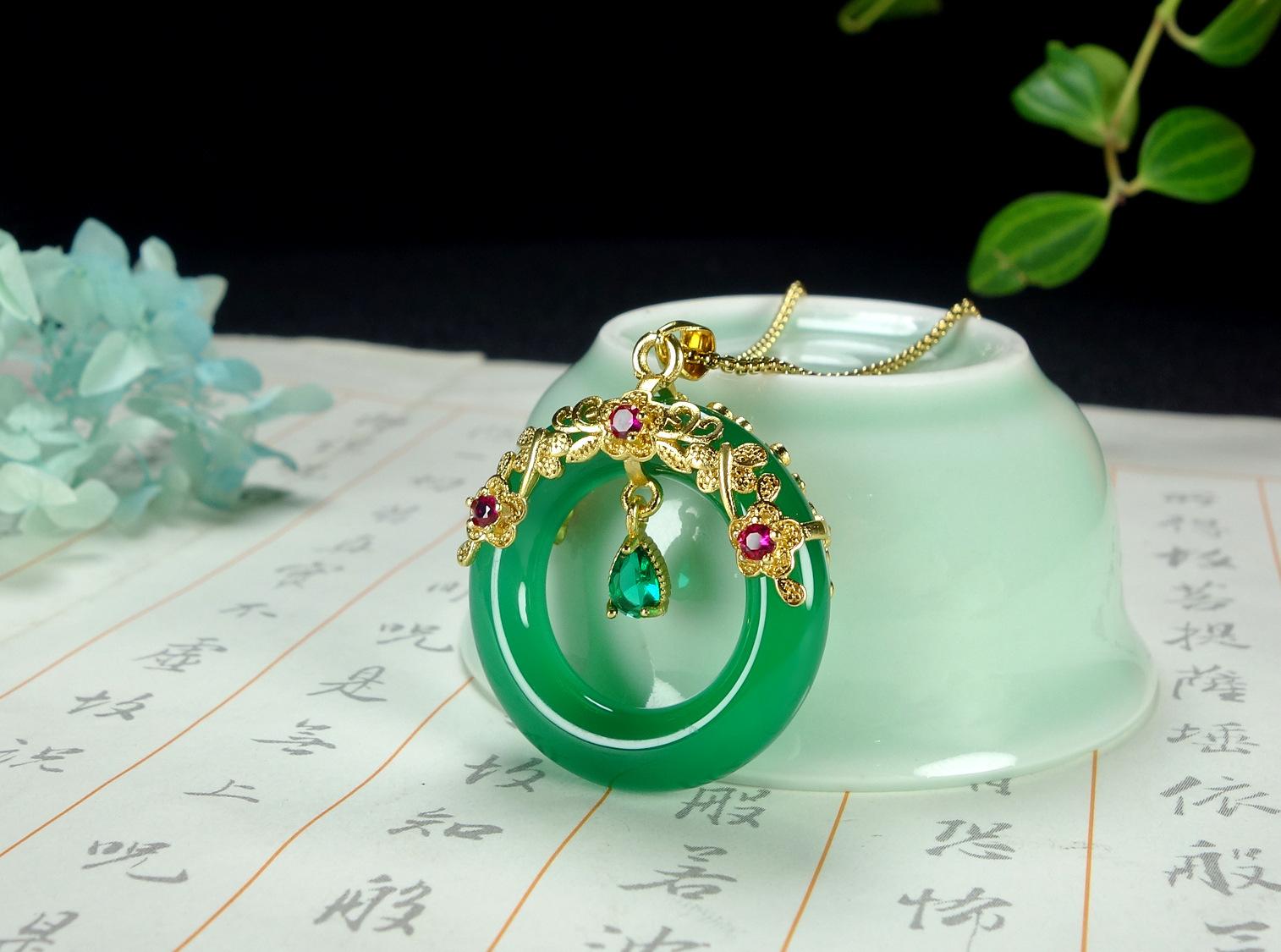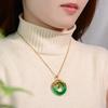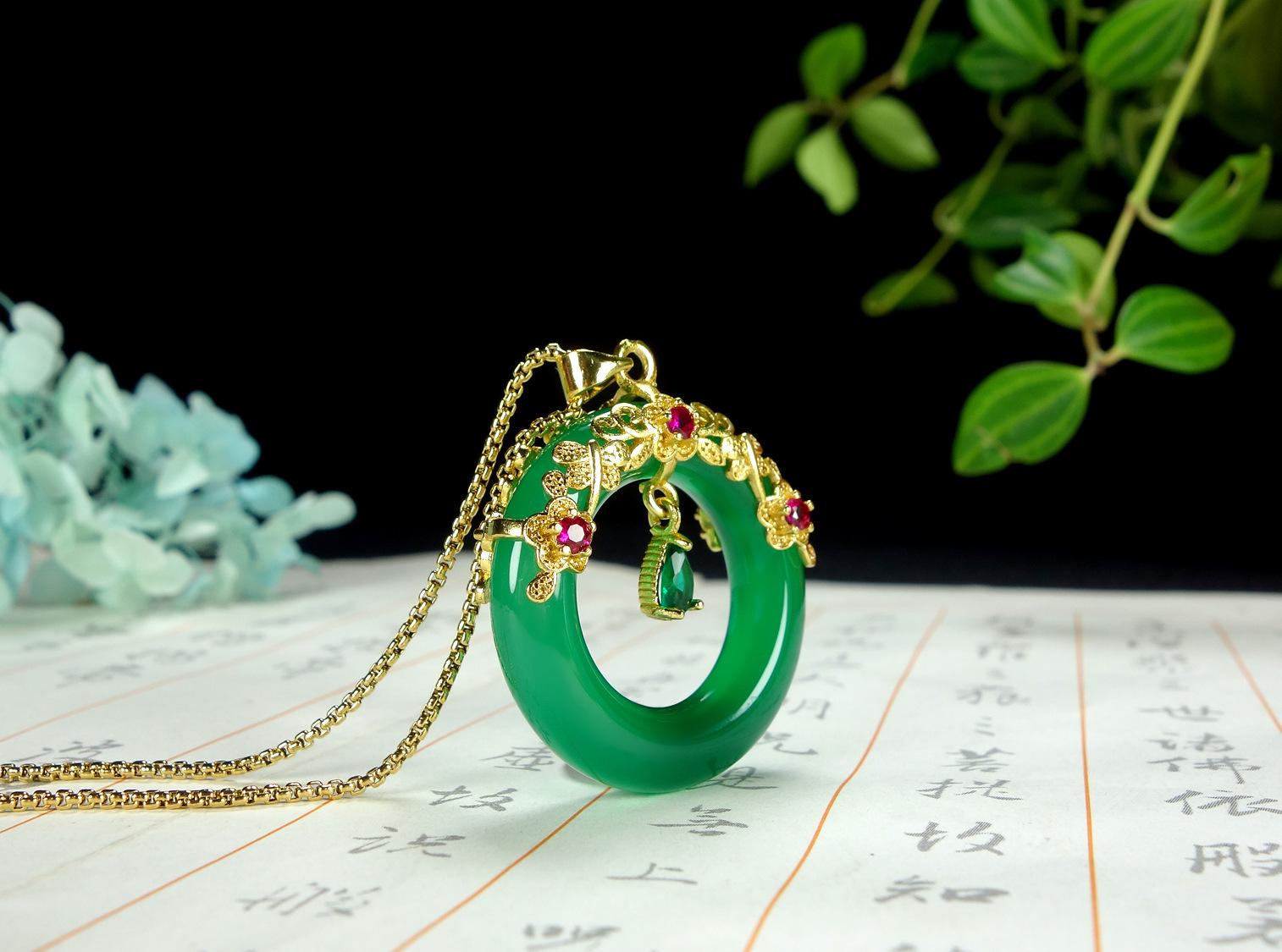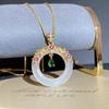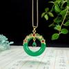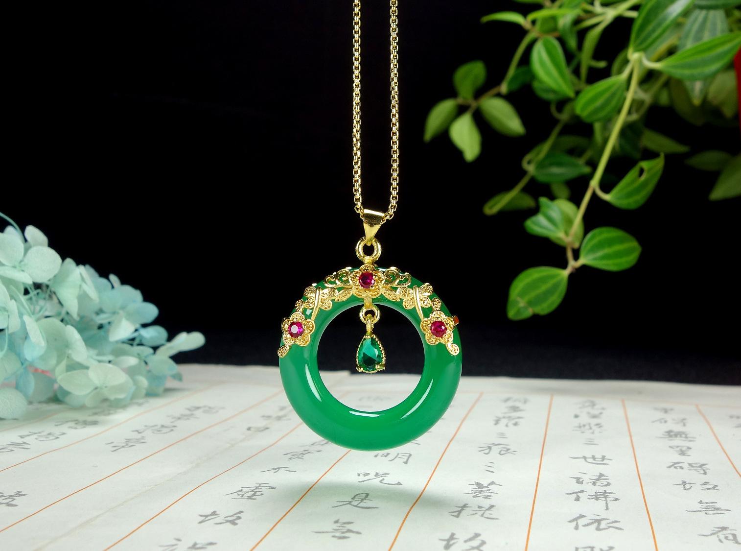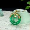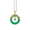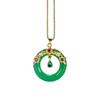 Colgante de calcedonia de estilo étnico con incrustaciones de hebilla de anillo verde, ágata verde, colgante de hebilla de paz de hielo alto, joyería, collar colgante