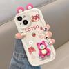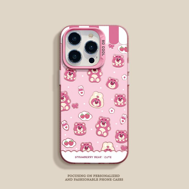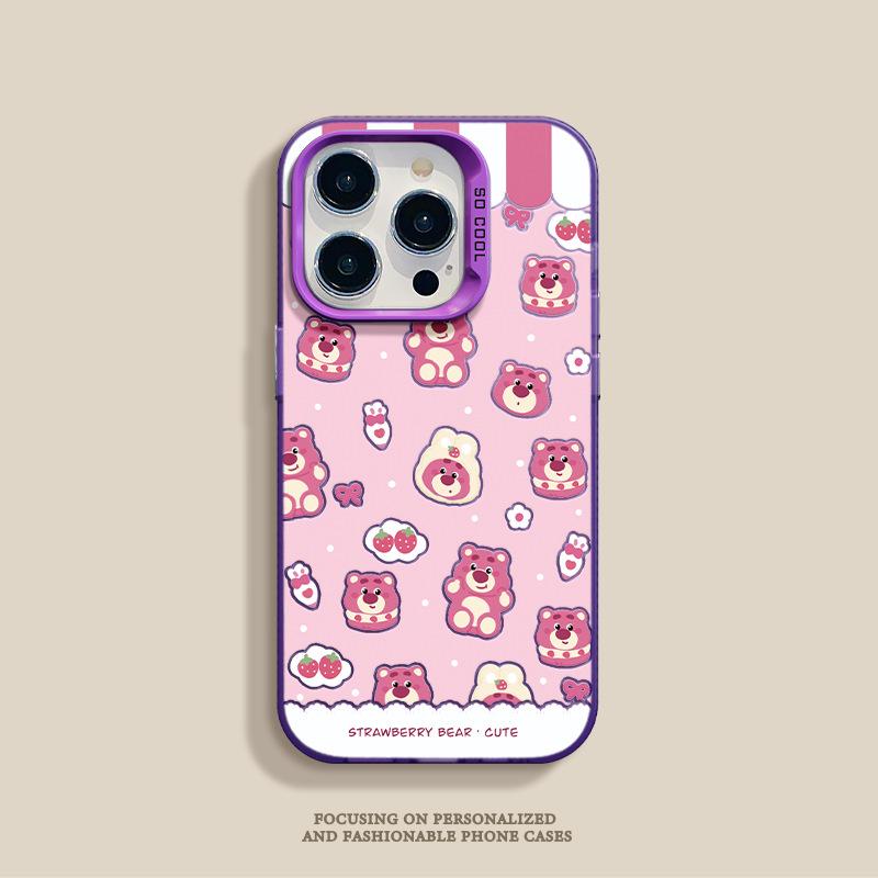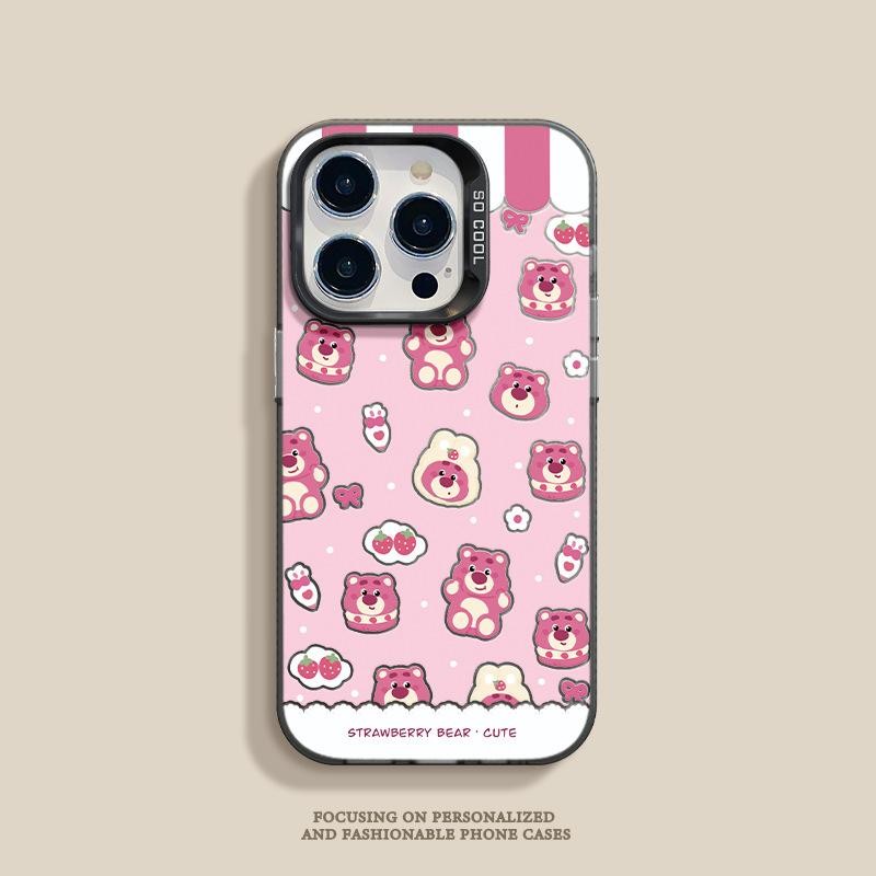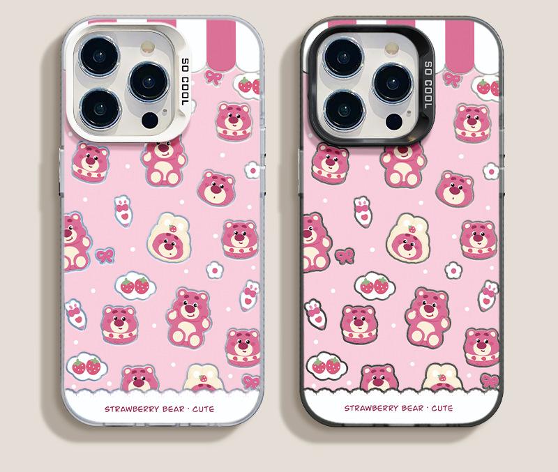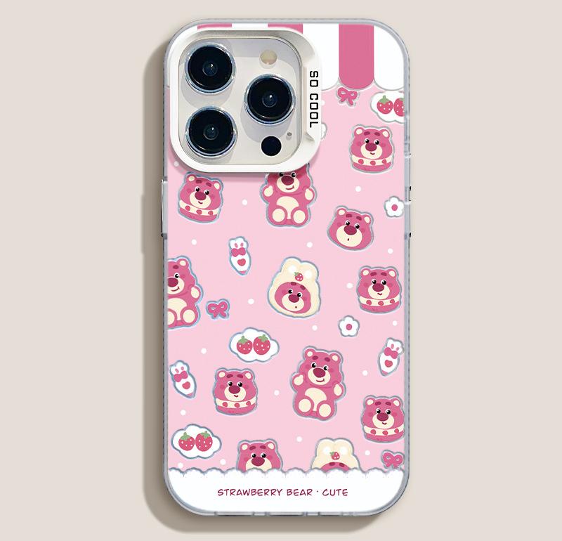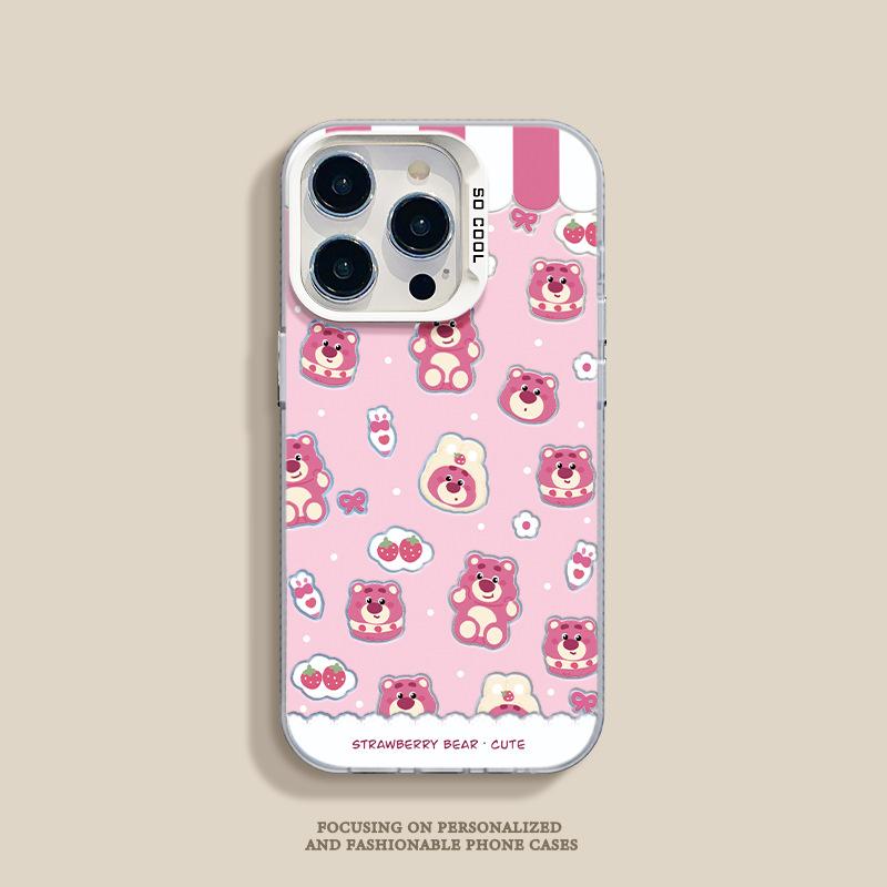 Funda para teléfono móvil Huawei Xiaomi con diseño de muñeco plateado de color fresa y oso para Apple 16/15Pro y 14Pro Max