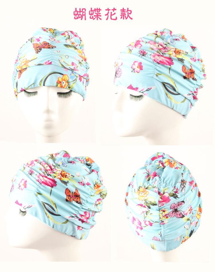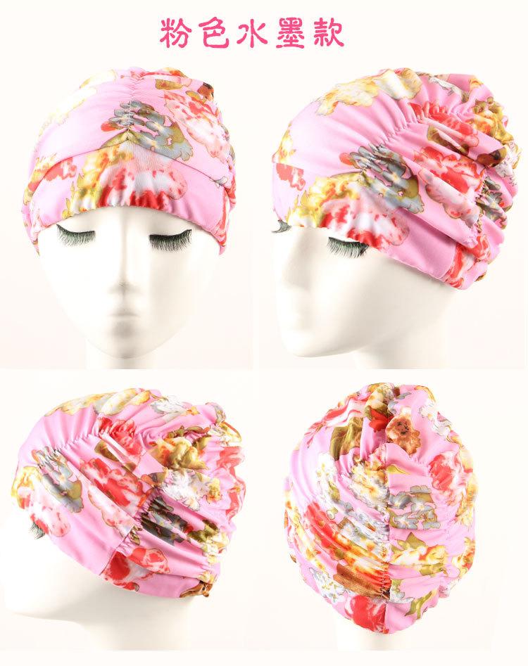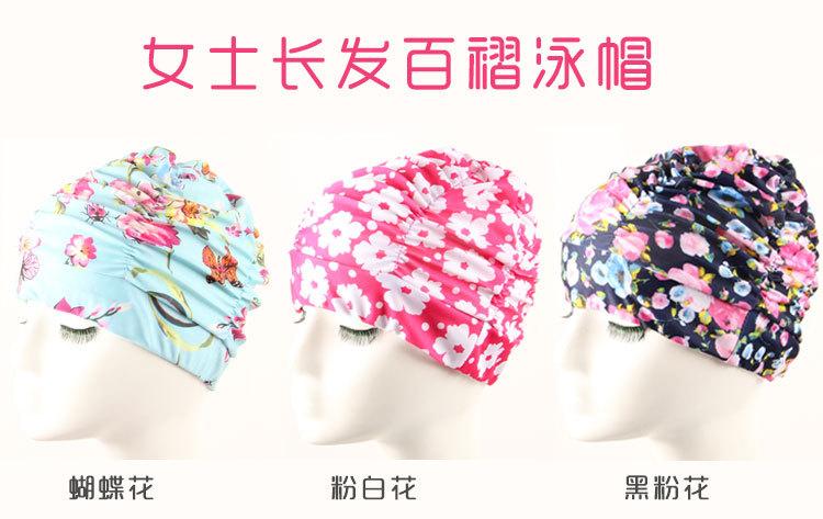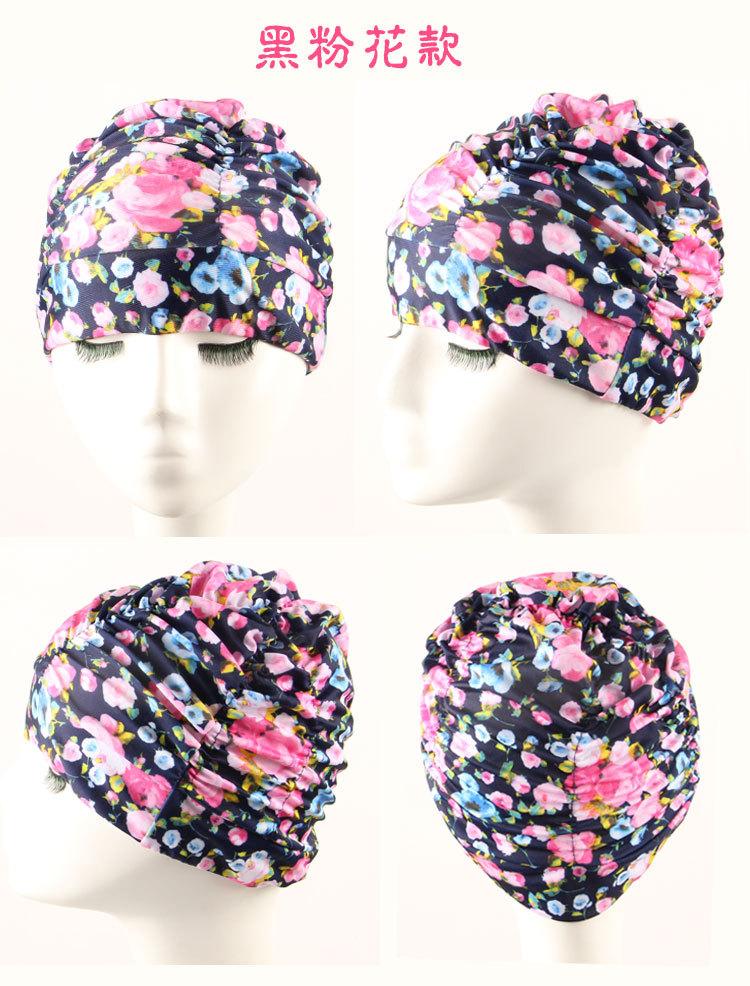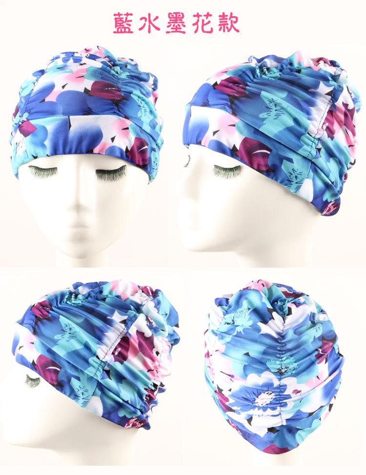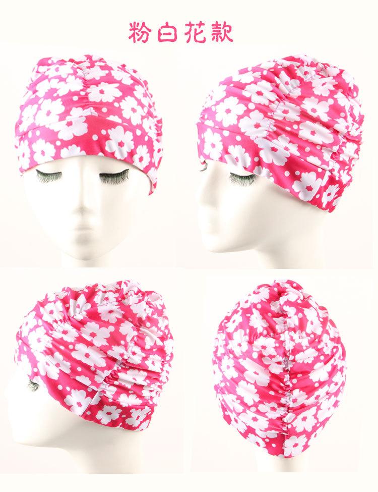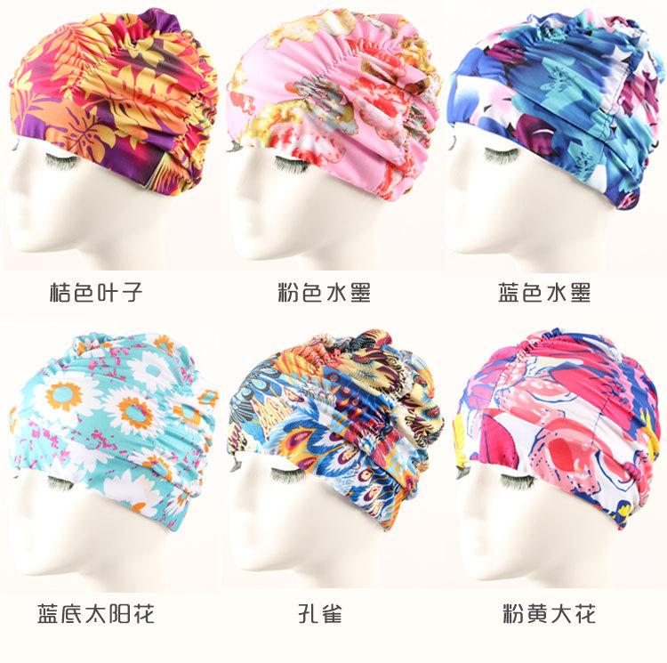 Gorro de natación de tela plisada con protección para las orejas para cabello largo, gorro de natación para mujer, gorro de natación de color para adultos con cabeza grande, gorro de tela