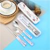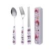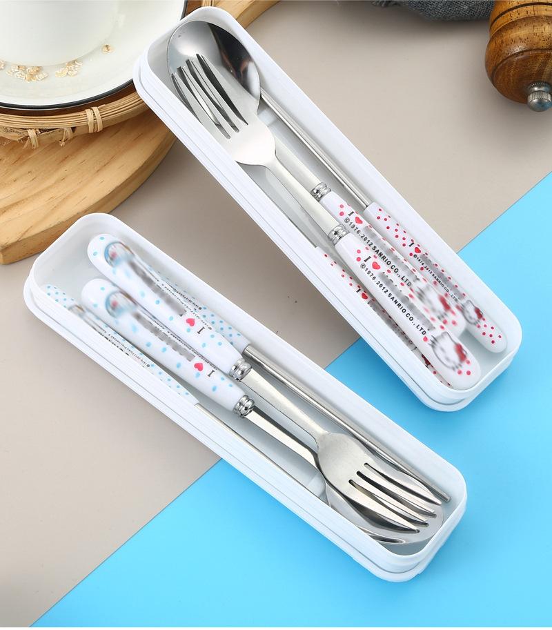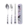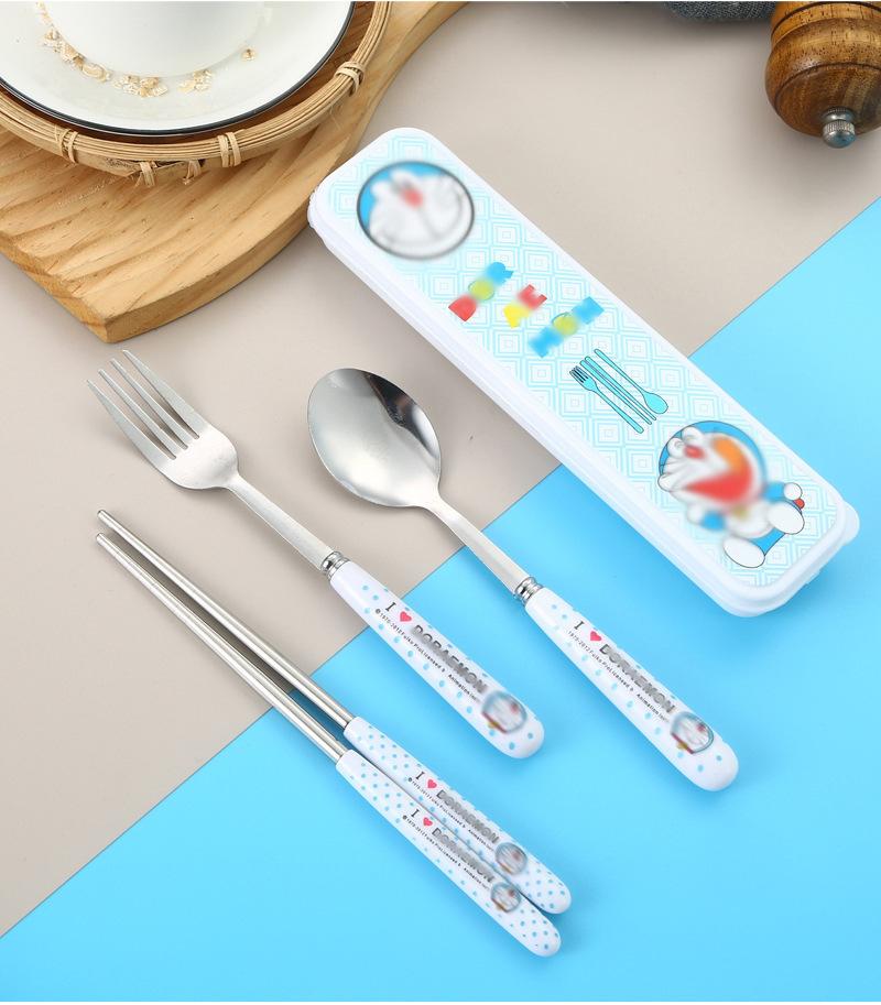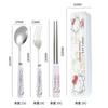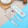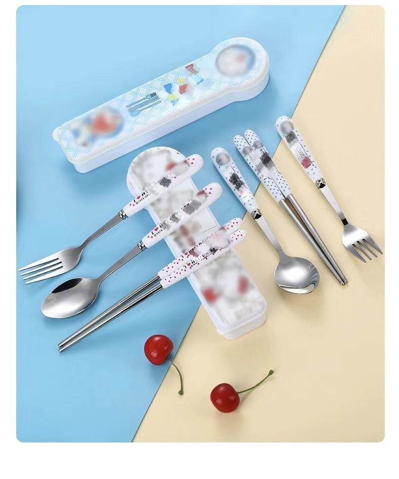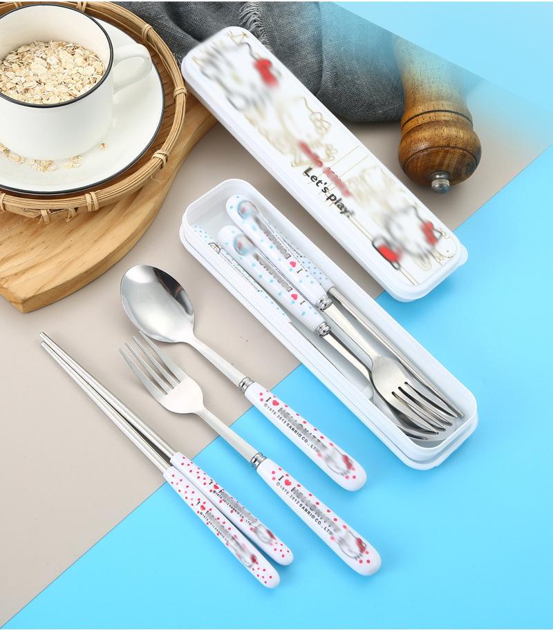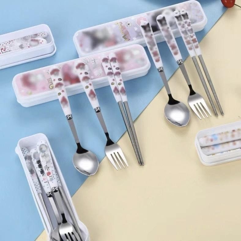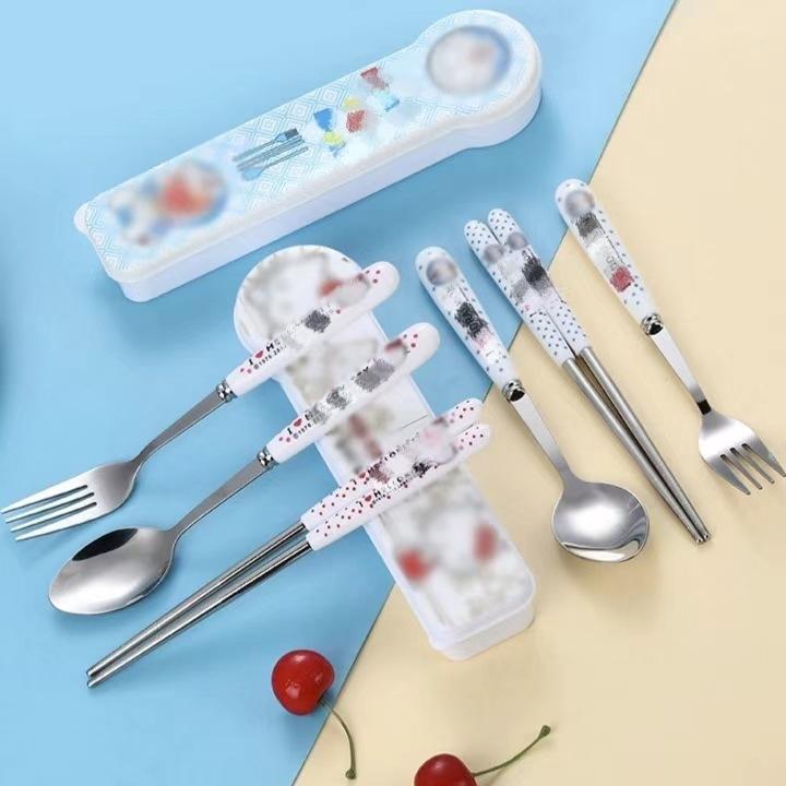 Juego de tres piezas de tenedor, cuchara y palillos de acero inoxidable con dibujos animados, de alto valor en color, para estudiantes de oficina, vajilla portátil popular en Internet.