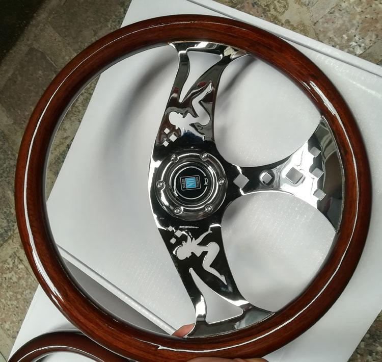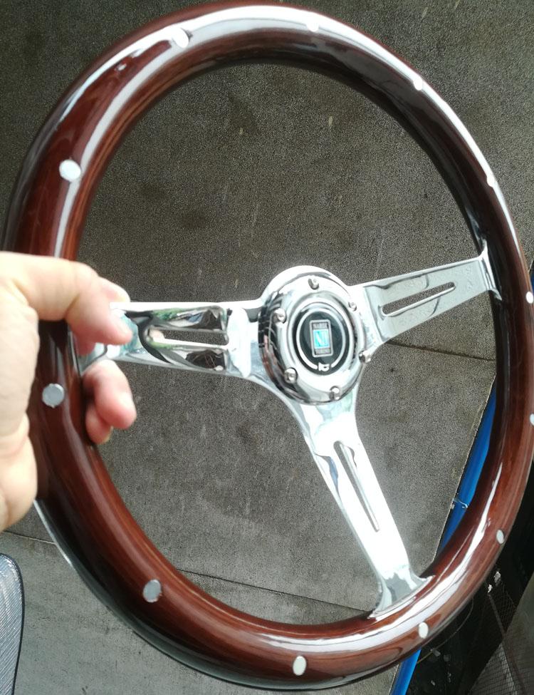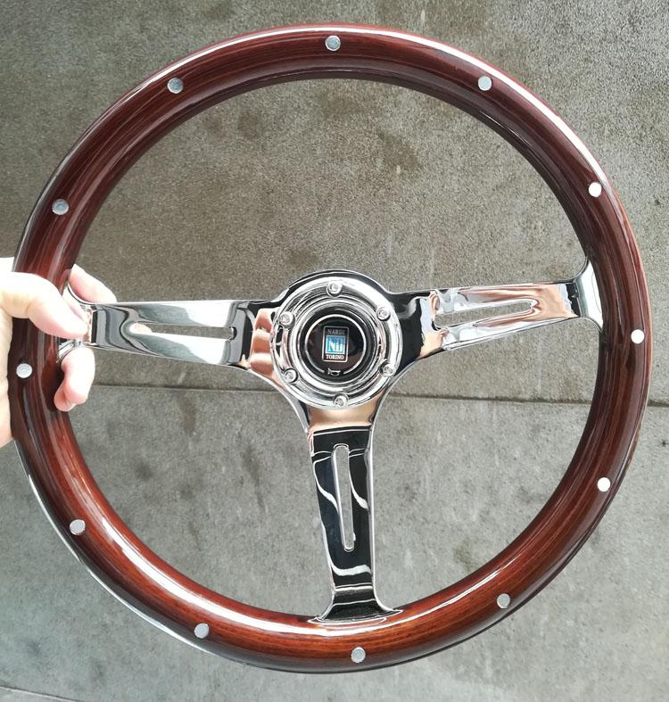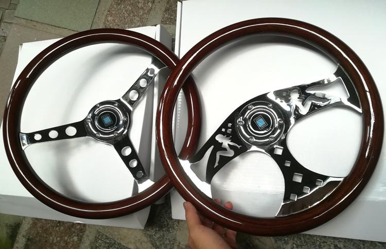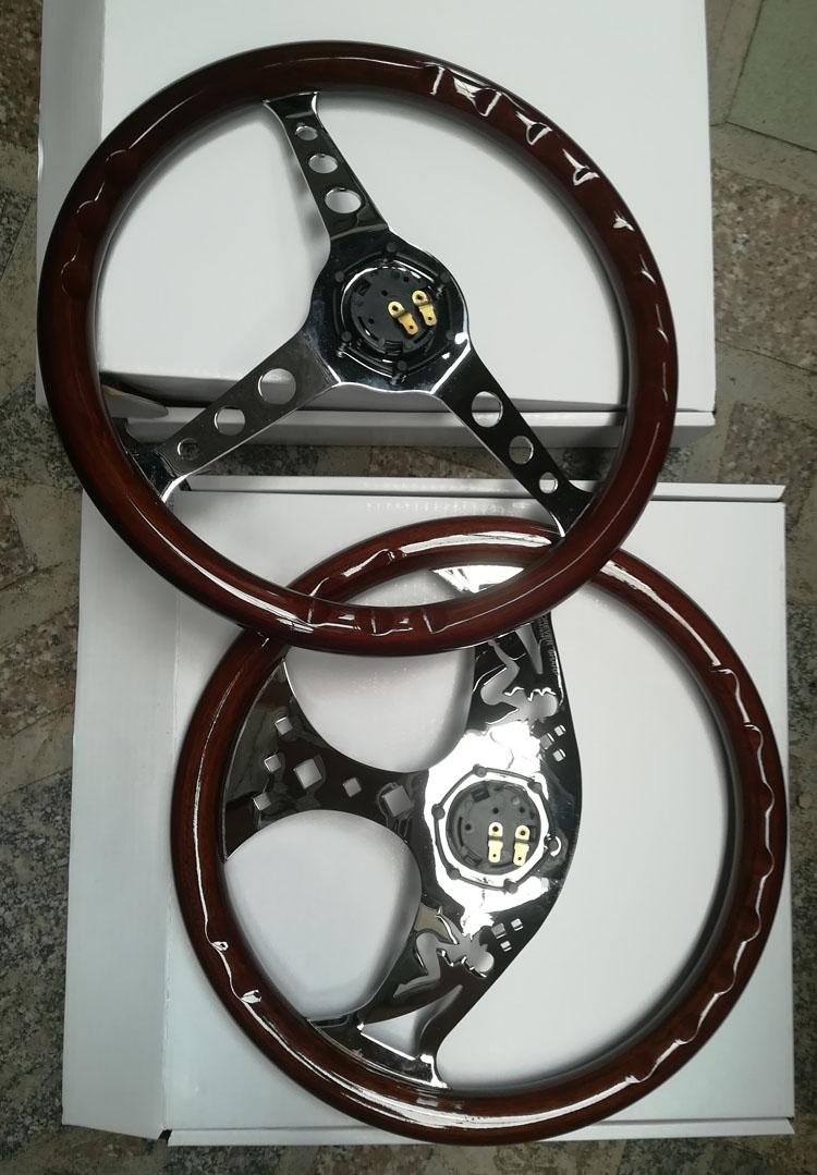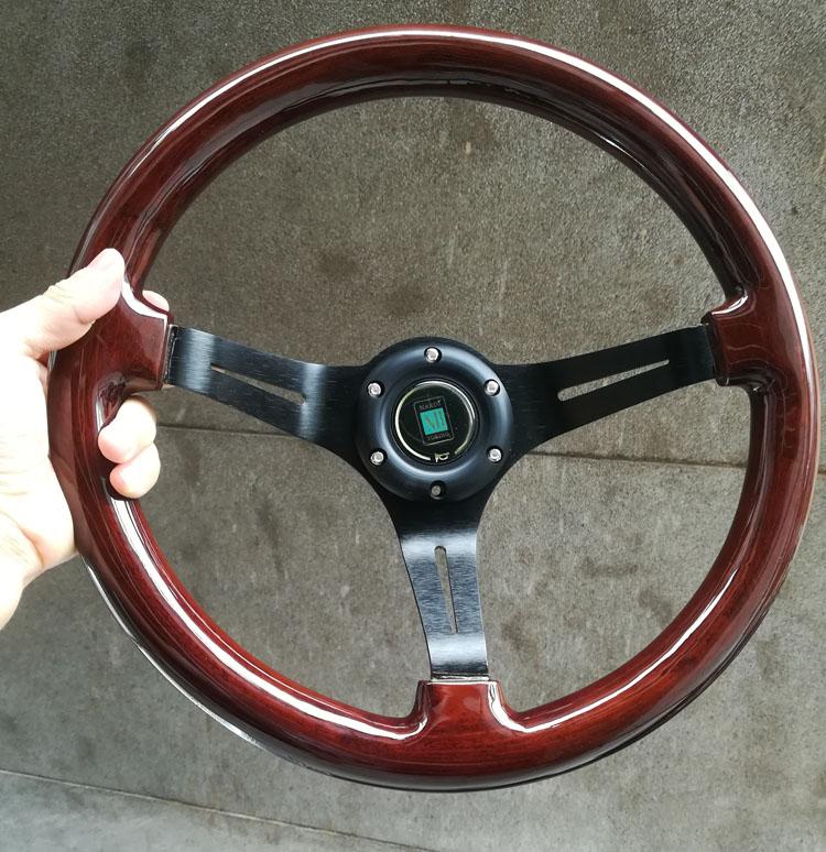 Volante modificado, el cuerpo del volante está hecho de madera importada, soporte electrochapado, calidad de exportación, sensación de primera clase, modificación HF, retro, modificación estilo VIP, ambiente lujoso, el volante mide 14 pulgadas de diámetro 35 cm, 15 pulgadas mide 38 cm de diámetro (también llamado 16 pulgadas) y necesita ser combinado con una base modificada. Las diferentes bases tienen diferentes precios. Consulte al servicio de atención al cliente o encuéntrelo en la tienda.