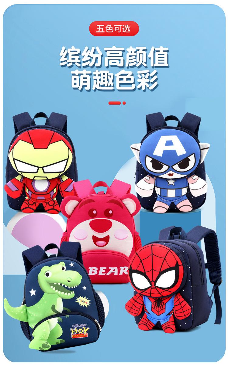 Spiderman, Green Dinosaur, Strawberry Bear, Captain America, Iron Man