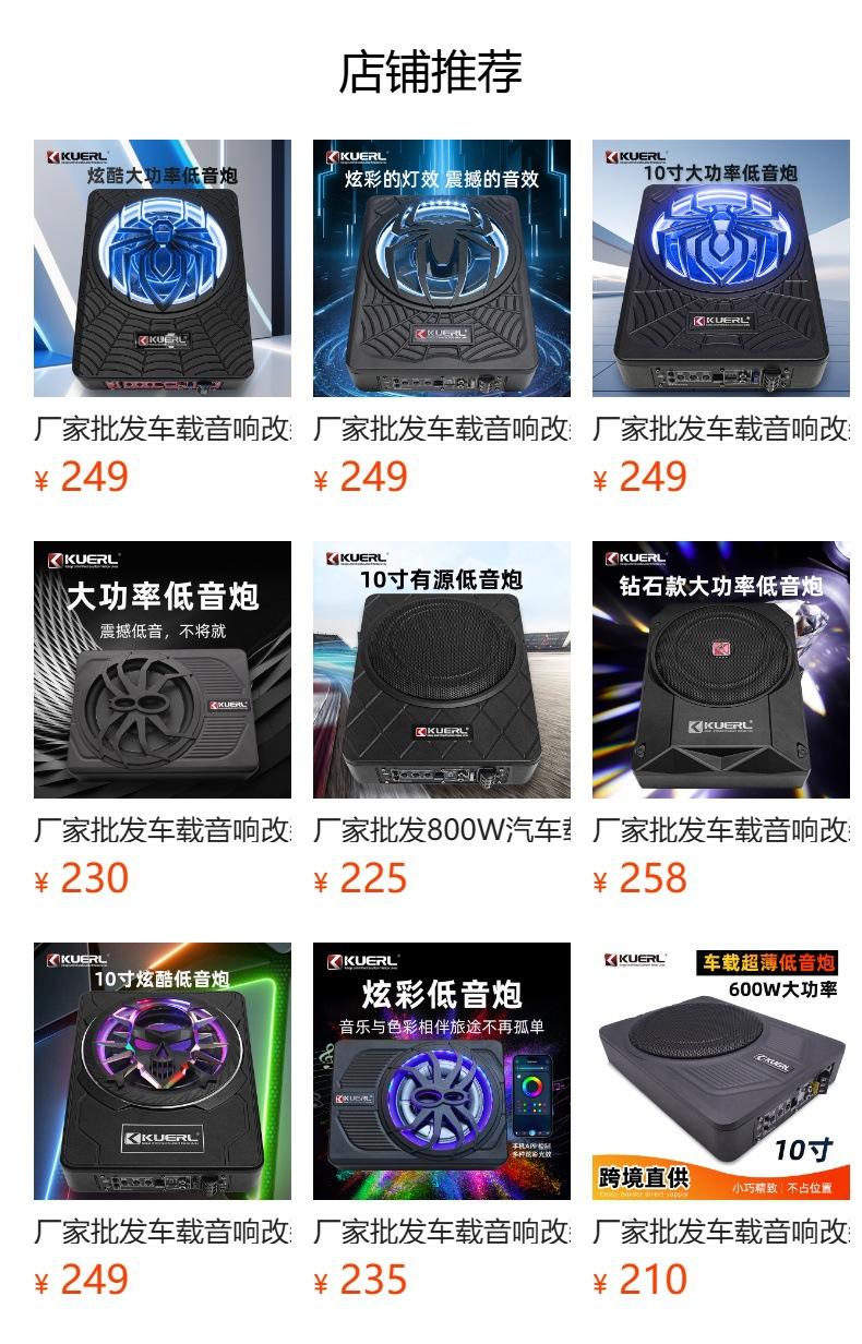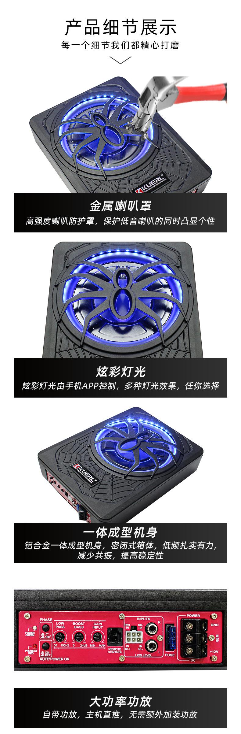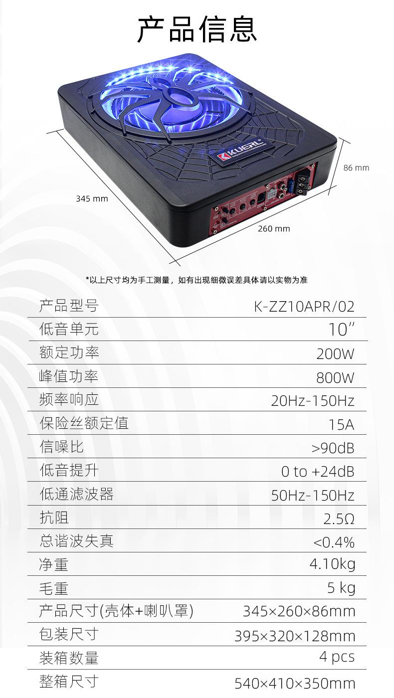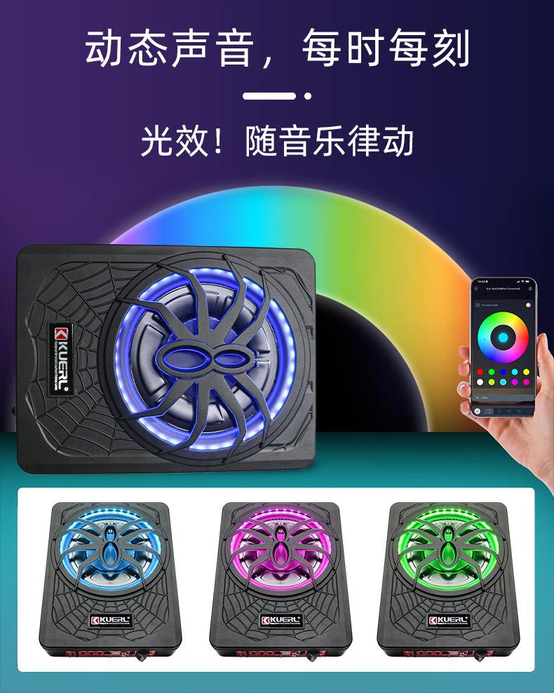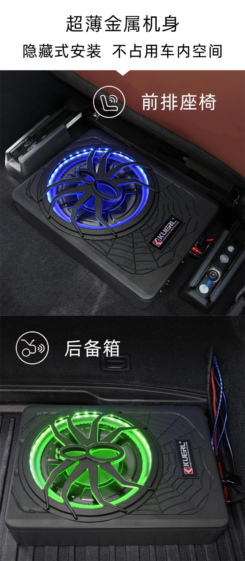 Subwoofer activo para coche de alta potencia de 10 pulgadas, araña modificada para audio de coche al por mayor de fábrica con luces, ultradelgado