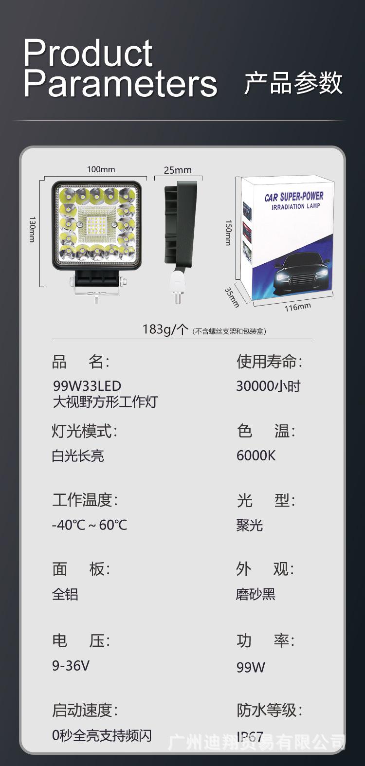 Luz de Trabajo Cross-Mirror 4 pulgadas Vehículo Todoterreno Modificado Luz de Inspección Amplio Campo de Visión 41 LED Foco 123W Auxiliar 3 Impermeable