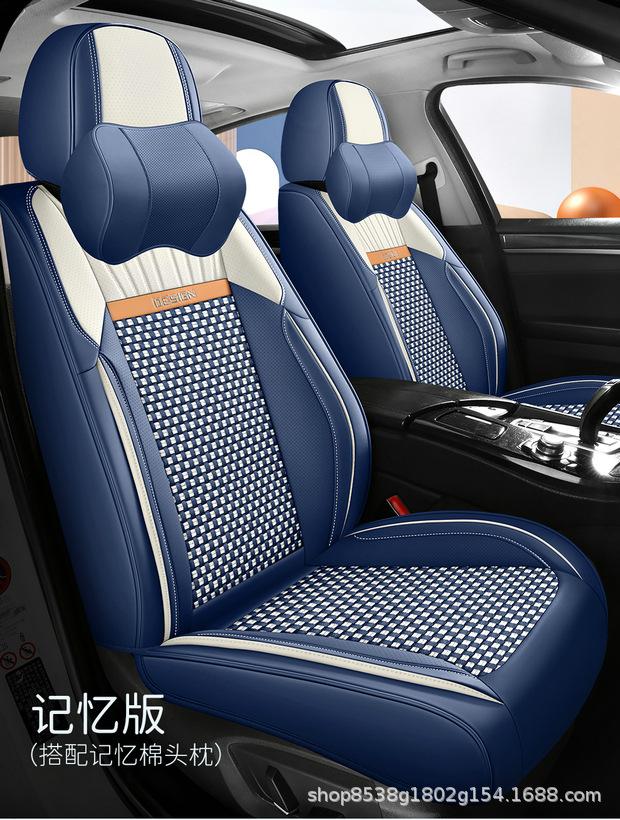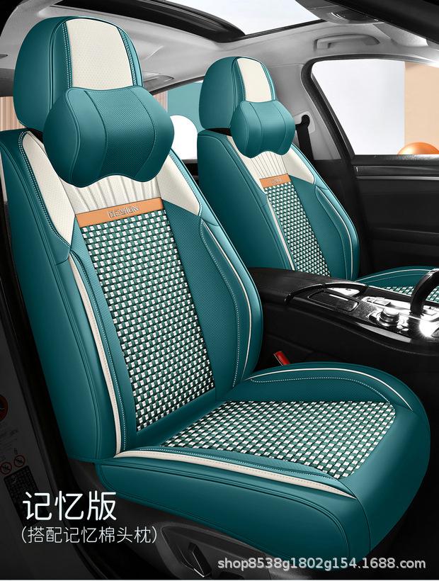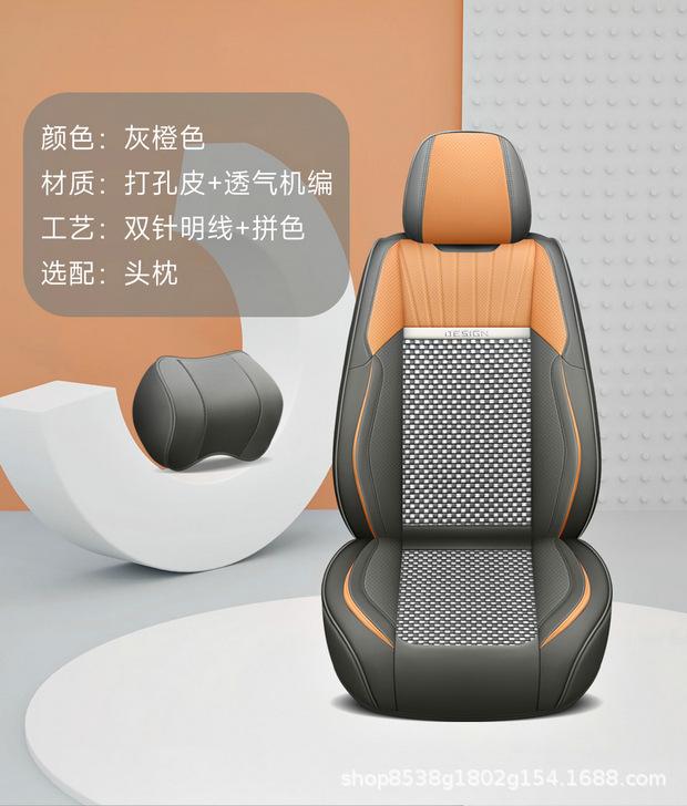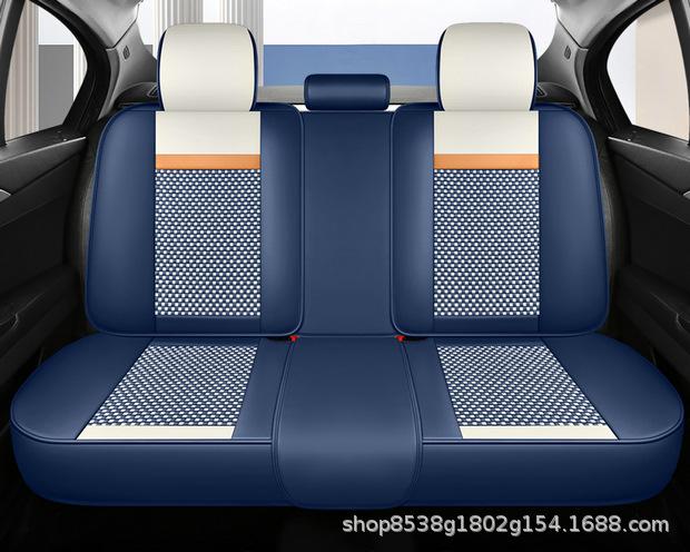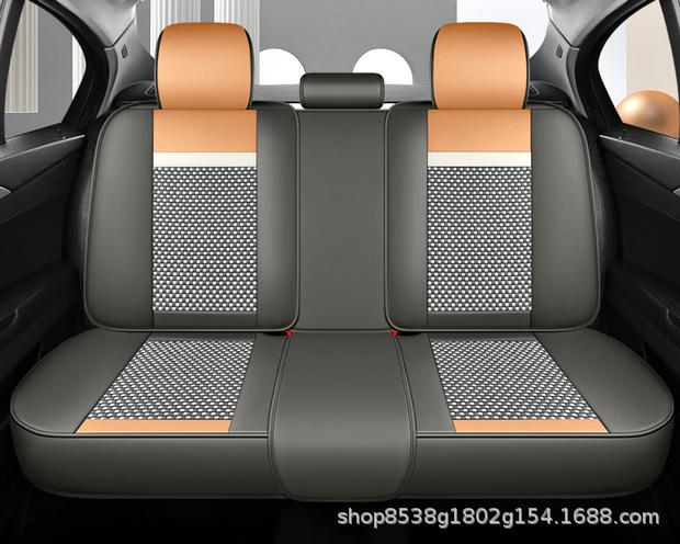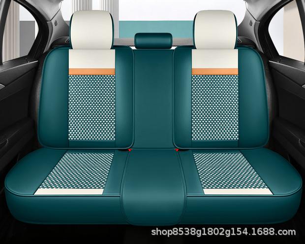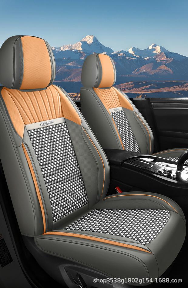 Cojín para Asiento de Coche Cojín de Asiento Especial de Cinco Asientos Tejido de Malla de Alambre de Hielo de Verano Todo Incluido Cubre Asiento de Cuero Rojo Universal para Todas las Estaciones