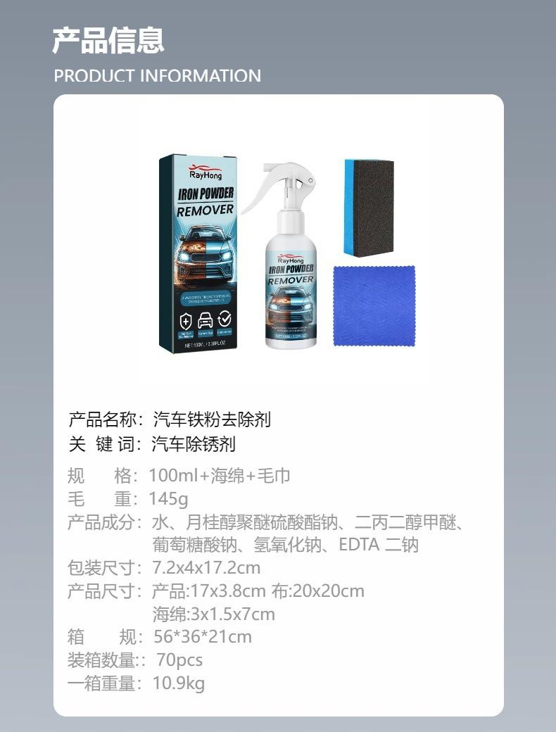 Compra Rayhong removedor de polvo de hierro para coche pintura de coche neumático limpieza de óxido descontaminación y eliminación de óxido agente de reacondicionamiento al por mayor en Joom.pro
