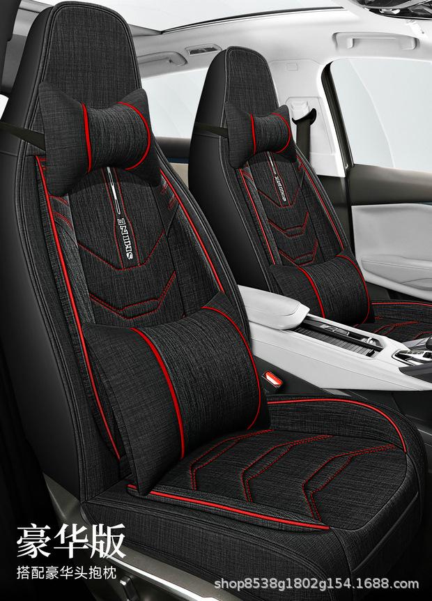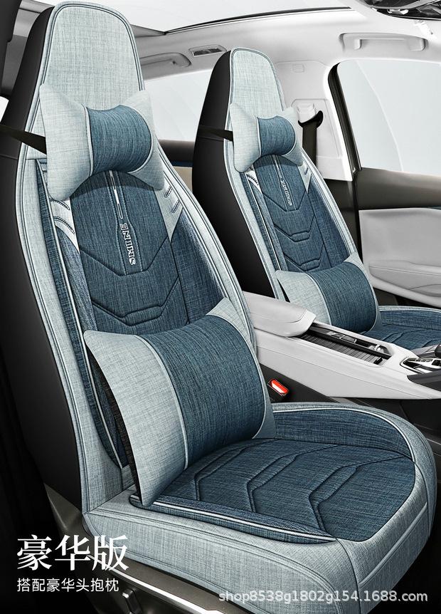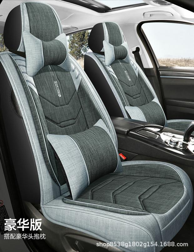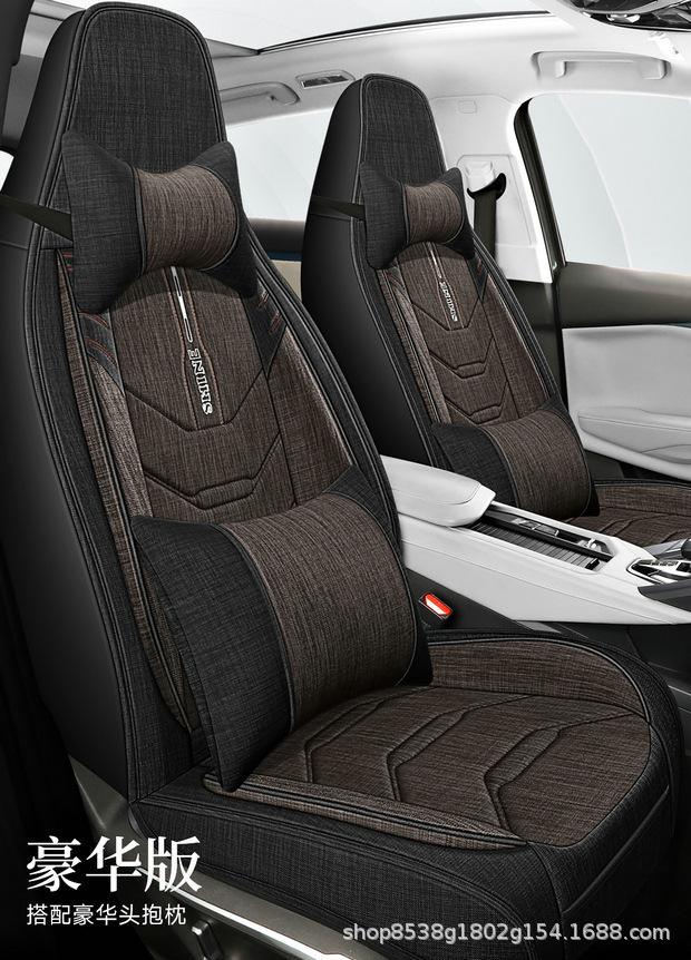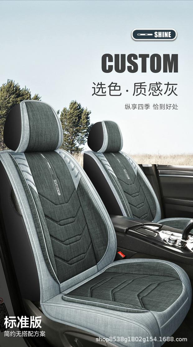 Funda de asiento de coche, cojín de lino nuevo para asiento de coche, funda de asiento de coche para primavera y otoño, cojín de asiento especial de tela con todo incluido, universal para todas las estaciones.