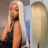 Peluca de comercio exterior de Amazon para mujer, color dorado claro 613, cabello largo y liso, peluca de fibra química, tocado, lote completo