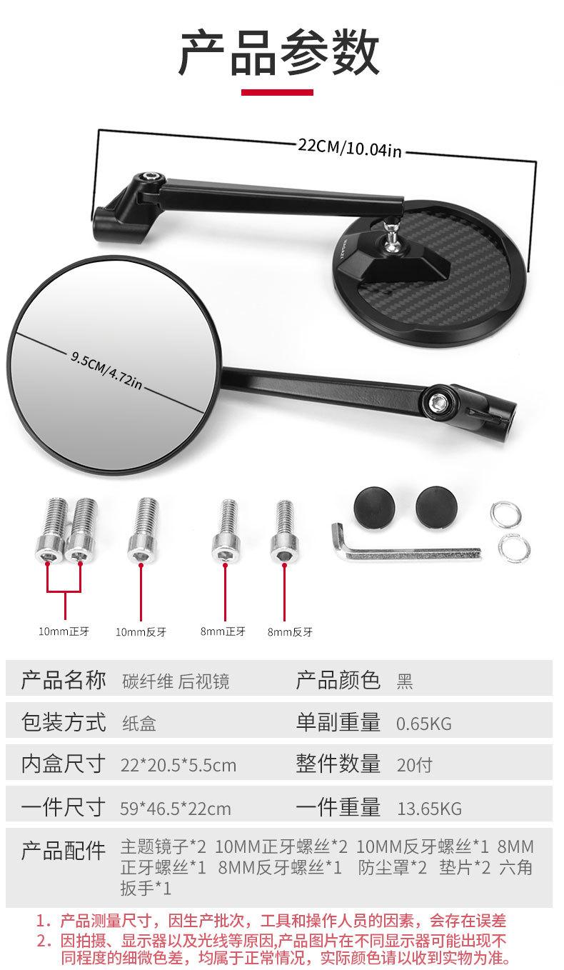 Espejo retrovisor de fibra de carbono para motocicleta MAGAZI, redondo, retro, modificado, universal, para scooter eléctrico