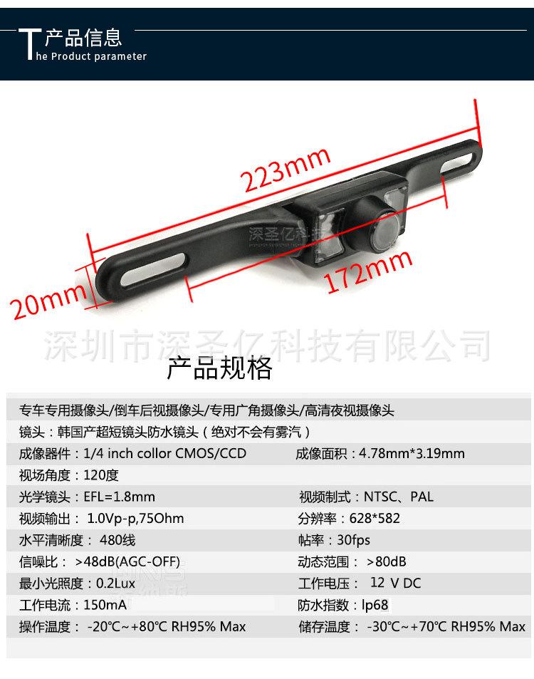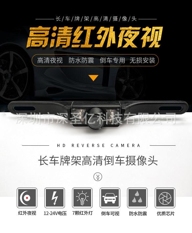 Cámara de marcha atrás con marco de matrícula largo, imagen de marcha atrás de coche HD, luz infrarroja, visión nocturna, imagen de marcha atrás HD, resistente al agua