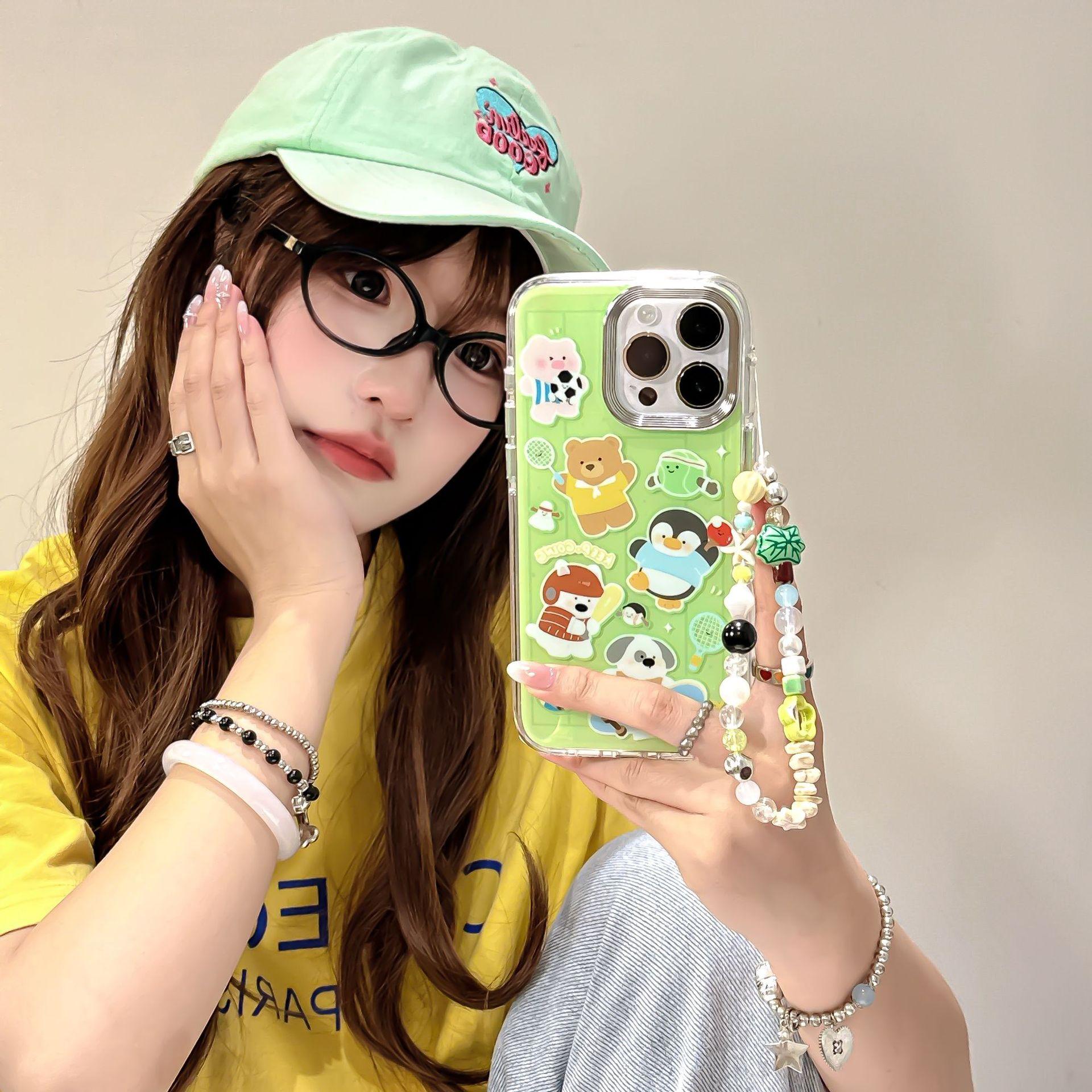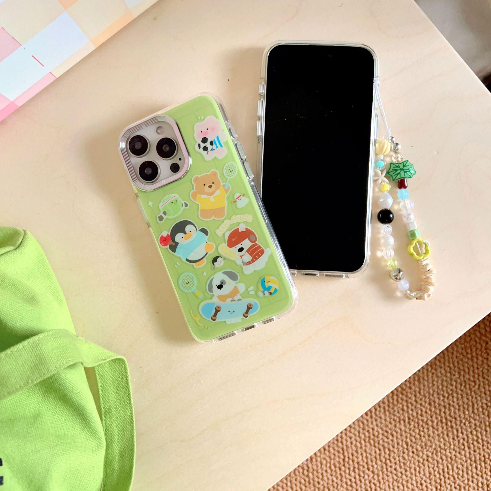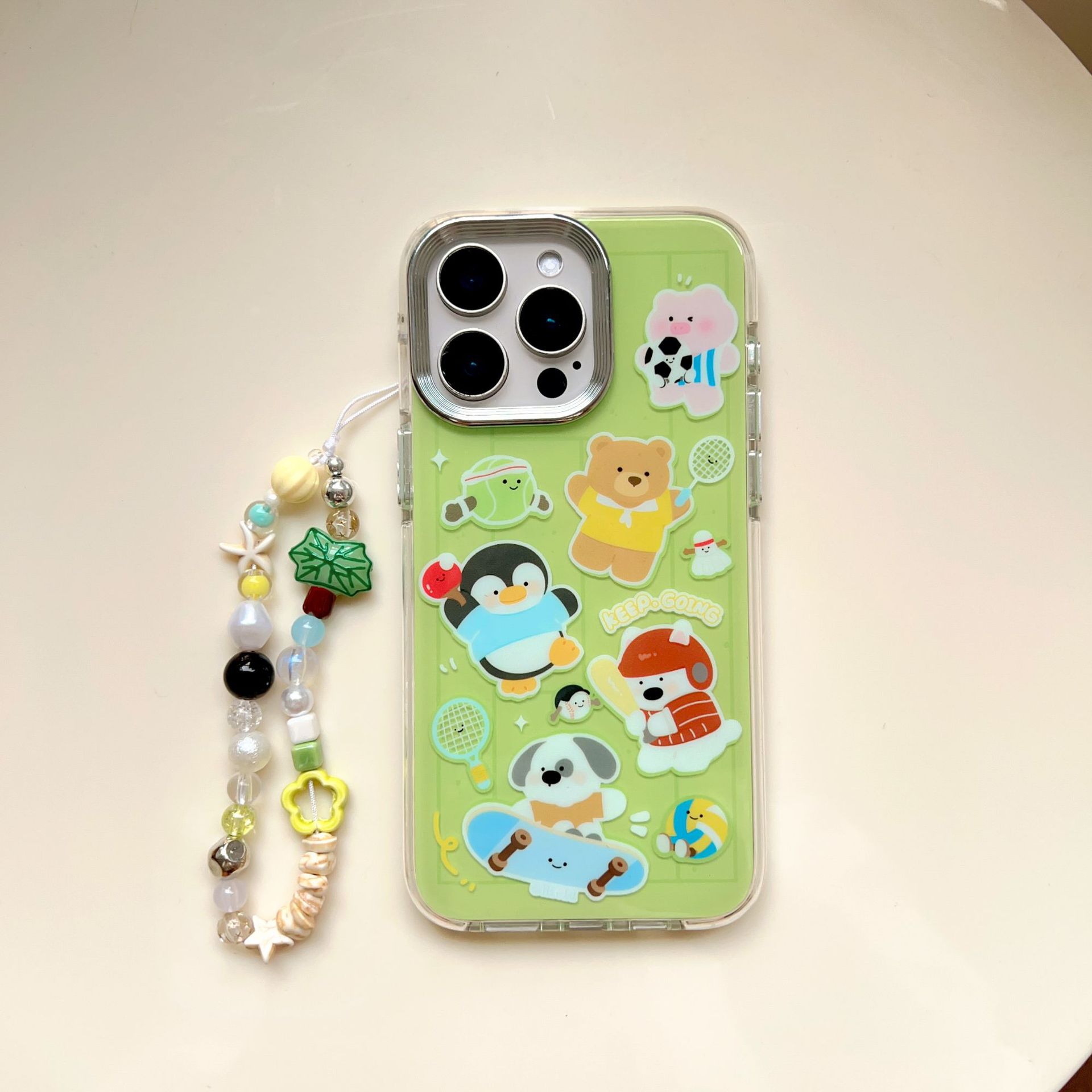 Double-sided imd-green sports penguin, Double-sided imd-green sports penguin + white beads starfish chain