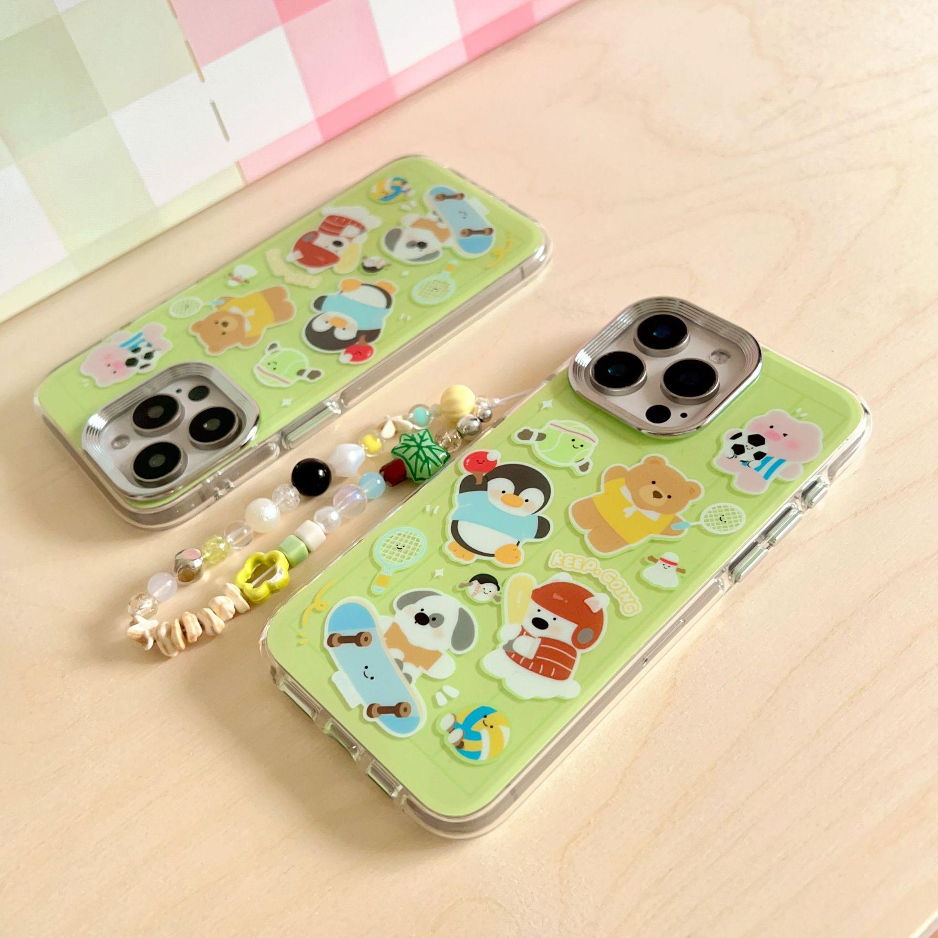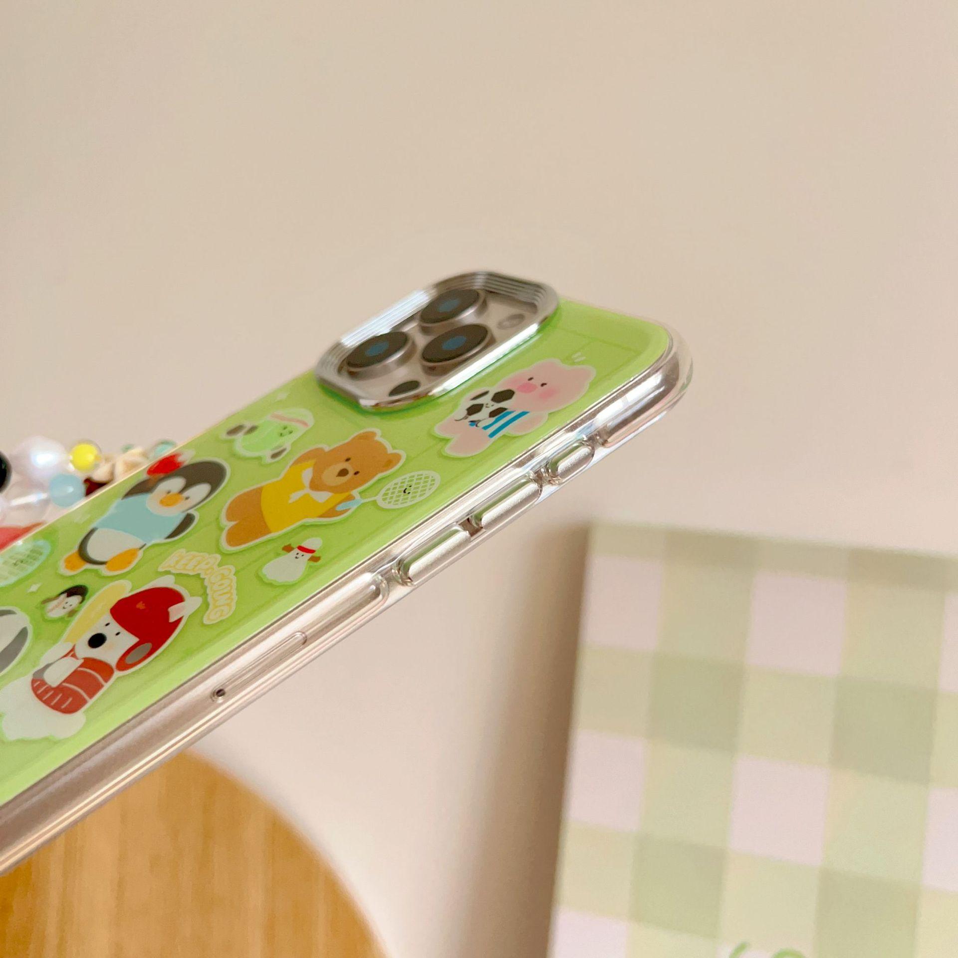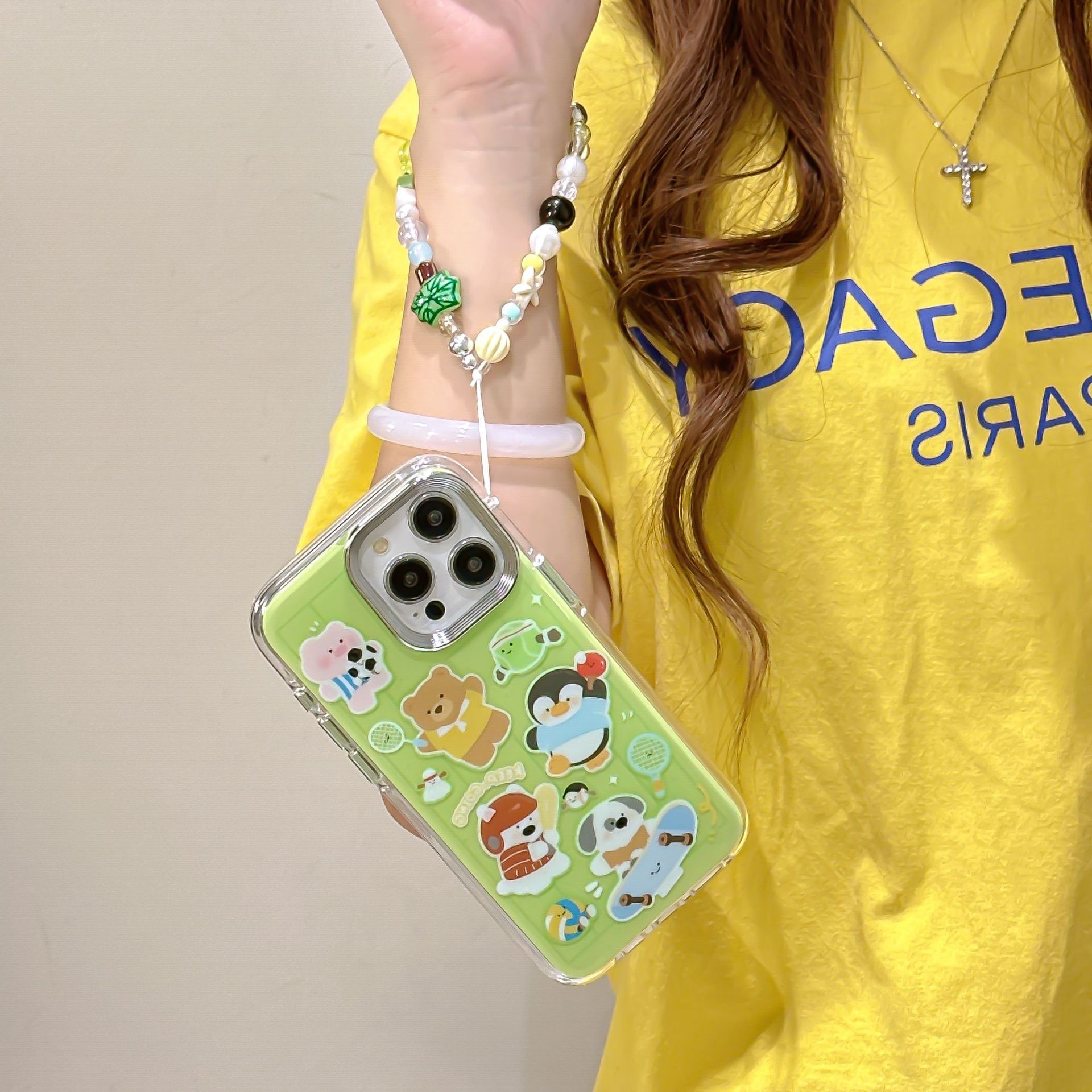 Double-sided imd-green sports penguin, Double-sided imd-green sports penguin + white beads starfish chain