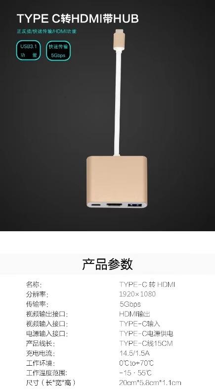 Cable adaptador de vídeo HD TYPEC a HDMI+PD+USB3.0,USB3.1 TYPEC 3 en 1