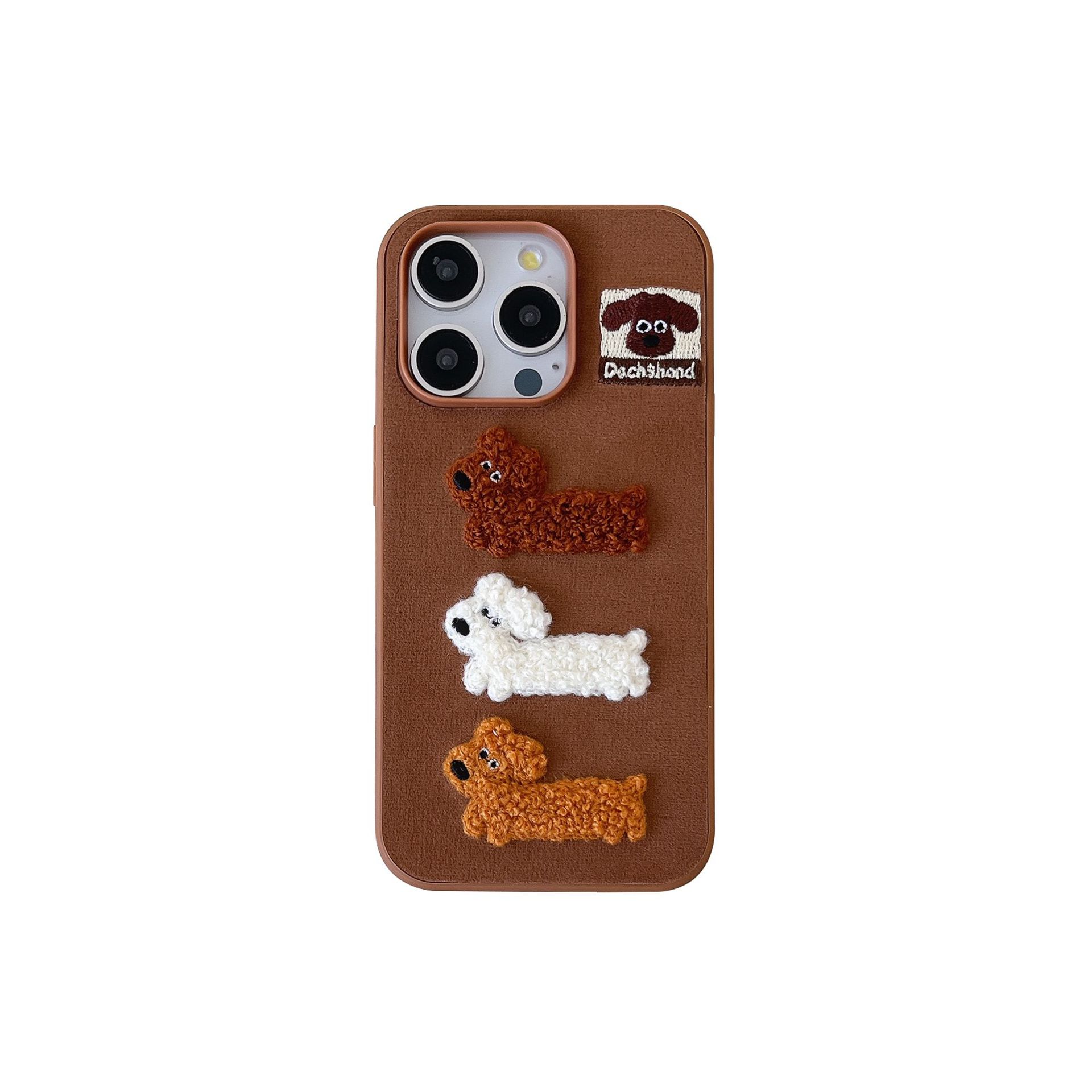 Brown embroidered 3 puppies (single shell), Brown embroidered dachshund (single shell), Brown embroidered 3 pu...