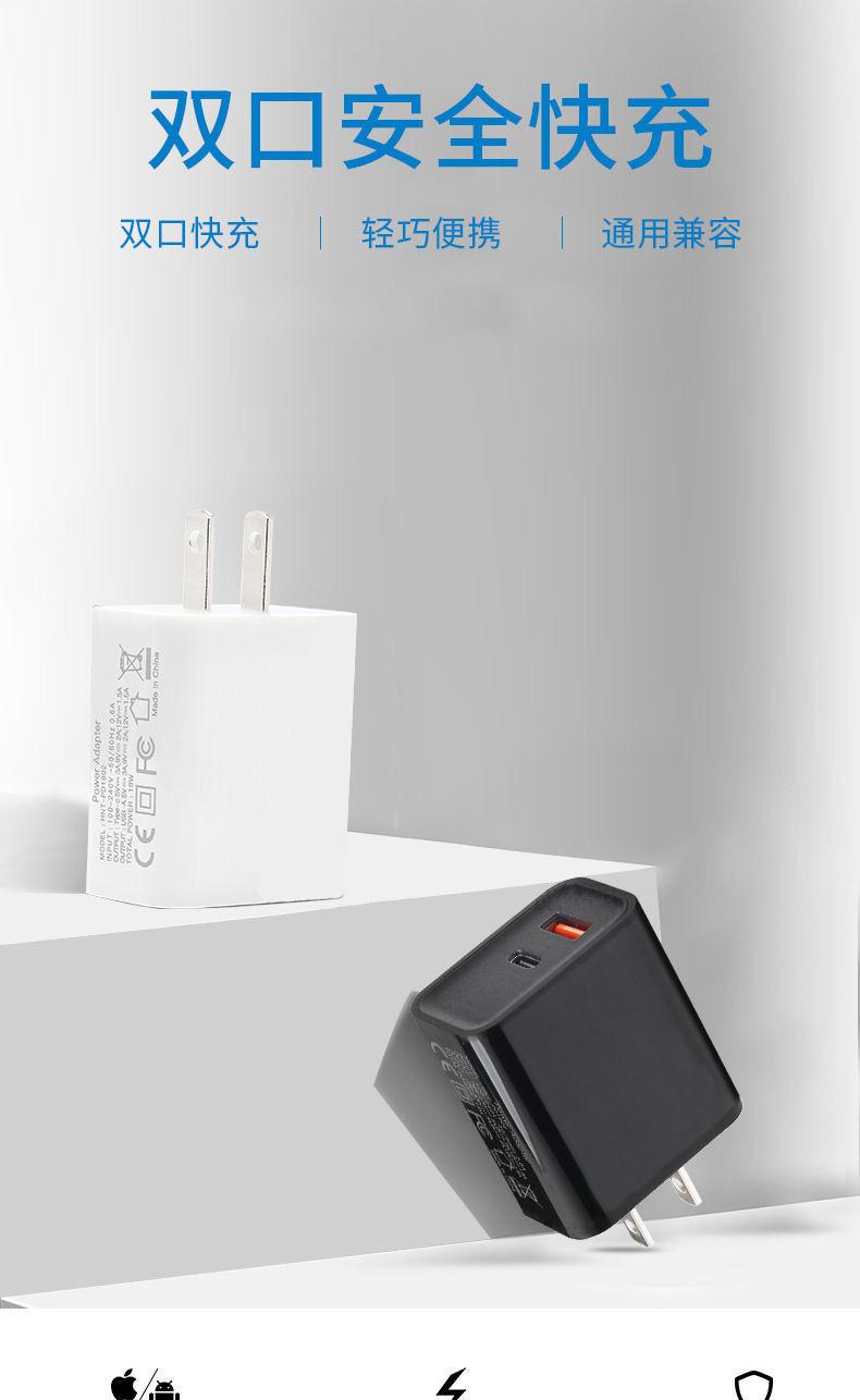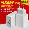 Cargador Rápido de Doble Puerto Pd20W Es Adecuado para Iphone14/15/16/17 Cabezal de Carga Apple 20W+Qc3.0